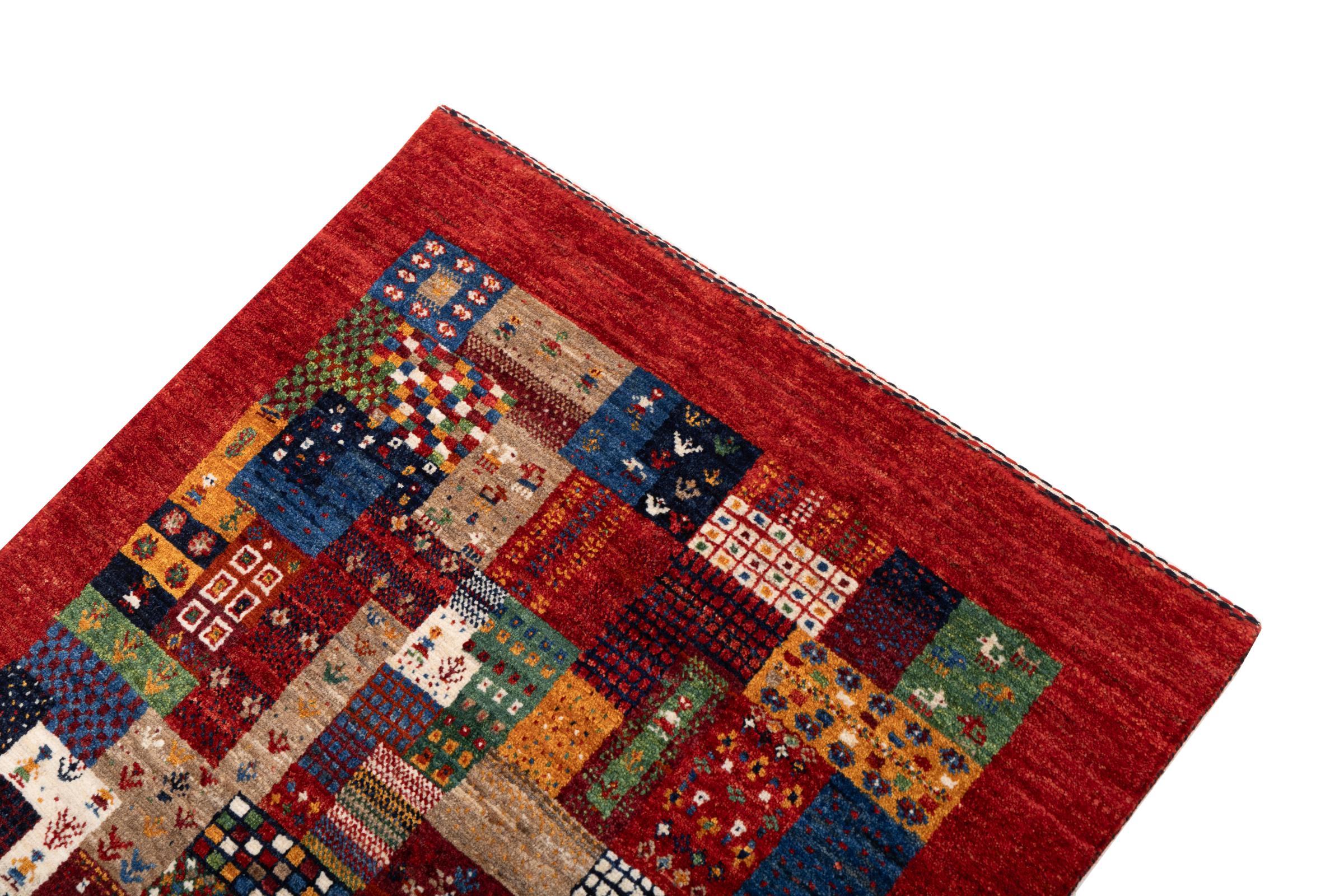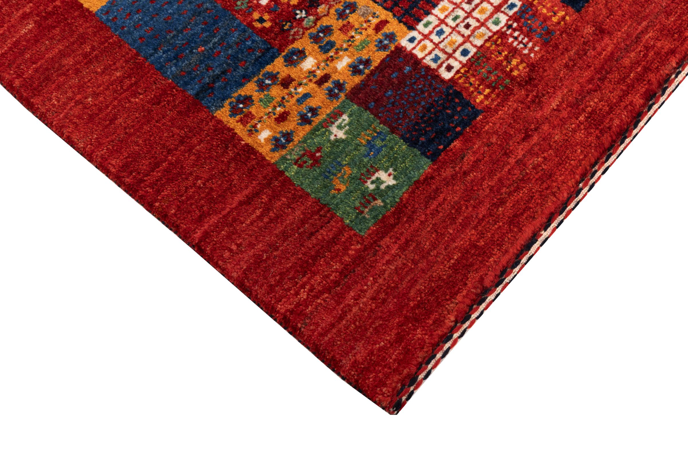 Een verfijning van de al bekende Gabbeh-tapijten: Dit is deze Perzische Gabbeh Loribaft. Het weet indruk te maken met zijn fijnere weefsel en prachtige ontwerp. Het werd door Loren in het zuiden van Perzië met de hand geknoopt van de beste handgesponnen schapenwol. Voor het verven van de wol worden uitsluitend pure plantaardige kleurstoffen gebruikt. Met dit vloerkleed haal je de hoogste standaard van een Gabbeh-tapijt in huis.