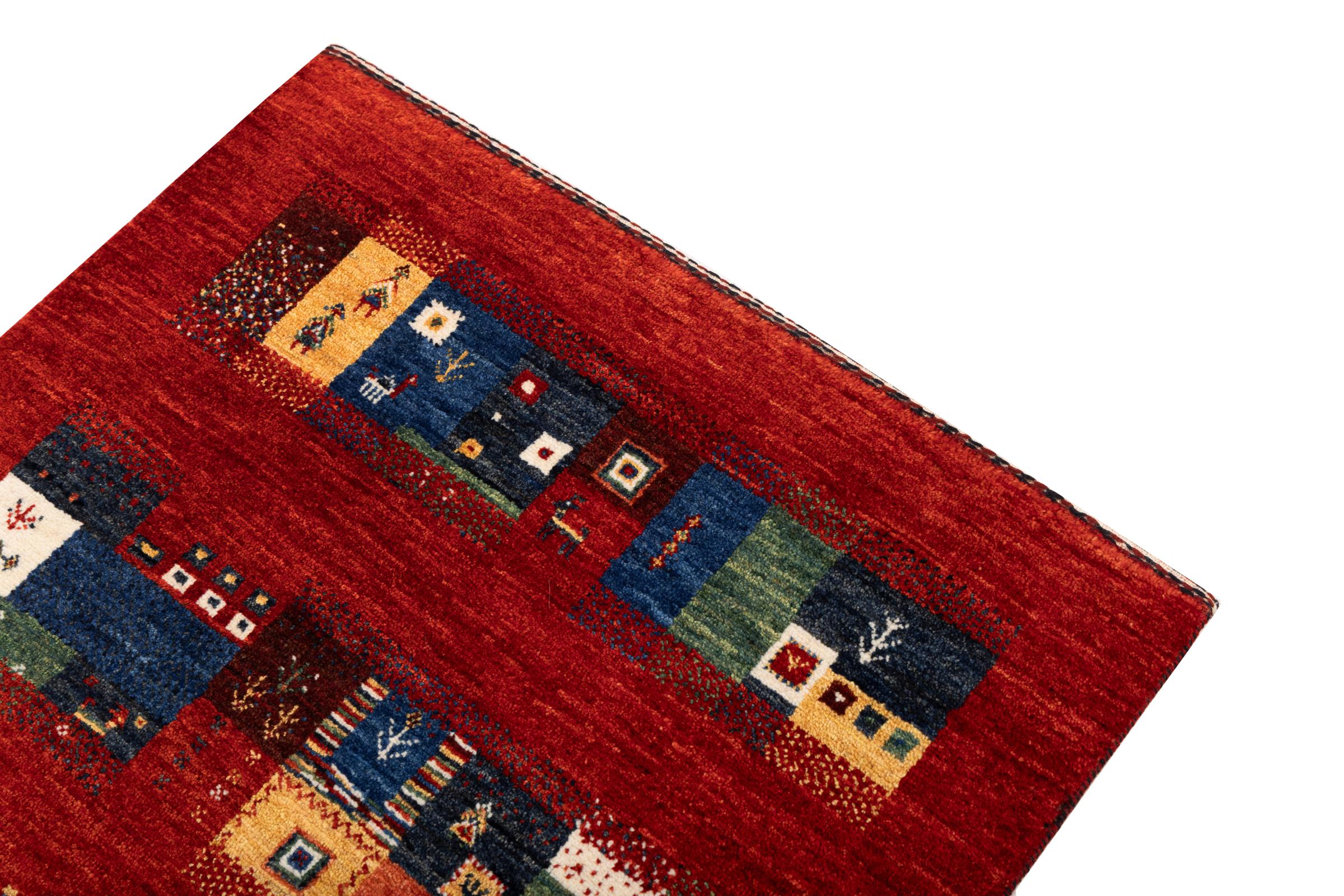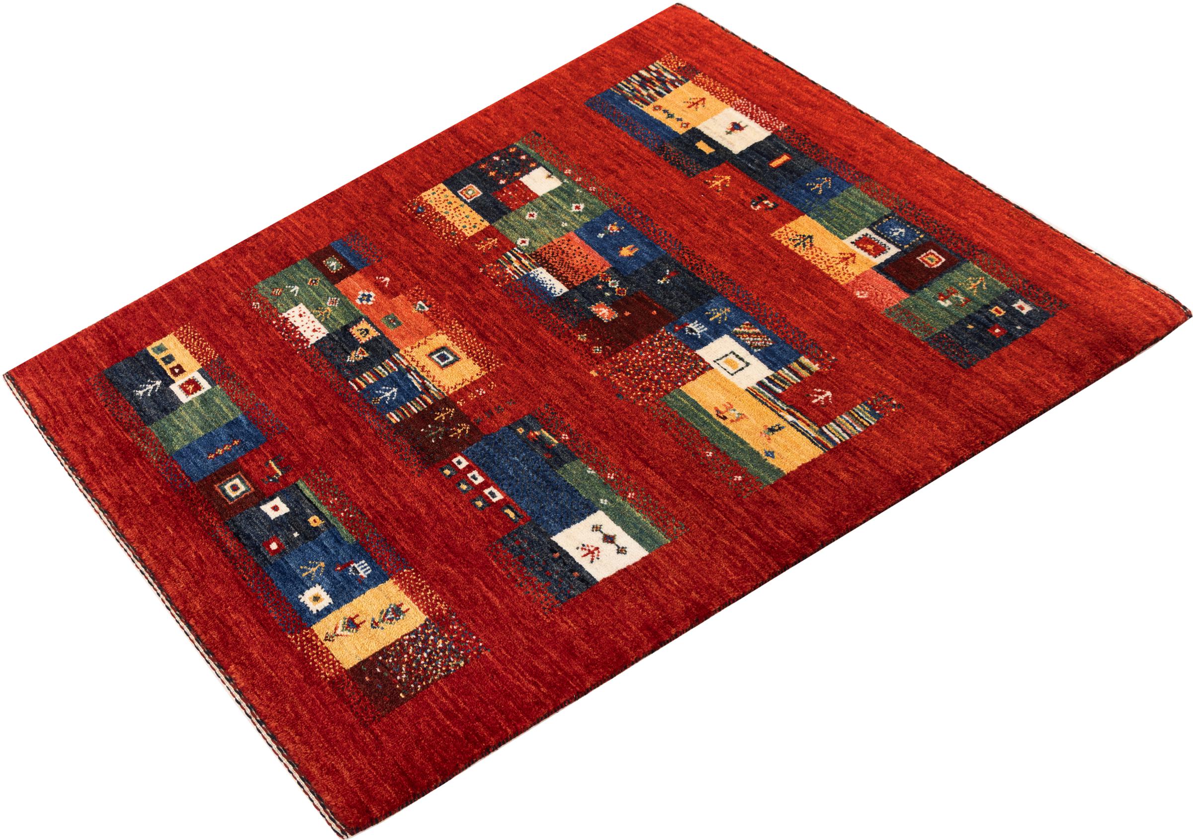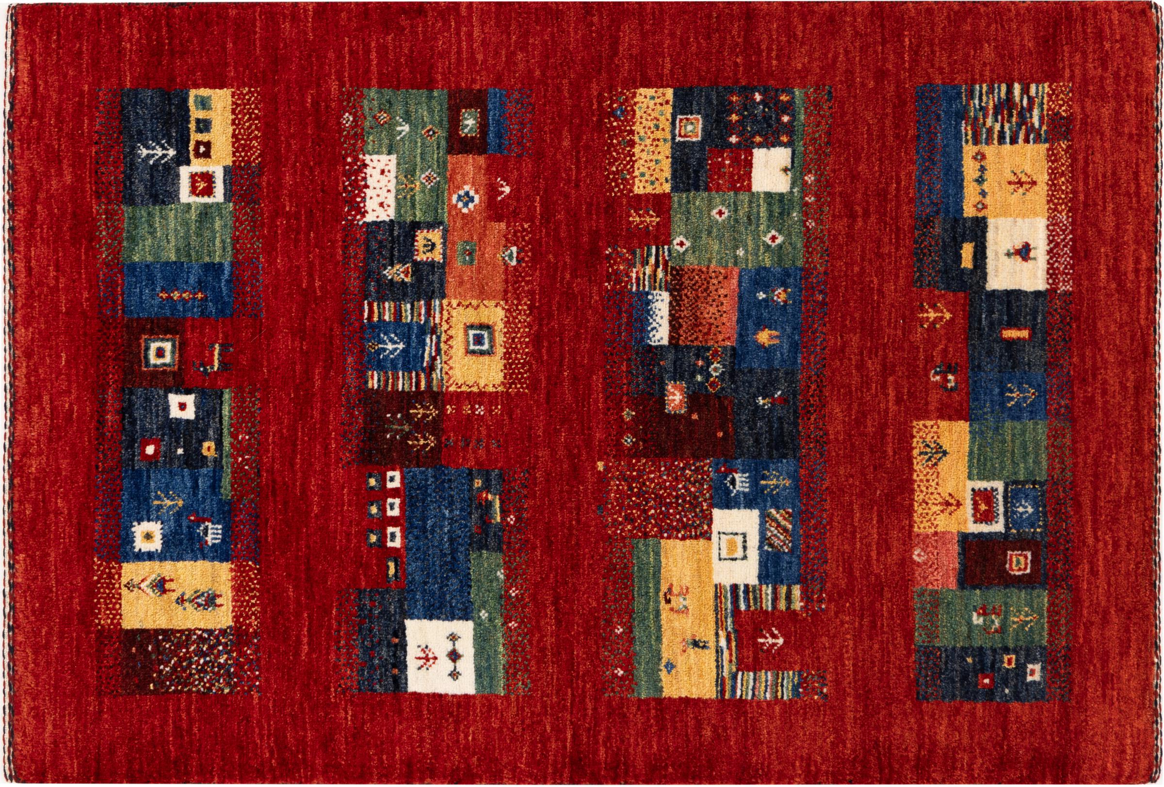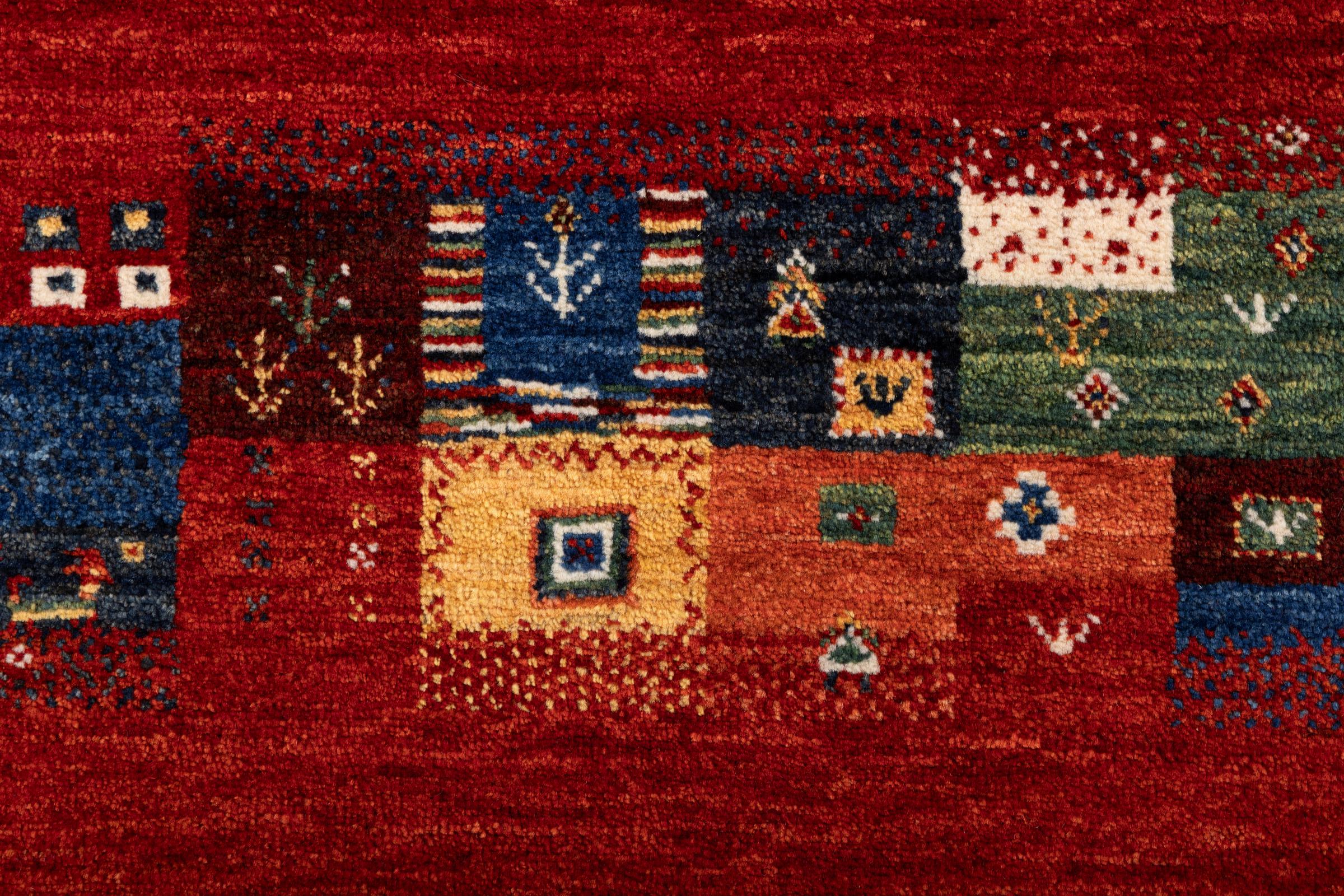 Een verfijning van de al bekende Gabbeh-tapijten: Dit is deze Perzische Gabbeh Loribaft. Het weet indruk te maken met zijn fijnere weefsel en prachtige ontwerp. Het werd door Loren in het zuiden van Perzië met de hand geknoopt van de beste handgesponnen schapenwol. Voor het verven van de wol worden uitsluitend pure plantaardige kleurstoffen gebruikt. Met dit vloerkleed haal je de hoogste standaard van een Gabbeh-tapijt in huis.