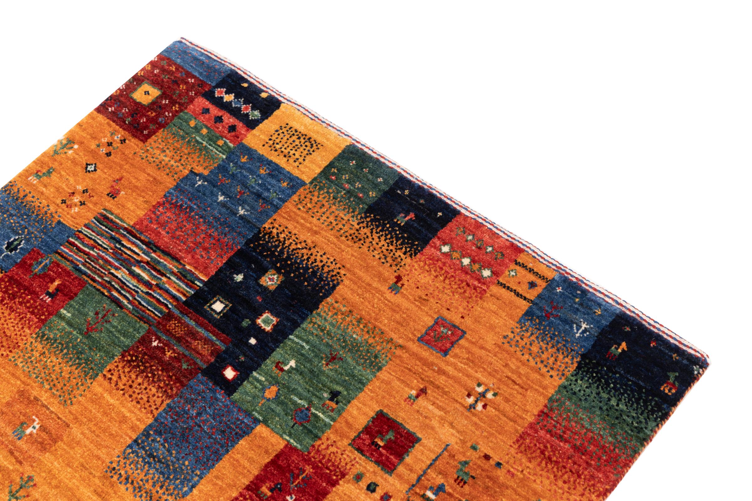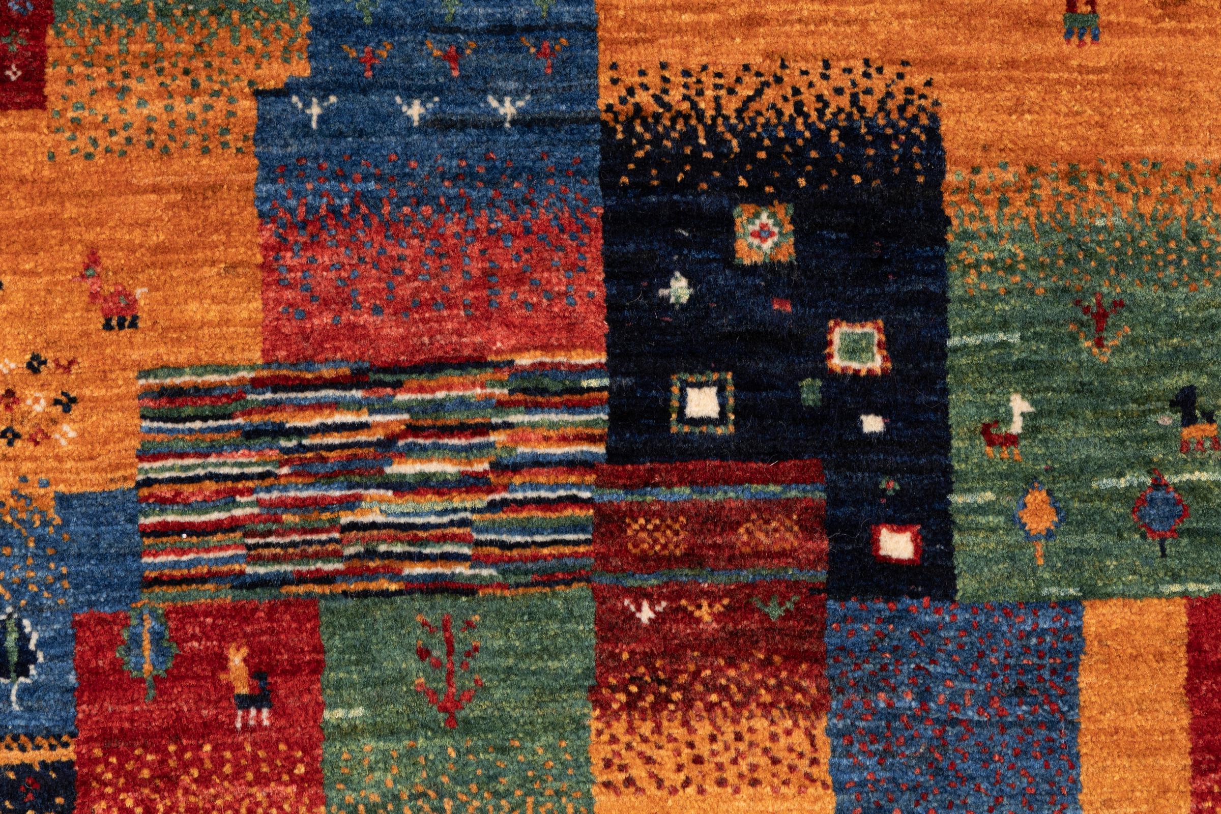 Een verfijning van de al bekende Gabbeh-tapijten: Dit is deze Perzische Gabbeh Loribaft. Het weet indruk te maken met zijn fijnere weefsel en prachtige ontwerp. Het werd door Loren in het zuiden van Perzië met de hand geknoopt van de beste handgesponnen schapenwol. Voor het verven van de wol worden uitsluitend pure plantaardige kleurstoffen gebruikt. Met dit vloerkleed haal je de hoogste standaard van een Gabbeh-tapijt in huis.