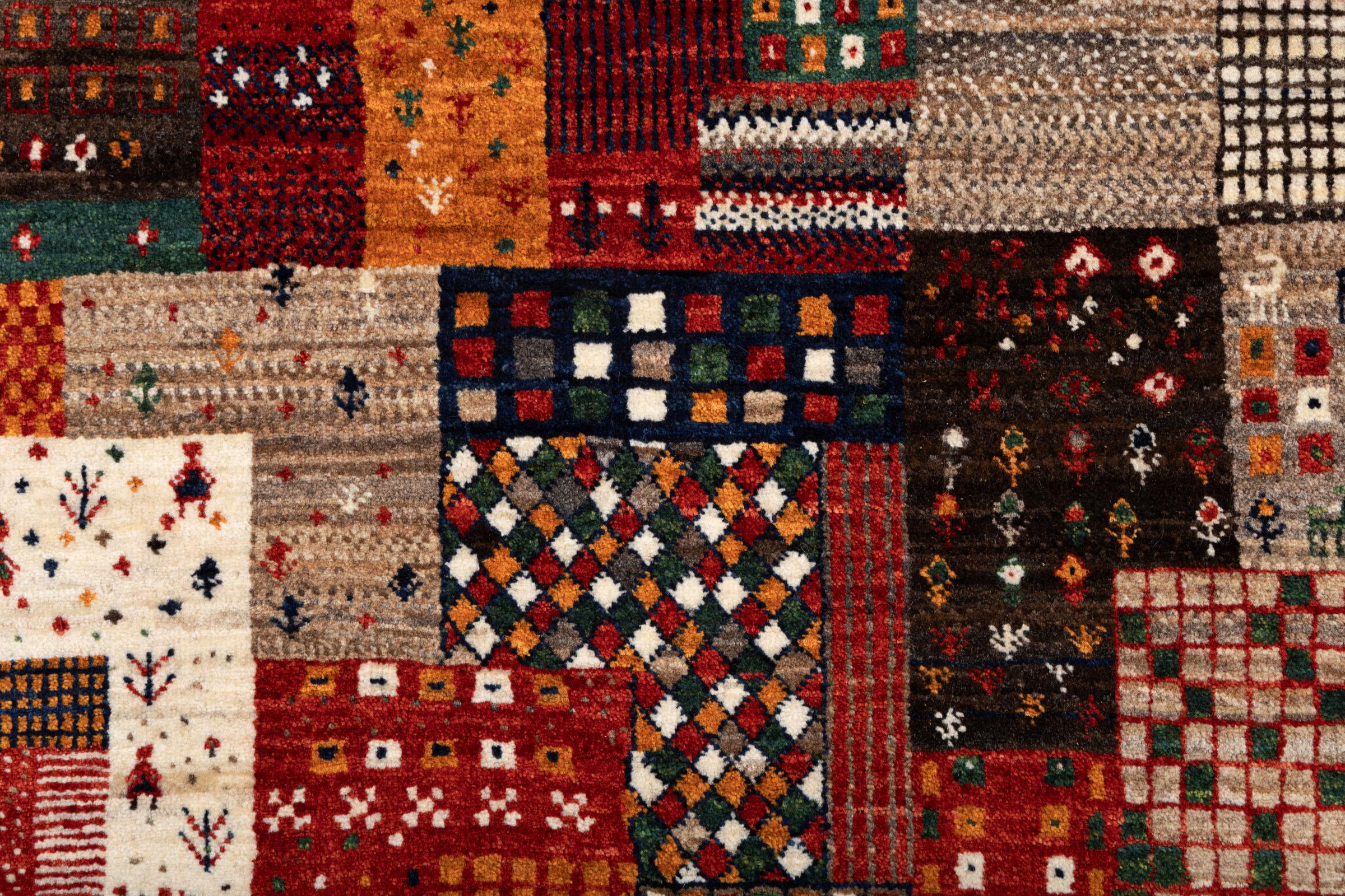 Een verfijning van de al bekende Gabbeh-tapijten: Dit is deze Perzische Gabbeh Loribaft. Het weet indruk te maken met zijn fijnere weefsel en prachtige ontwerp. Het werd door Loren in het zuiden van Perzië met de hand geknoopt van de beste handgesponnen schapenwol. Voor het verven van de wol worden uitsluitend pure plantaardige kleurstoffen gebruikt. Met dit vloerkleed haal je de hoogste standaard van een Gabbeh-tapijt in huis.