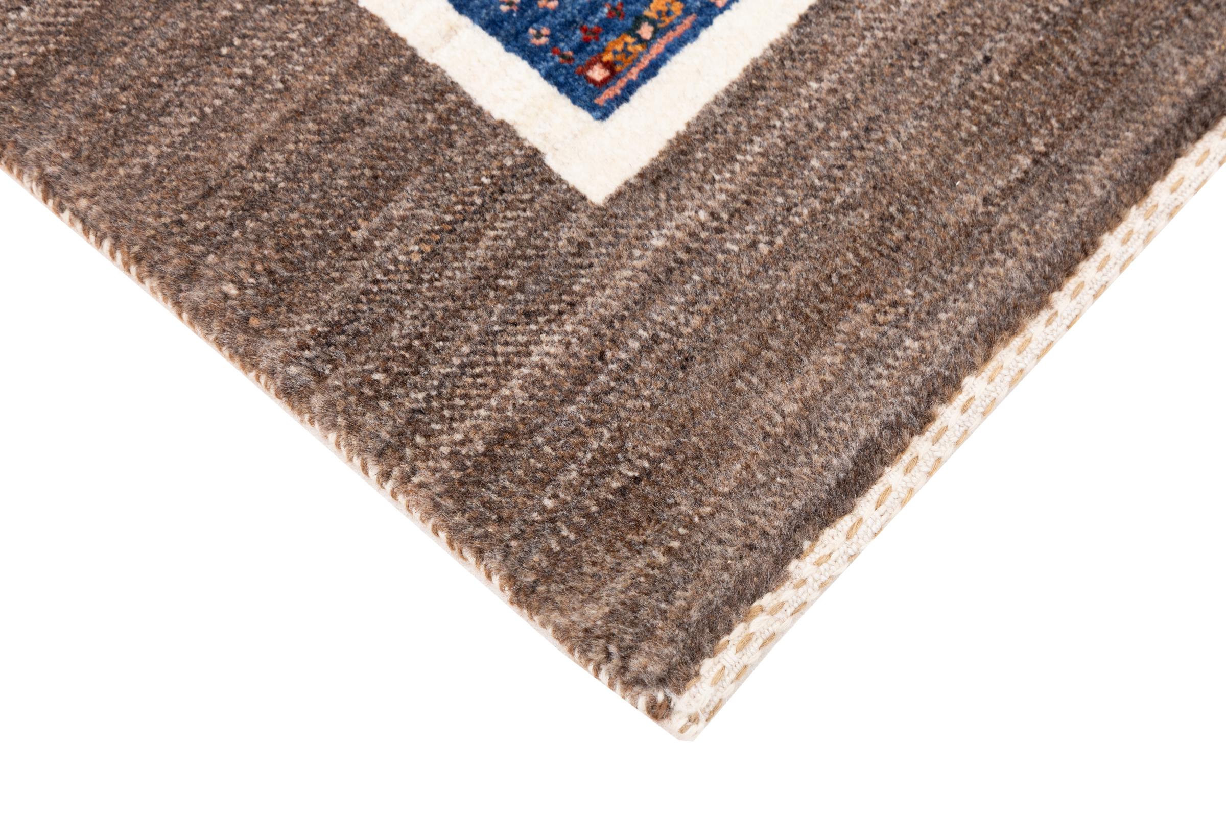Dit prachtige tapijt is een Perzisch Gabbeh-tapijt en behoort daarom tot de hoogste kwaliteit Gabbeh-tapijten. De tapijten worden geknoopt door nomaden of semi-nomaden in Iran volgens traditioneel vakmanschap. De eenvoudige motieven en patronen zijn vooral geïnspireerd op de directe omgeving van de nomaden. Zo zijn er bijvoorbeeld kamelen, bomen of struiken te vinden op de traditionele tapijten. De Perzische Gabbeh-tapijten zijn gemaakt van wol van lokaal opgefokte kuddes schapen. De wol wordt dus meestal nog met de hand gesponnen. Elk van deze oosterse tapijten belichaamt dus een uniek karakter van de eeuwenoude cultuur.