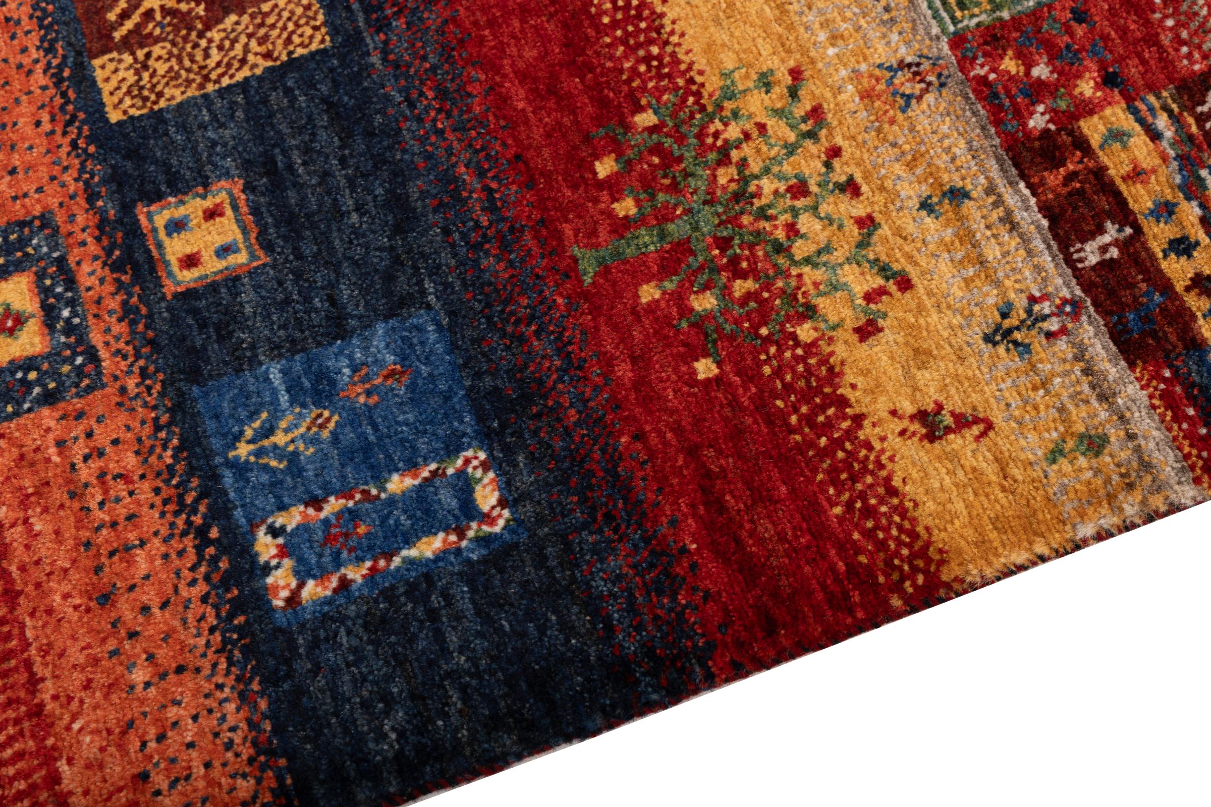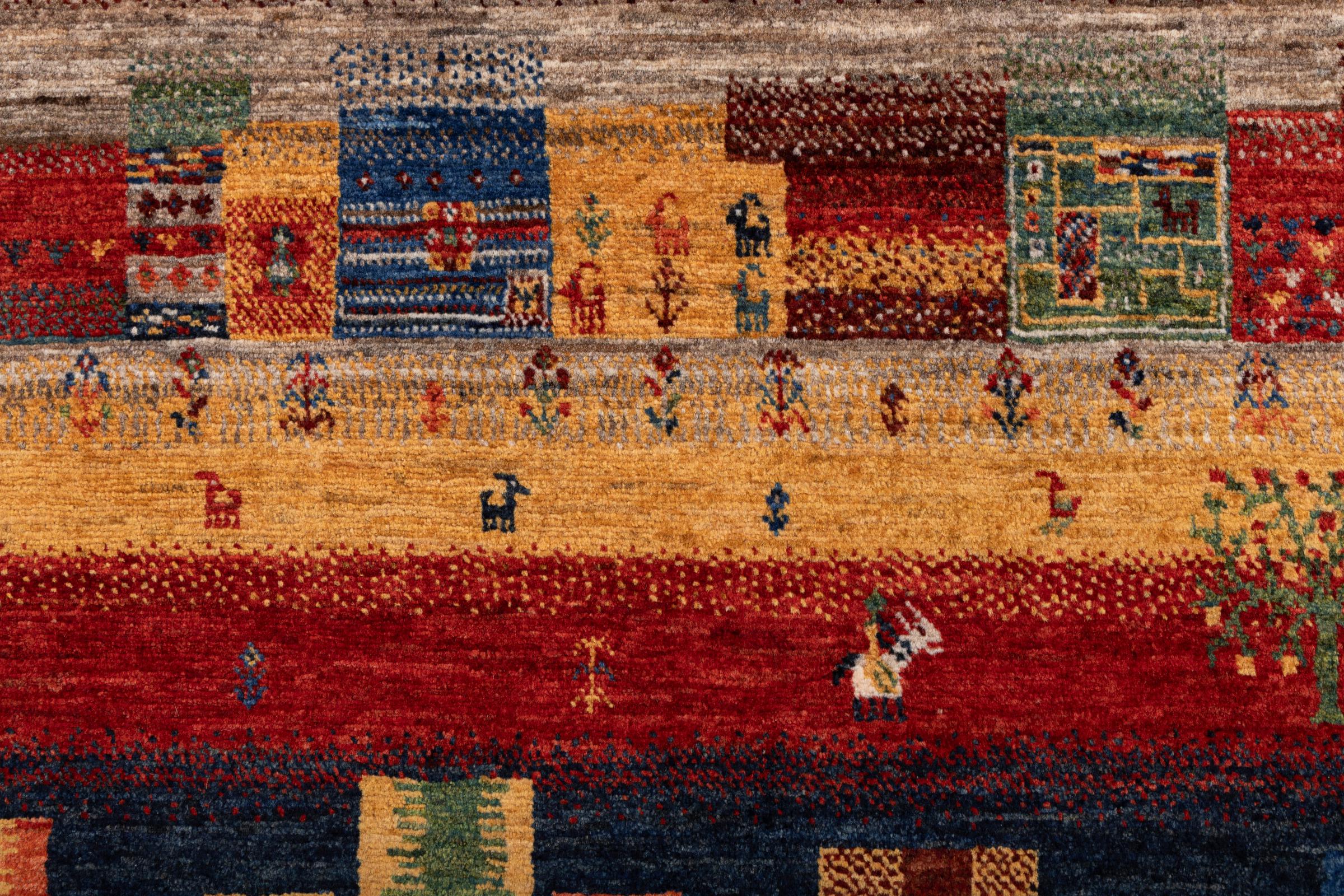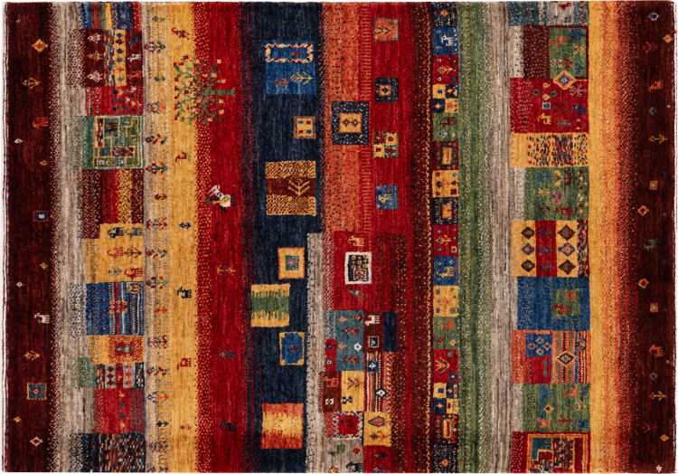 Dit prachtige tapijt is een Perzisch Gabbeh-tapijt en behoort daarom tot de hoogste kwaliteit Gabbeh-tapijten. De tapijten worden geknoopt door nomaden of semi-nomaden in Iran volgens traditioneel vakmanschap. De eenvoudige motieven en patronen zijn vooral geïnspireerd op de directe omgeving van de nomaden. Zo zijn er bijvoorbeeld kamelen, bomen of struiken te vinden op de traditionele tapijten. De Perzische Gabbeh-tapijten zijn gemaakt van wol van lokaal opgefokte kuddes schapen. De wol wordt dus meestal nog met de hand gesponnen. Elk van deze oosterse tapijten belichaamt dus een uniek karakter van de eeuwenoude cultuur.