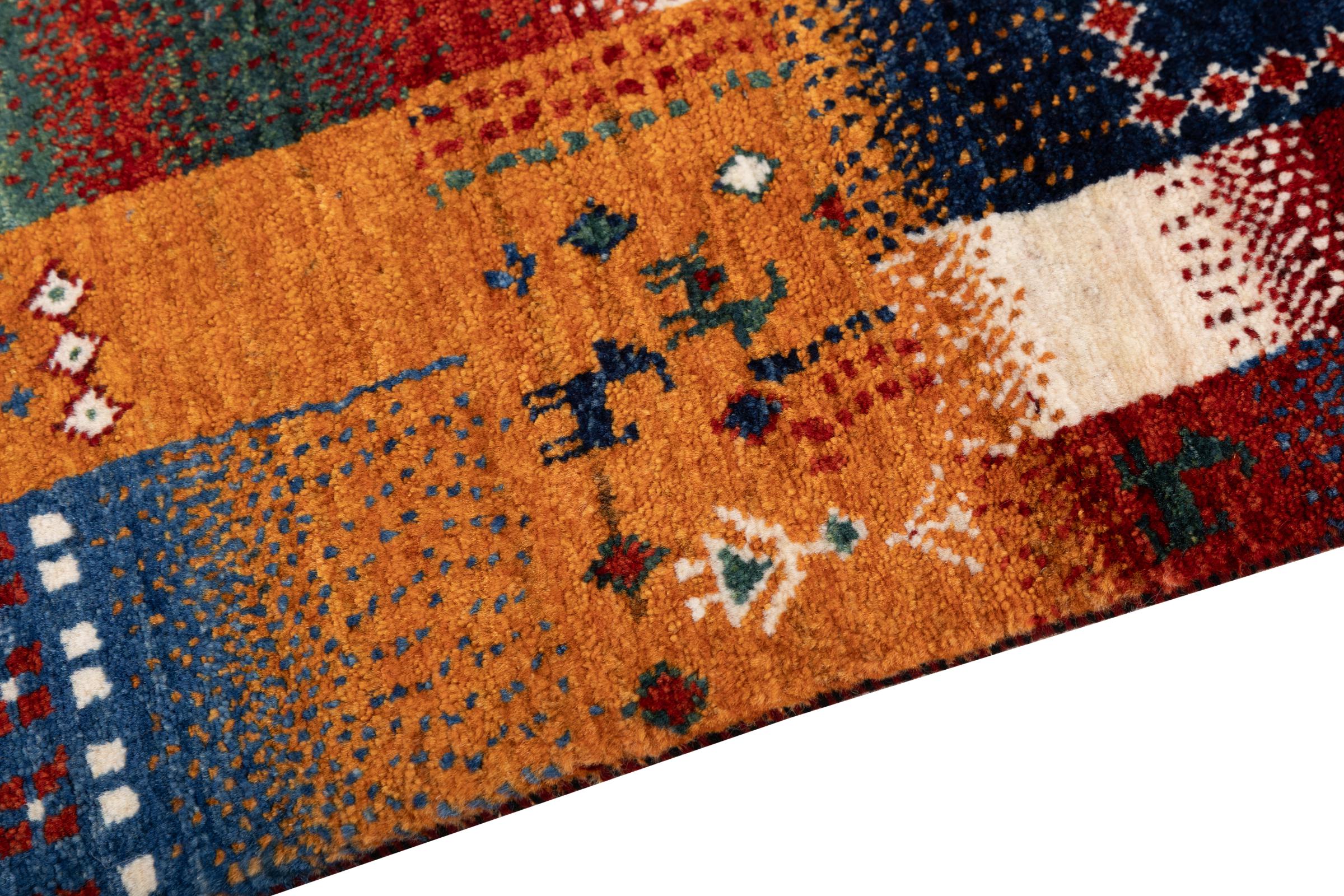 Dit prachtige tapijt is een Perzisch Gabbeh-tapijt en behoort daarom tot de hoogste kwaliteit Gabbeh-tapijten. De tapijten worden geknoopt door nomaden of semi-nomaden in Iran volgens traditioneel vakmanschap. De eenvoudige motieven en patronen zijn vooral geïnspireerd op de directe omgeving van de nomaden. Zo zijn er bijvoorbeeld kamelen, bomen of struiken te vinden op de traditionele tapijten. De Perzische Gabbeh-tapijten zijn gemaakt van wol van lokaal opgefokte kuddes schapen. De wol wordt dus meestal nog met de hand gesponnen. Elk van deze oosterse tapijten belichaamt dus een uniek karakter van de eeuwenoude cultuur.