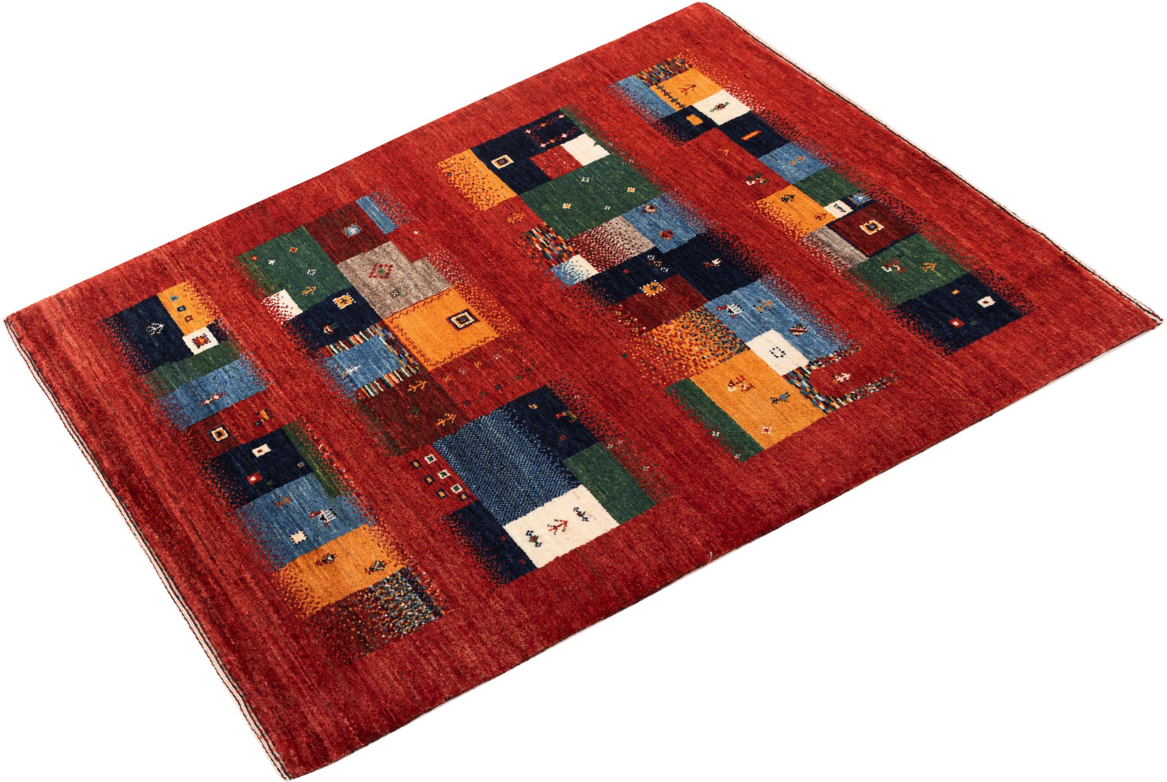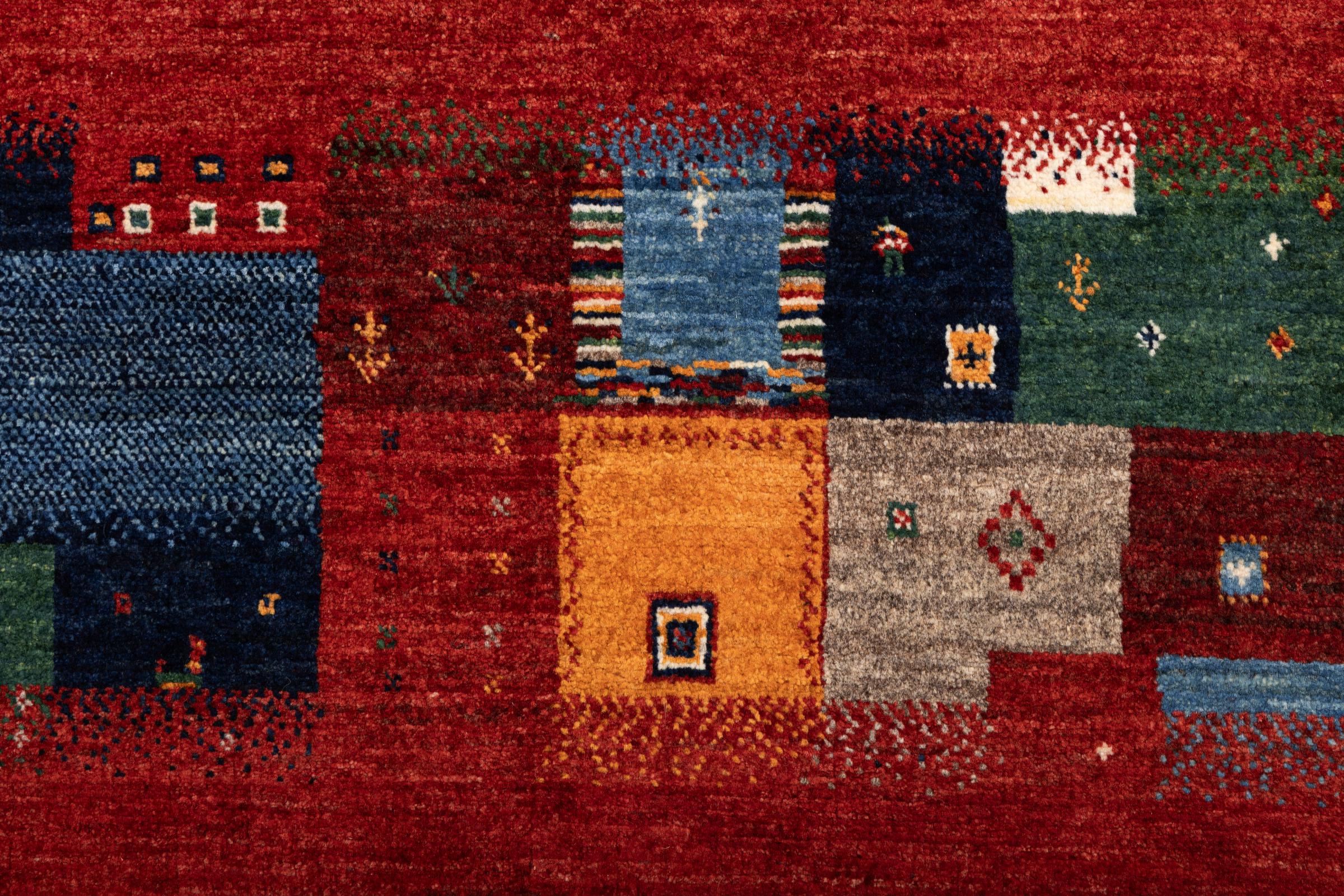 Een verfijning van de al bekende Gabbeh-tapijten: Dit is deze Perzische Gabbeh Loribaft. Het weet indruk te maken met zijn fijnere weefsel en prachtige ontwerp. Het werd door Loren in het zuiden van Perzië met de hand geknoopt van de beste handgesponnen schapenwol. Voor het verven van de wol worden uitsluitend pure plantaardige kleurstoffen gebruikt. Met dit vloerkleed haal je de hoogste standaard van een Gabbeh-tapijt in huis.