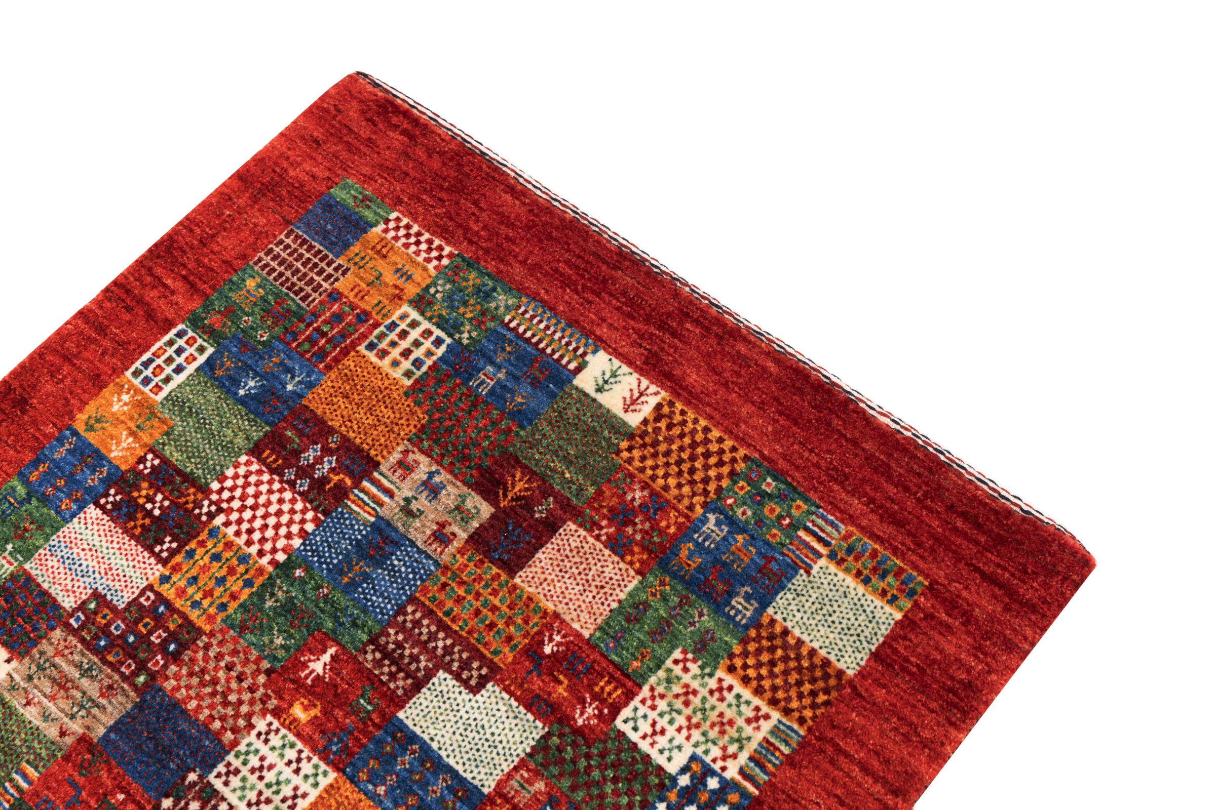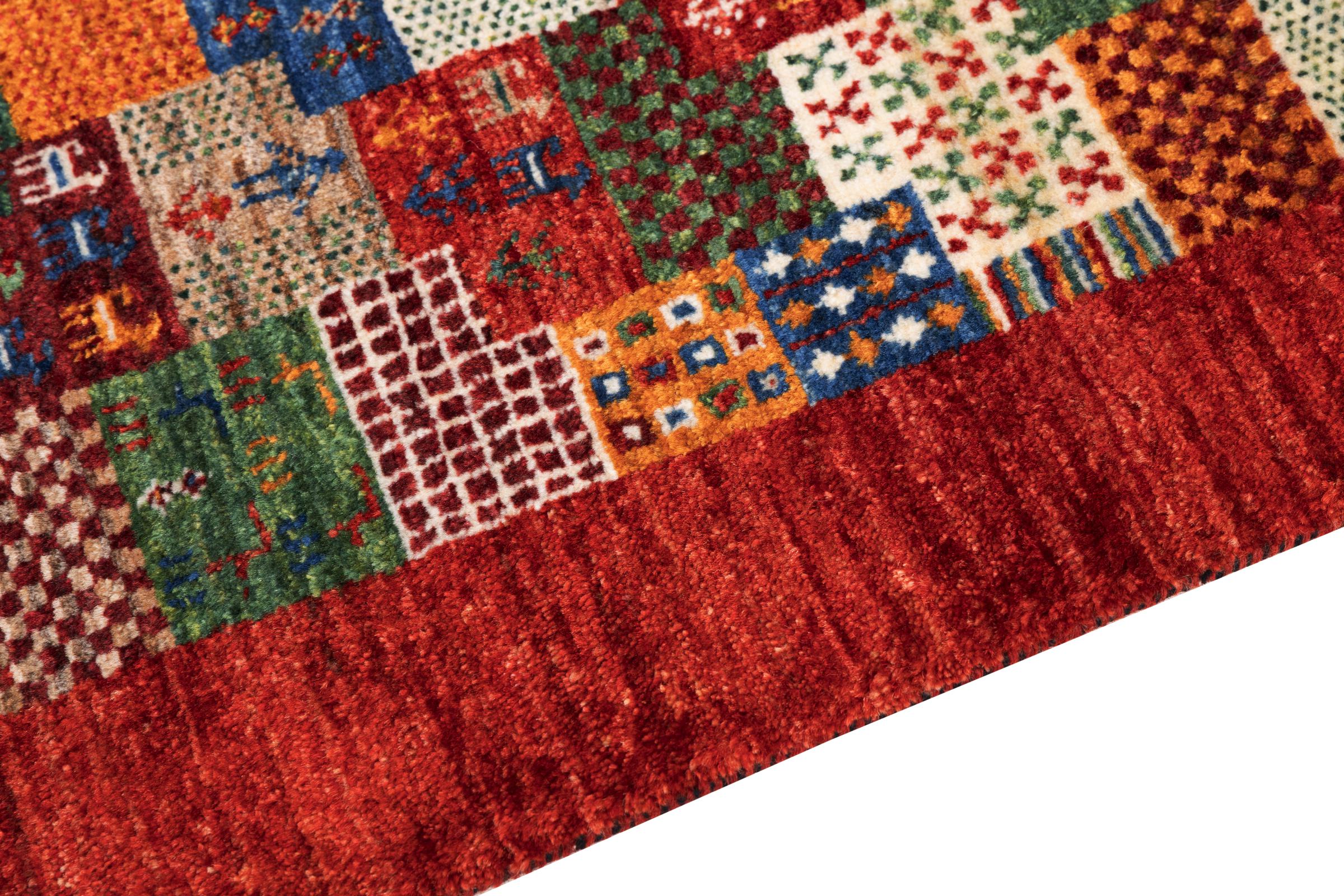 Een verfijning van de al bekende Gabbeh-tapijten: Dit is deze Perzische Gabbeh Loribaft. Het weet indruk te maken met zijn fijnere weefsel en prachtige ontwerp. Het werd door Loren in het zuiden van Perzië met de hand geknoopt van de beste handgesponnen schapenwol. Voor het verven van de wol worden uitsluitend pure plantaardige kleurstoffen gebruikt. Met dit vloerkleed haal je de hoogste standaard van een Gabbeh-tapijt in huis.