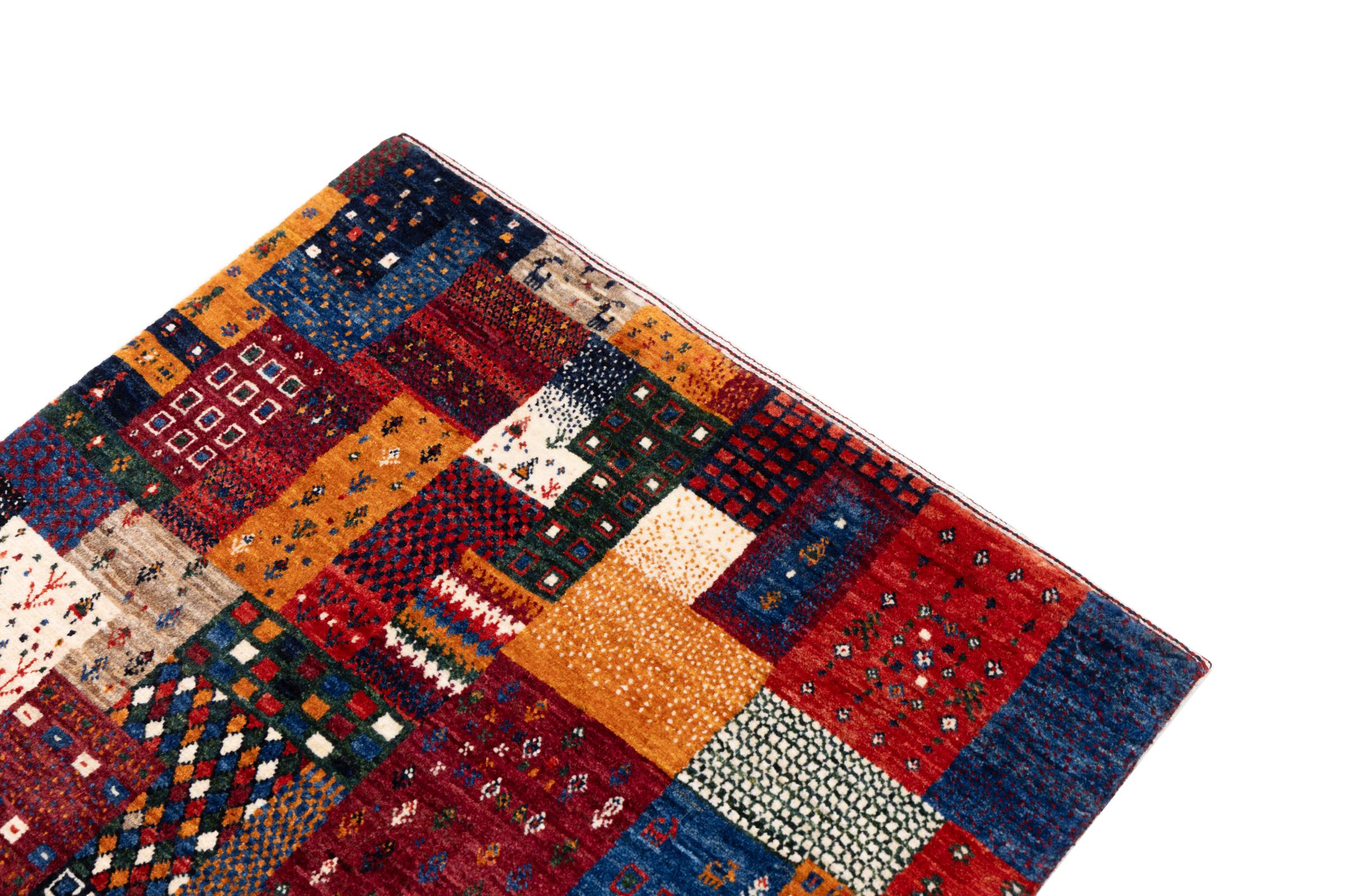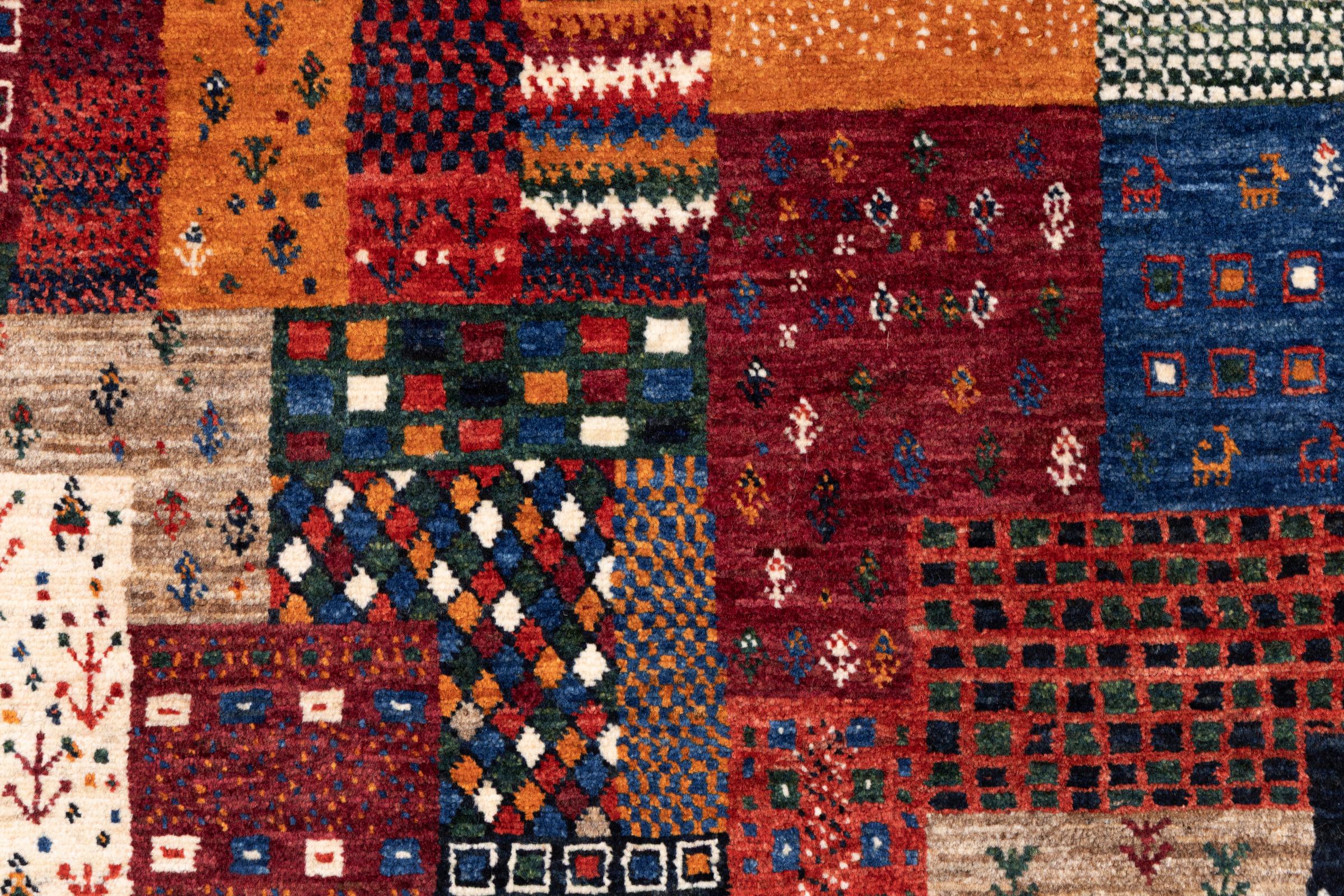 Dit prachtige tapijt is een Perzisch Gabbeh-tapijt en behoort daarom tot de hoogste kwaliteit Gabbeh-tapijten. De tapijten worden geknoopt door nomaden of semi-nomaden in Iran volgens traditioneel vakmanschap. De eenvoudige motieven en patronen zijn vooral geïnspireerd op de directe omgeving van de nomaden. Zo zijn er bijvoorbeeld kamelen, bomen of struiken te vinden op de traditionele tapijten. De Perzische Gabbeh-tapijten zijn gemaakt van wol van lokaal opgefokte kuddes schapen. De wol wordt dus meestal nog met de hand gesponnen. Elk van deze oosterse tapijten belichaamt dus een uniek karakter van de eeuwenoude cultuur.