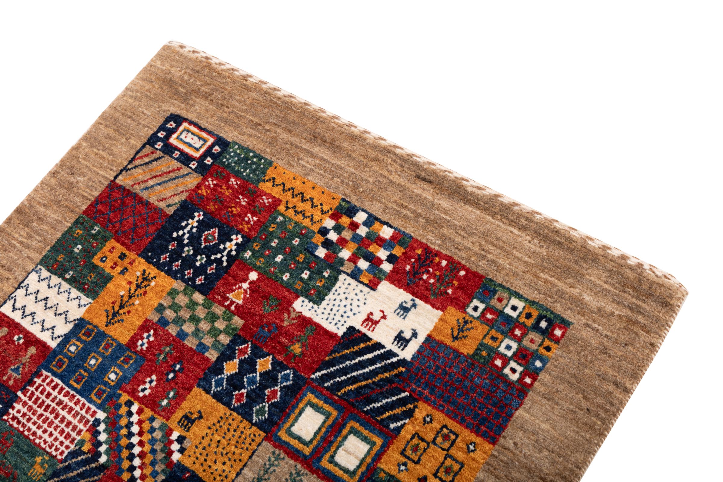 Dit prachtige tapijt is een Perzisch Gabbeh-tapijt en behoort daarom tot de hoogste kwaliteit Gabbeh-tapijten. De tapijten worden geknoopt door nomaden of semi-nomaden in Iran volgens traditioneel vakmanschap. De eenvoudige motieven en patronen zijn vooral geïnspireerd op de directe omgeving van de nomaden. Zo zijn er bijvoorbeeld kamelen, bomen of struiken te vinden op de traditionele tapijten. De Perzische Gabbeh-tapijten zijn gemaakt van wol van lokaal opgefokte kuddes schapen. De wol wordt dus meestal nog met de hand gesponnen. Elk van deze oosterse tapijten belichaamt dus een uniek karakter van de eeuwenoude cultuur.