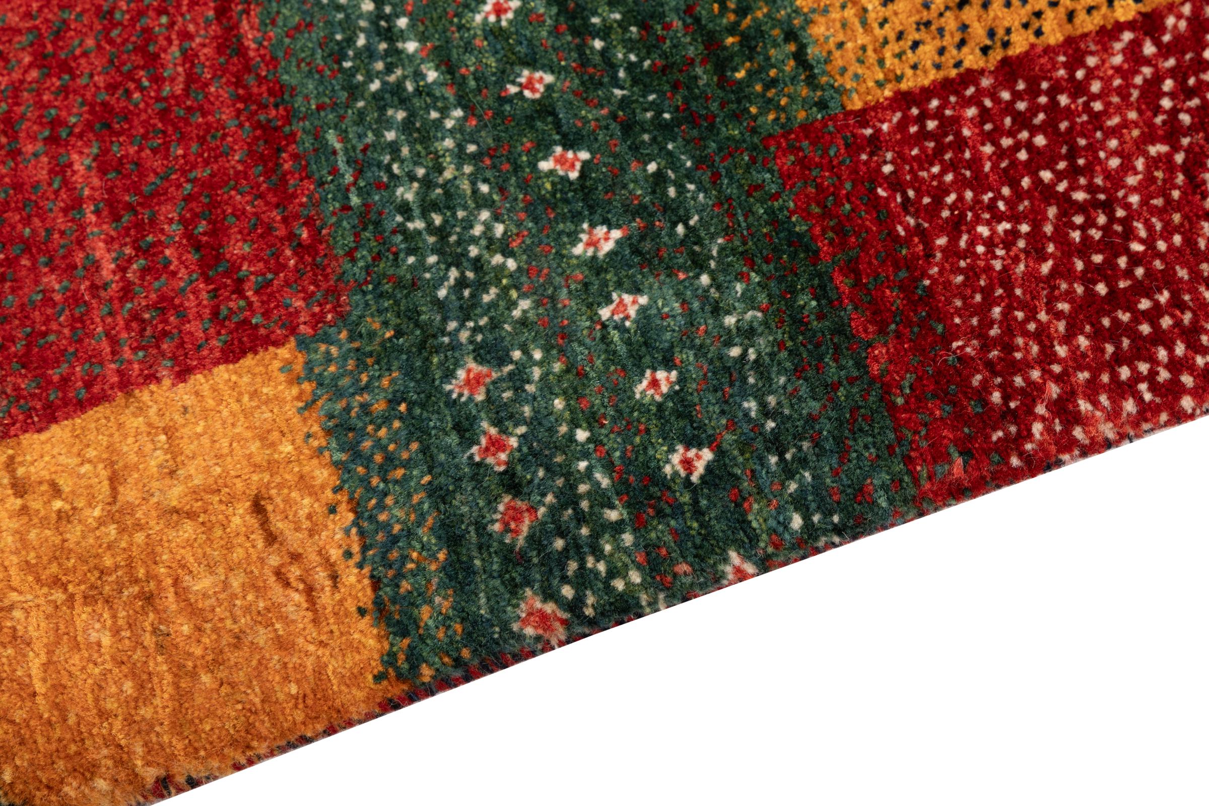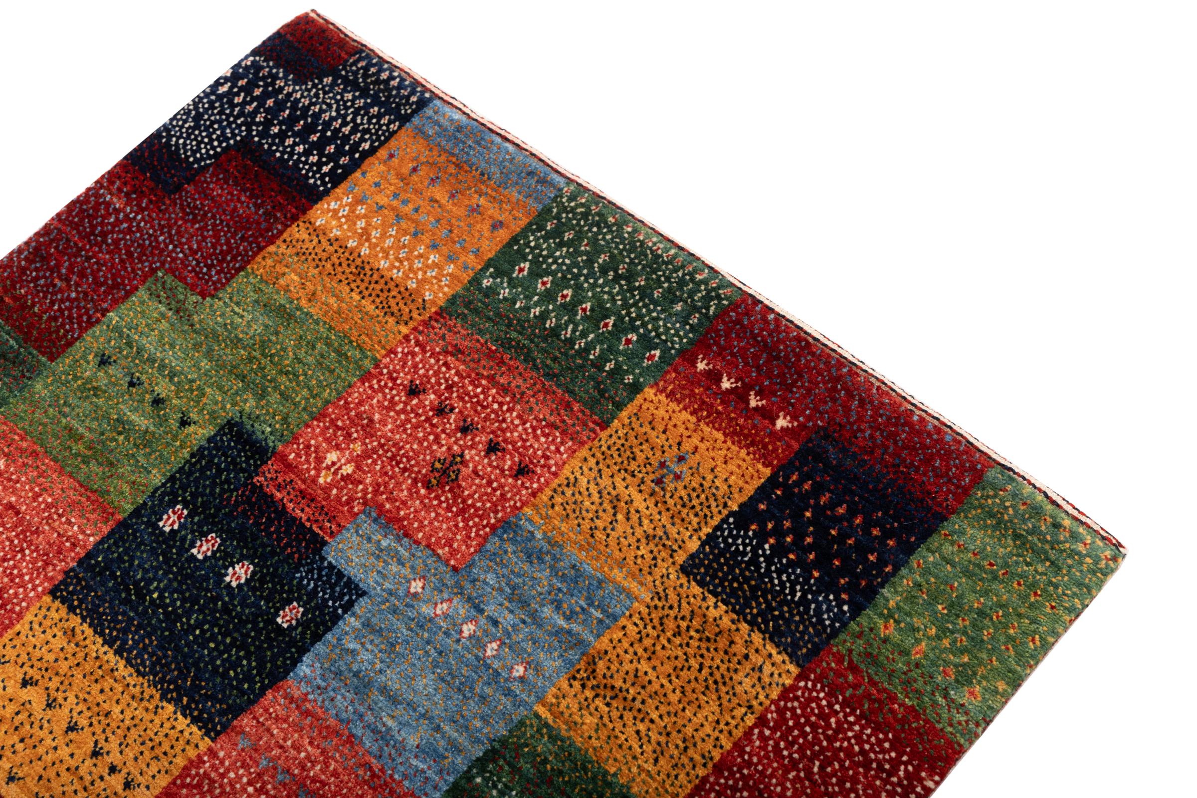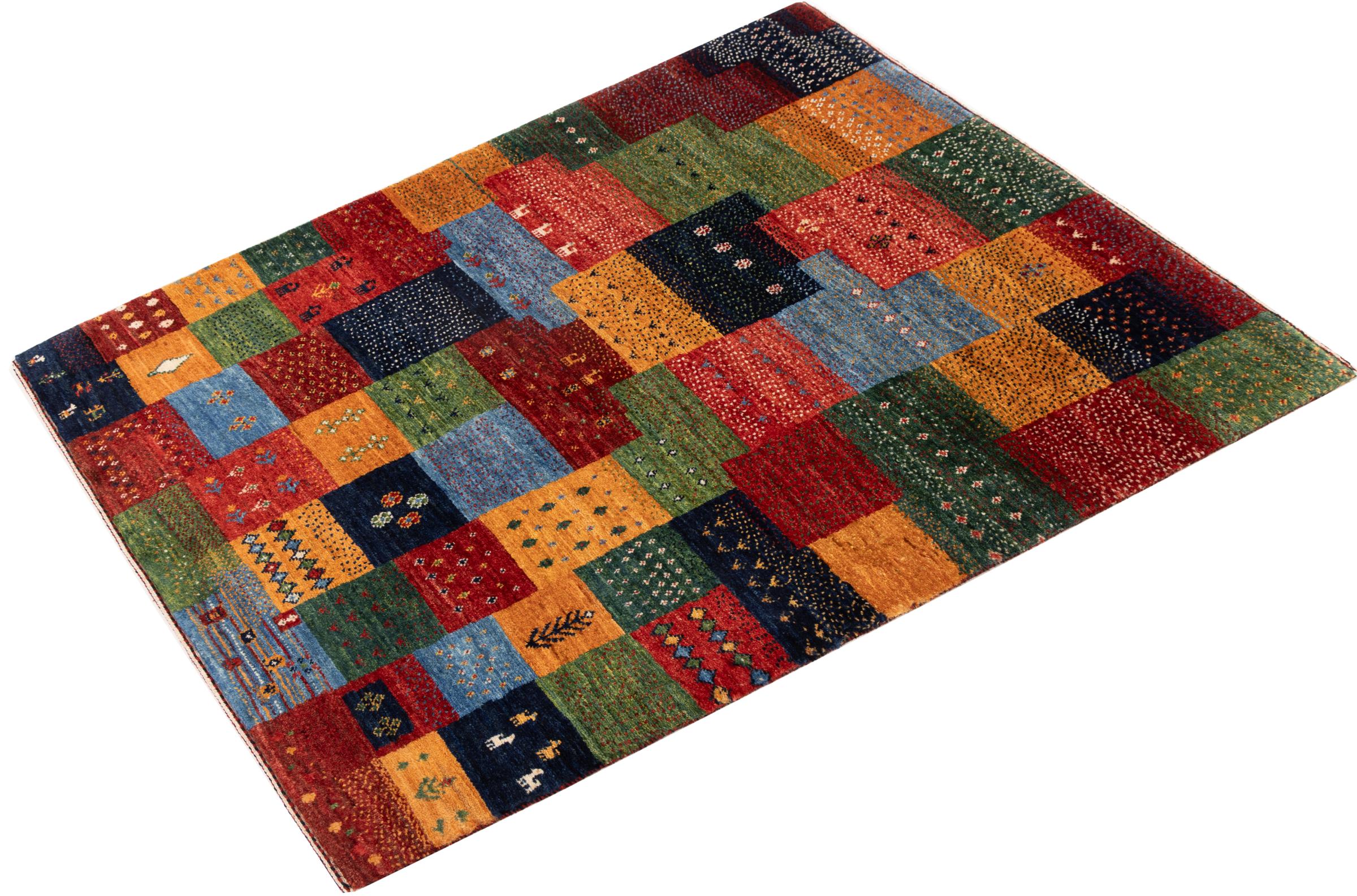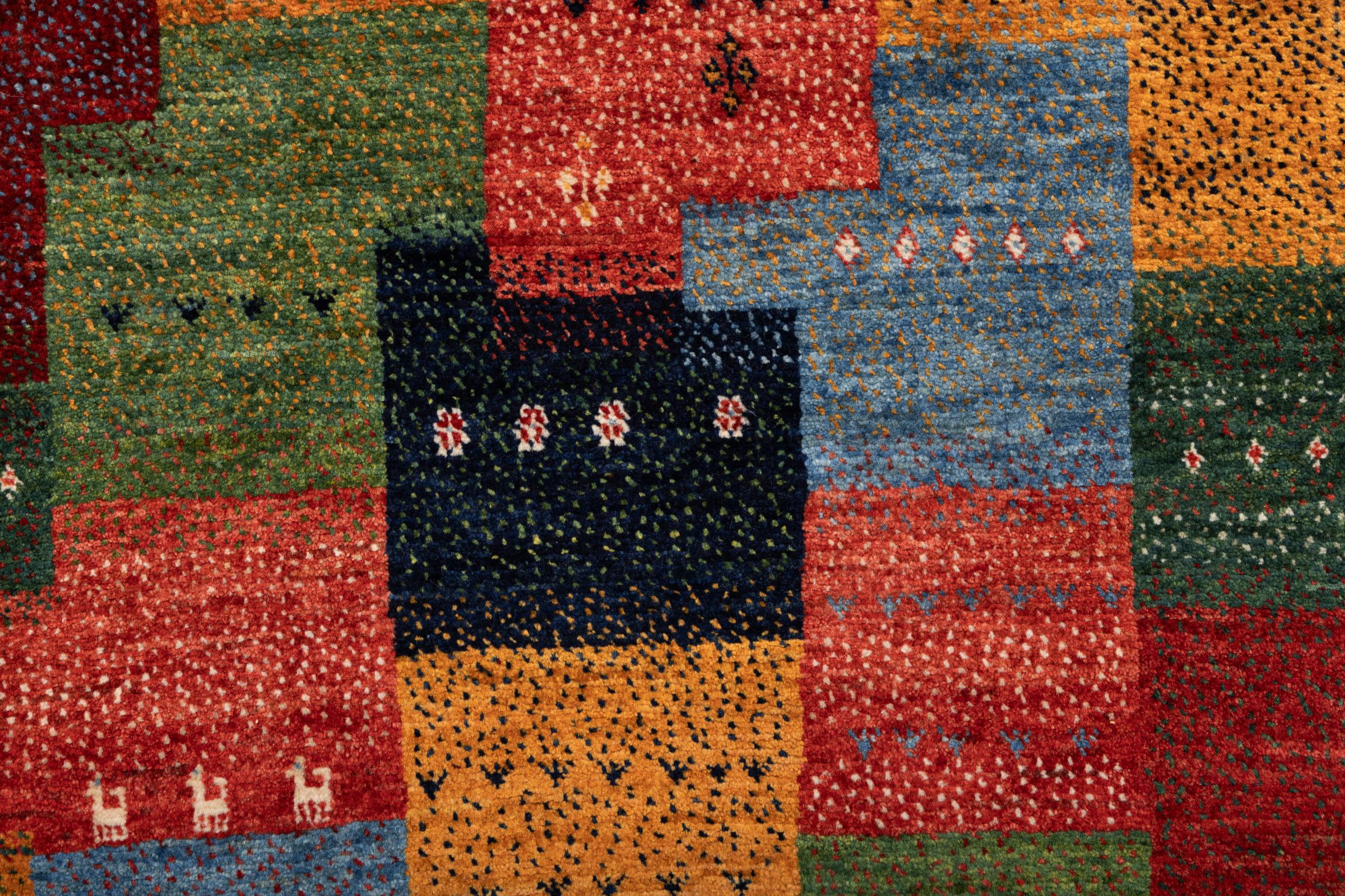 Dit prachtige tapijt is een Perzisch Gabbeh-tapijt en behoort daarom tot de hoogste kwaliteit Gabbeh-tapijten. De tapijten worden geknoopt door nomaden of semi-nomaden in Iran volgens traditioneel vakmanschap. De eenvoudige motieven en patronen zijn vooral geïnspireerd op de directe omgeving van de nomaden. Zo zijn er bijvoorbeeld kamelen, bomen of struiken te vinden op de traditionele tapijten. De Perzische Gabbeh-tapijten zijn gemaakt van wol van lokaal opgefokte kuddes schapen. De wol wordt dus meestal nog met de hand gesponnen. Elk van deze oosterse tapijten belichaamt dus een uniek karakter van de eeuwenoude cultuur.