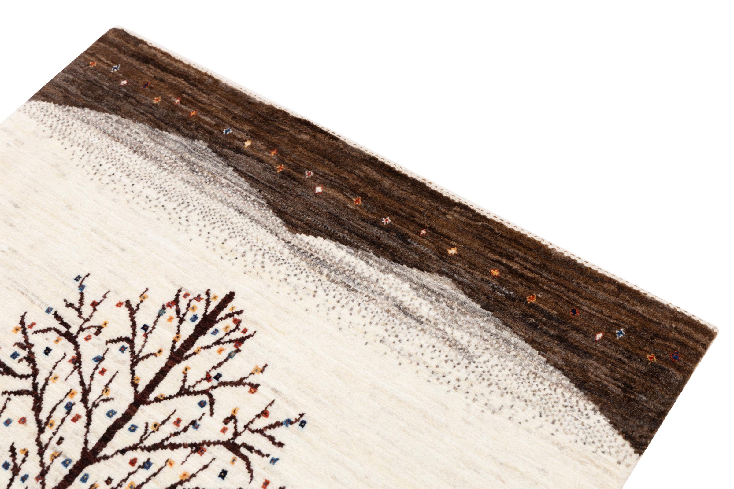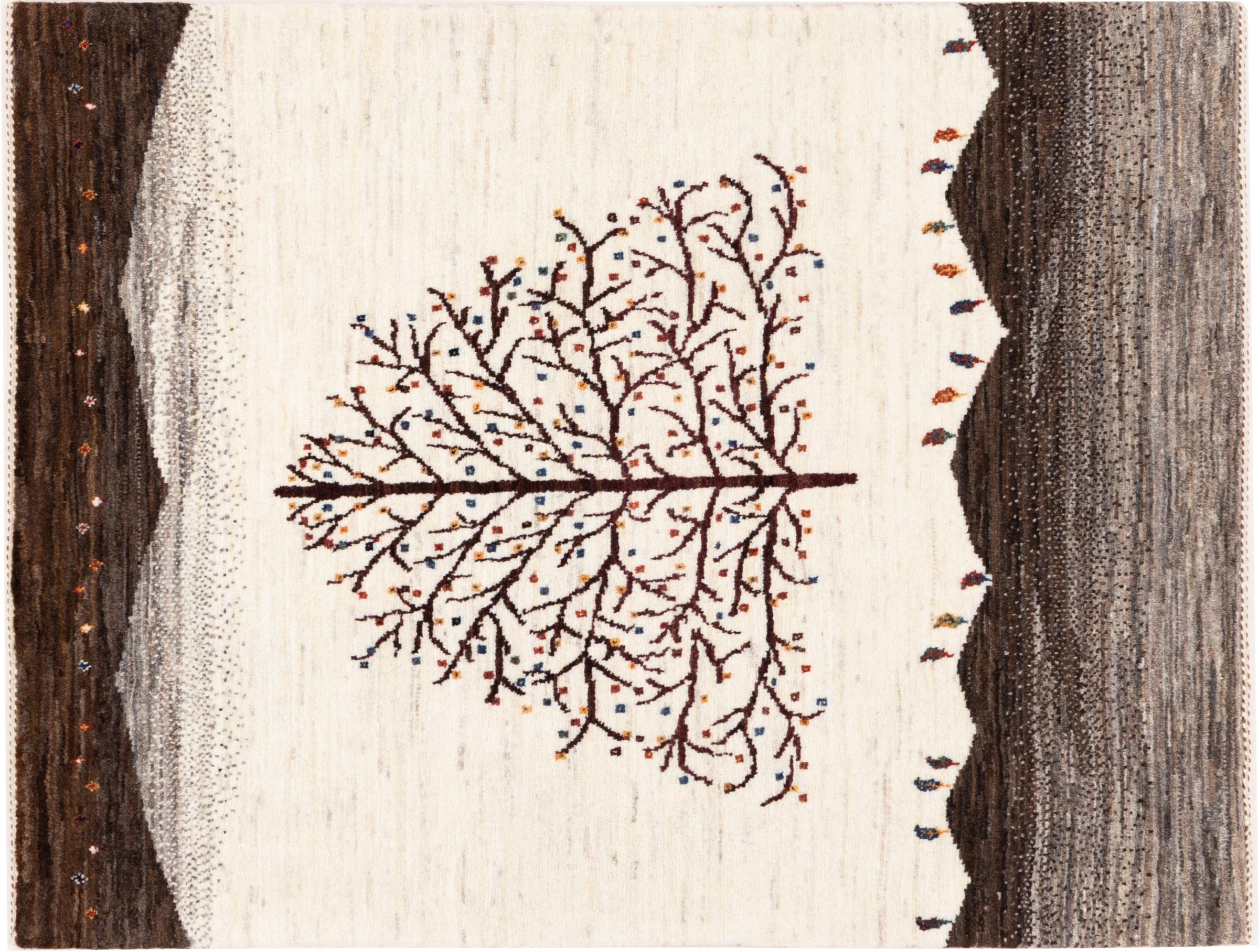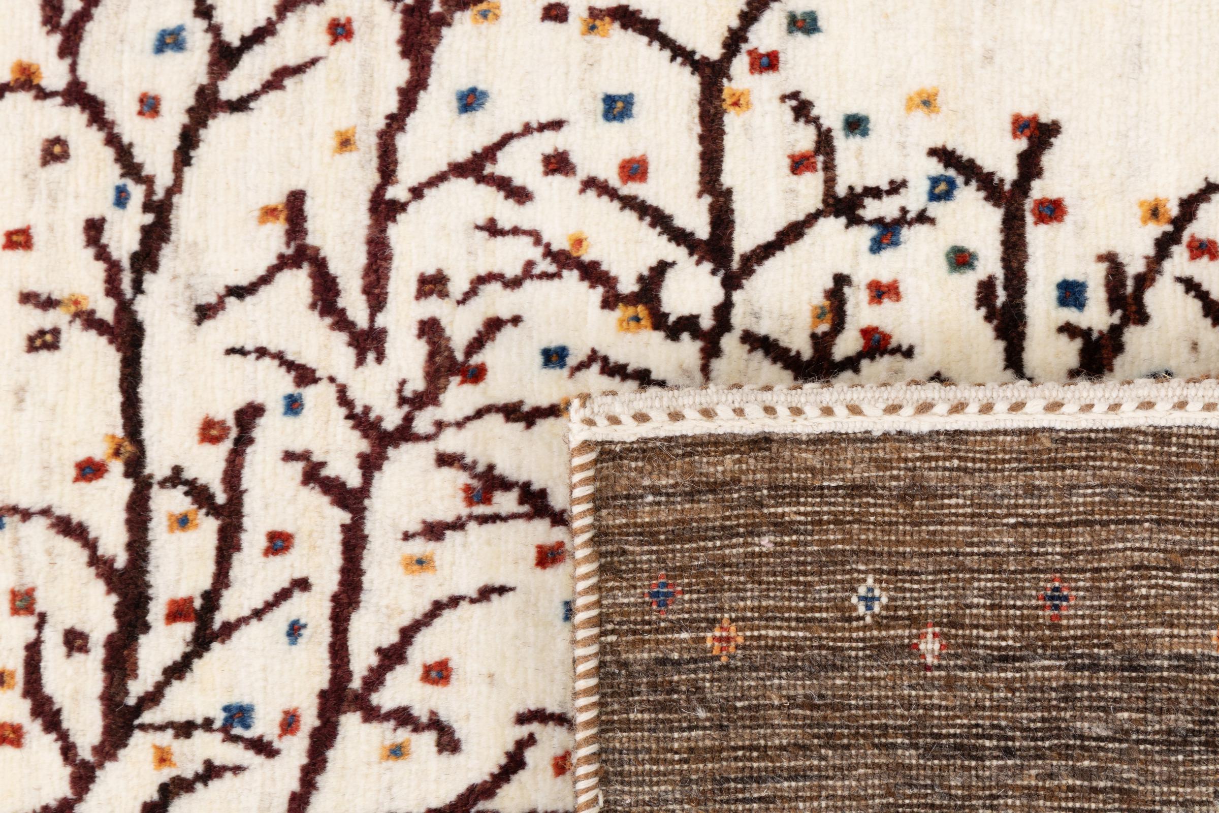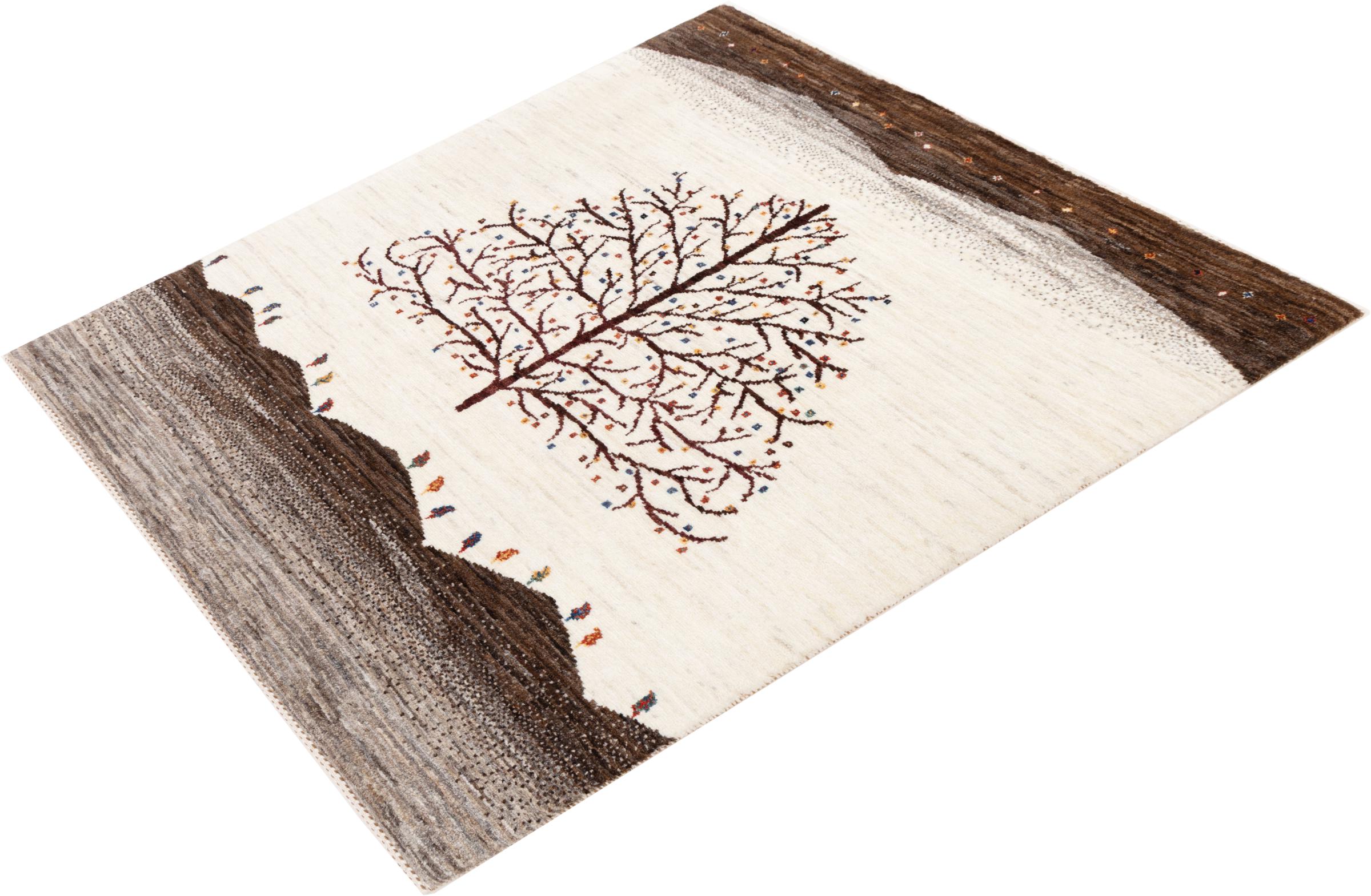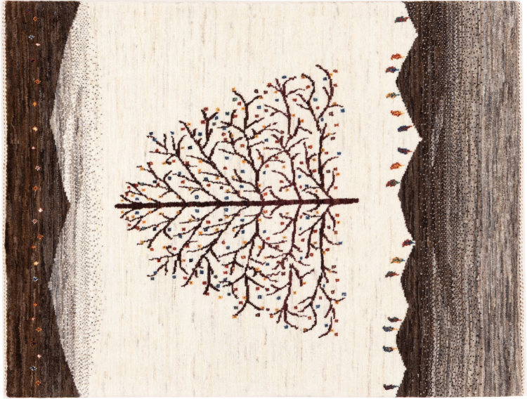 Dit prachtige tapijt is een Perzisch Gabbeh-tapijt en behoort daarom tot de hoogste kwaliteit Gabbeh-tapijten. De tapijten worden geknoopt door nomaden of semi-nomaden in Iran volgens traditioneel vakmanschap. De eenvoudige motieven en patronen zijn vooral geïnspireerd op de directe omgeving van de nomaden. Zo zijn er bijvoorbeeld kamelen, bomen of struiken te vinden op de traditionele tapijten. De Perzische Gabbeh-tapijten zijn gemaakt van wol van lokaal opgefokte kuddes schapen. De wol wordt dus meestal nog met de hand gesponnen. Elk van deze oosterse tapijten belichaamt dus een uniek karakter van de eeuwenoude cultuur.