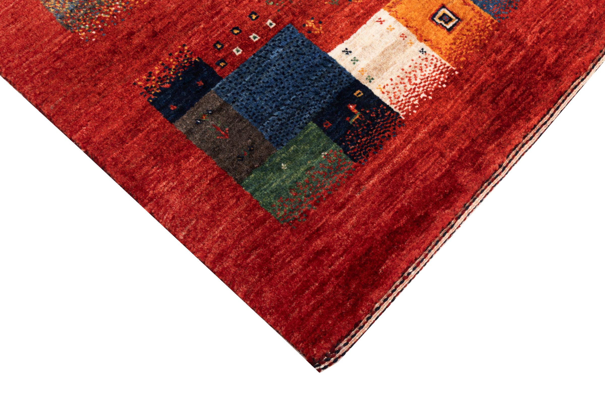 Een verfijning van de al bekende Gabbeh-tapijten: Dit is deze Perzische Gabbeh Loribaft. Het weet indruk te maken met zijn fijnere weefsel en prachtige ontwerp. Het werd door Loren in het zuiden van Perzië met de hand geknoopt van de beste handgesponnen schapenwol. Voor het verven van de wol worden uitsluitend pure plantaardige kleurstoffen gebruikt. Met dit vloerkleed haal je de hoogste standaard van een Gabbeh-tapijt in huis.