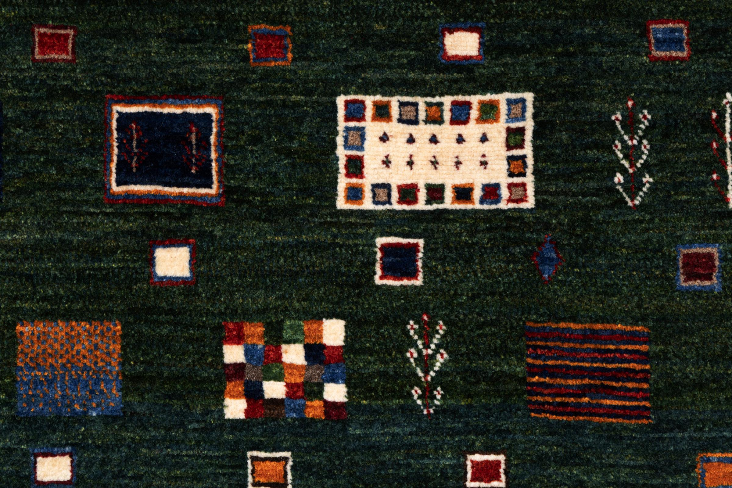 Een verfijning van de al bekende Gabbeh-tapijten: Dit is deze Perzische Gabbeh Loribaft. Het weet indruk te maken met zijn fijnere weefsel en prachtige ontwerp. Het werd door Loren in het zuiden van Perzië met de hand geknoopt van de beste handgesponnen schapenwol. Voor het verven van de wol worden uitsluitend pure plantaardige kleurstoffen gebruikt. Met dit vloerkleed haal je de hoogste standaard van een Gabbeh-tapijt in huis.