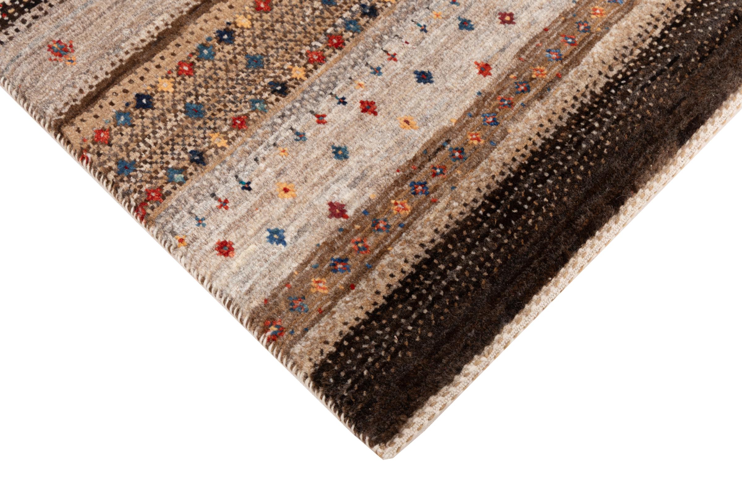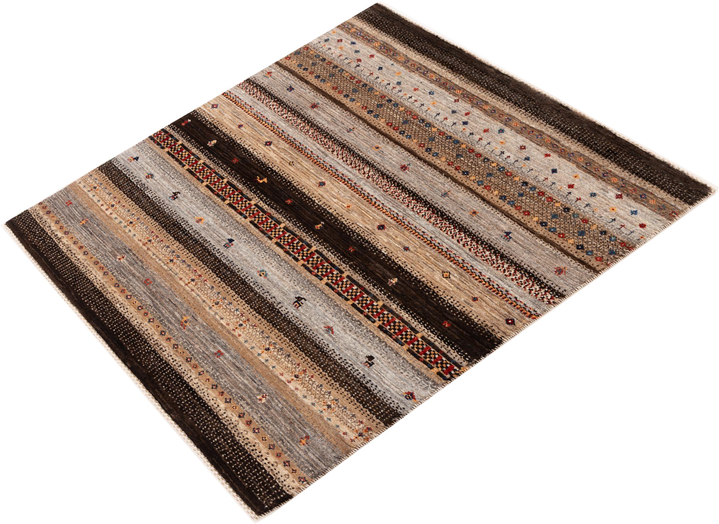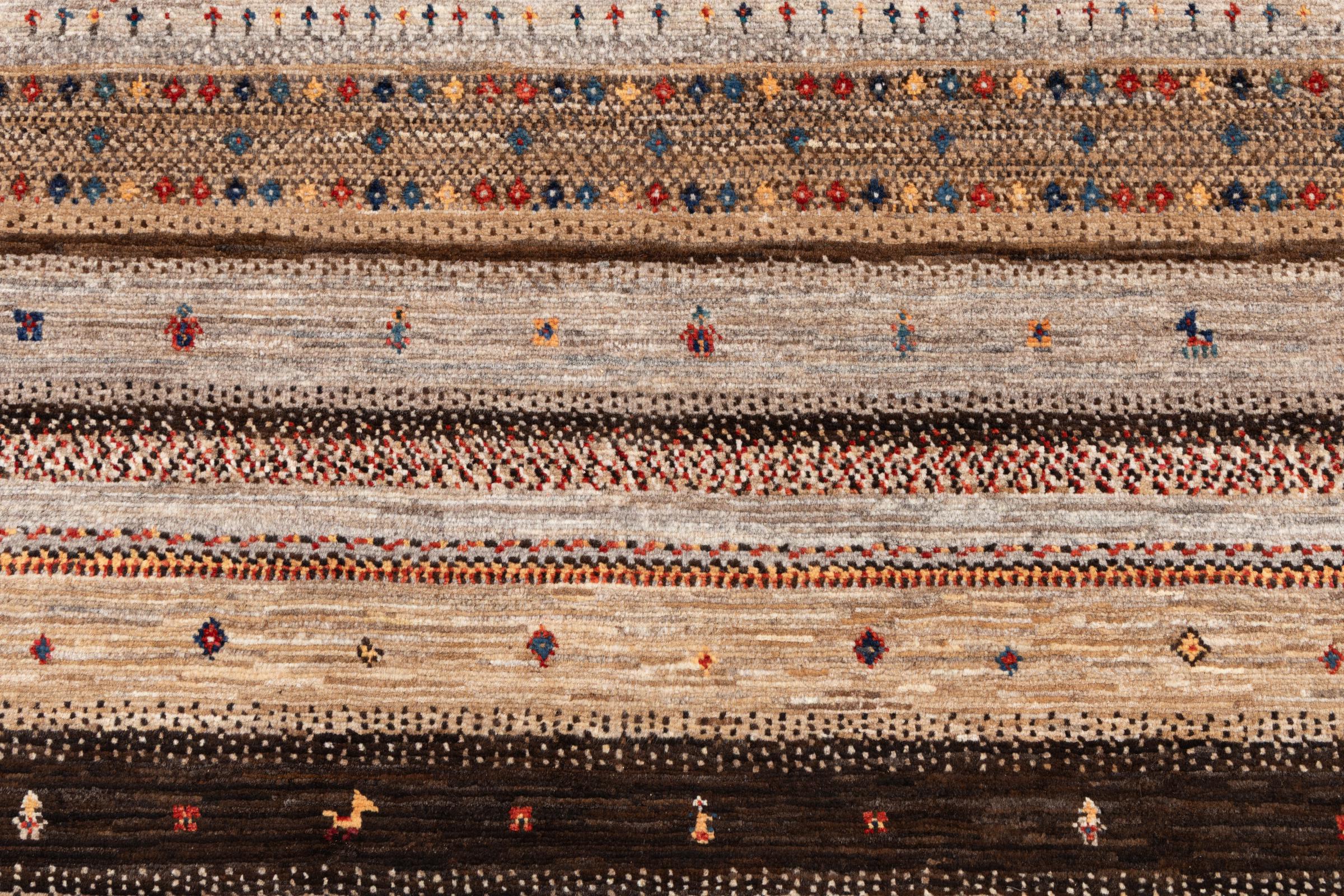 Een verfijning van de al bekende Gabbeh-tapijten: Dit is deze Perzische Gabbeh Loribaft. Het weet indruk te maken met zijn fijnere weefsel en prachtige ontwerp. Het werd door Loren in het zuiden van Perzië met de hand geknoopt van de beste handgesponnen schapenwol. Voor het verven van de wol worden uitsluitend pure plantaardige kleurstoffen gebruikt. Met dit vloerkleed haal je de hoogste standaard van een Gabbeh-tapijt in huis.