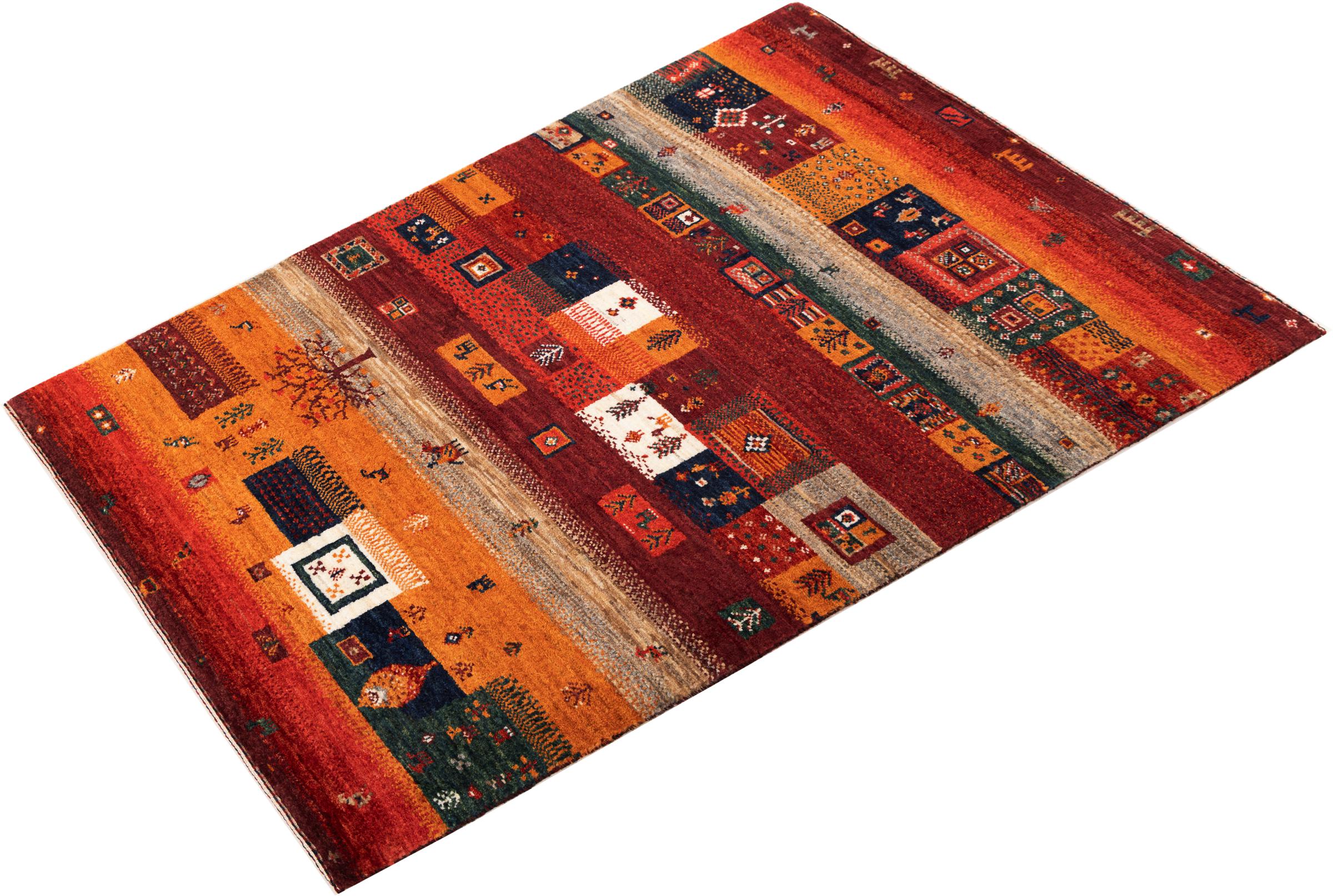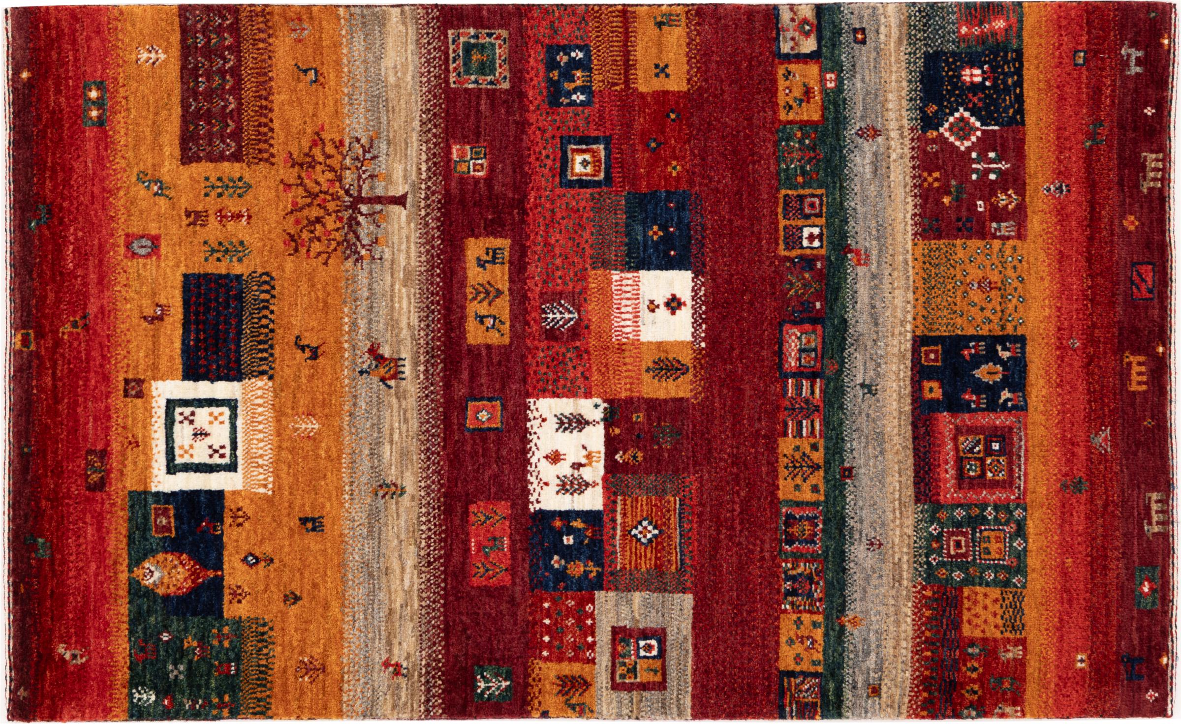 Een verfijning van de al bekende Gabbeh-tapijten: Dit is deze Perzische Gabbeh Loribaft. Het weet indruk te maken met zijn fijnere weefsel en prachtige ontwerp. Het werd door Loren in het zuiden van Perzië met de hand geknoopt van de beste handgesponnen schapenwol. Voor het verven van de wol worden uitsluitend pure plantaardige kleurstoffen gebruikt. Met dit vloerkleed haal je de hoogste standaard van een Gabbeh-tapijt in huis.