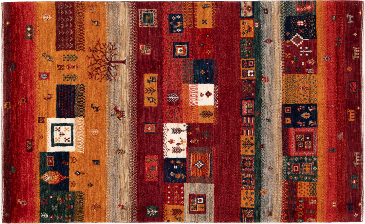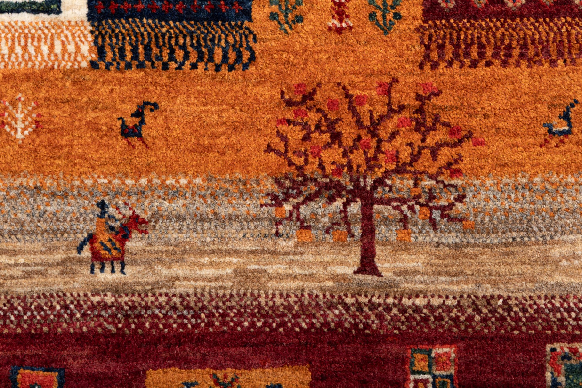 Dit prachtige tapijt is een Perzisch Gabbeh-tapijt en behoort daarom tot de hoogste kwaliteit Gabbeh-tapijten. De tapijten worden geknoopt door nomaden of semi-nomaden in Iran volgens traditioneel vakmanschap. De eenvoudige motieven en patronen zijn vooral geïnspireerd op de directe omgeving van de nomaden. Zo zijn er bijvoorbeeld kamelen, bomen of struiken te vinden op de traditionele tapijten. De Perzische Gabbeh-tapijten zijn gemaakt van wol van lokaal opgefokte kuddes schapen. De wol wordt dus meestal nog met de hand gesponnen. Elk van deze oosterse tapijten belichaamt dus een uniek karakter van de eeuwenoude cultuur.