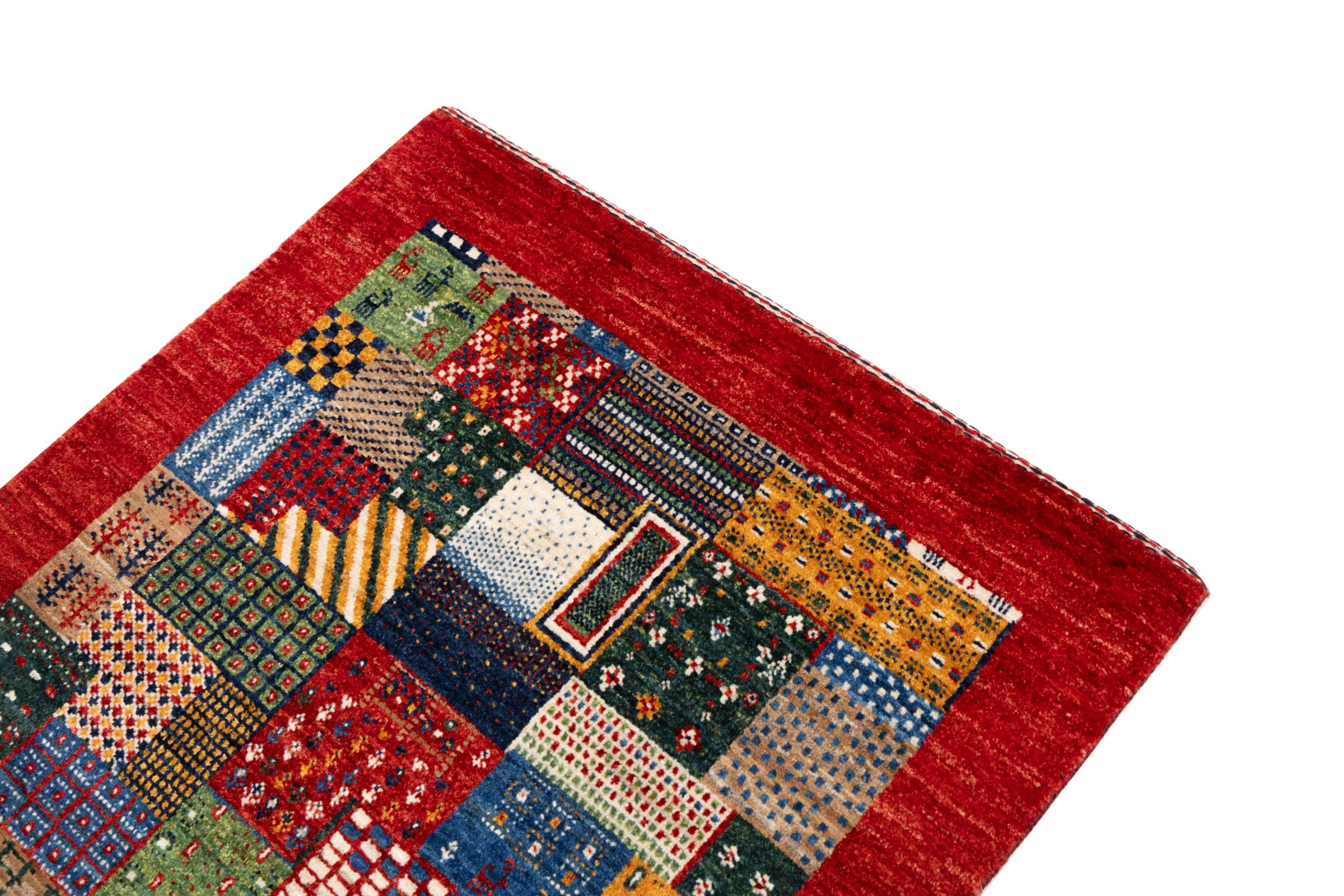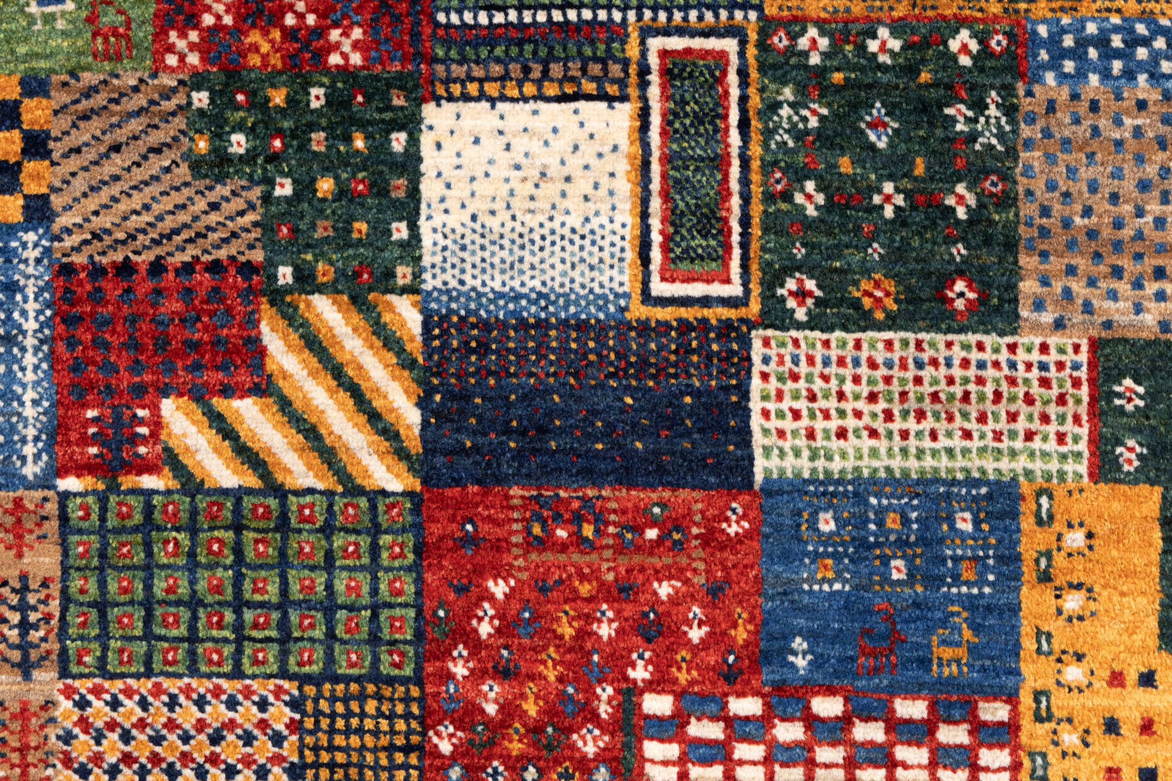 Een verfijning van de al bekende Gabbeh-tapijten: Dit is deze Perzische Gabbeh Loribaft. Het weet indruk te maken met zijn fijnere weefsel en prachtige ontwerp. Het werd door Loren in het zuiden van Perzië met de hand geknoopt van de beste handgesponnen schapenwol. Voor het verven van de wol worden uitsluitend pure plantaardige kleurstoffen gebruikt. Met dit vloerkleed haal je de hoogste standaard van een Gabbeh-tapijt in huis.