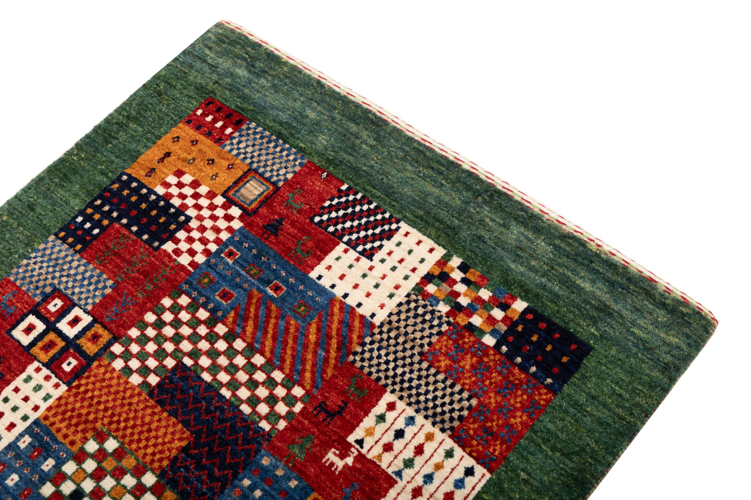 Dit prachtige tapijt is een Perzisch Gabbeh-tapijt en behoort daarom tot de hoogste kwaliteit Gabbeh-tapijten. De tapijten worden geknoopt door nomaden of semi-nomaden in Iran volgens traditioneel vakmanschap. De eenvoudige motieven en patronen zijn vooral geïnspireerd op de directe omgeving van de nomaden. Zo zijn er bijvoorbeeld kamelen, bomen of struiken te vinden op de traditionele tapijten. De Perzische Gabbeh-tapijten zijn gemaakt van wol van lokaal opgefokte kuddes schapen. De wol wordt dus meestal nog met de hand gesponnen. Elk van deze oosterse tapijten belichaamt dus een uniek karakter van de eeuwenoude cultuur.