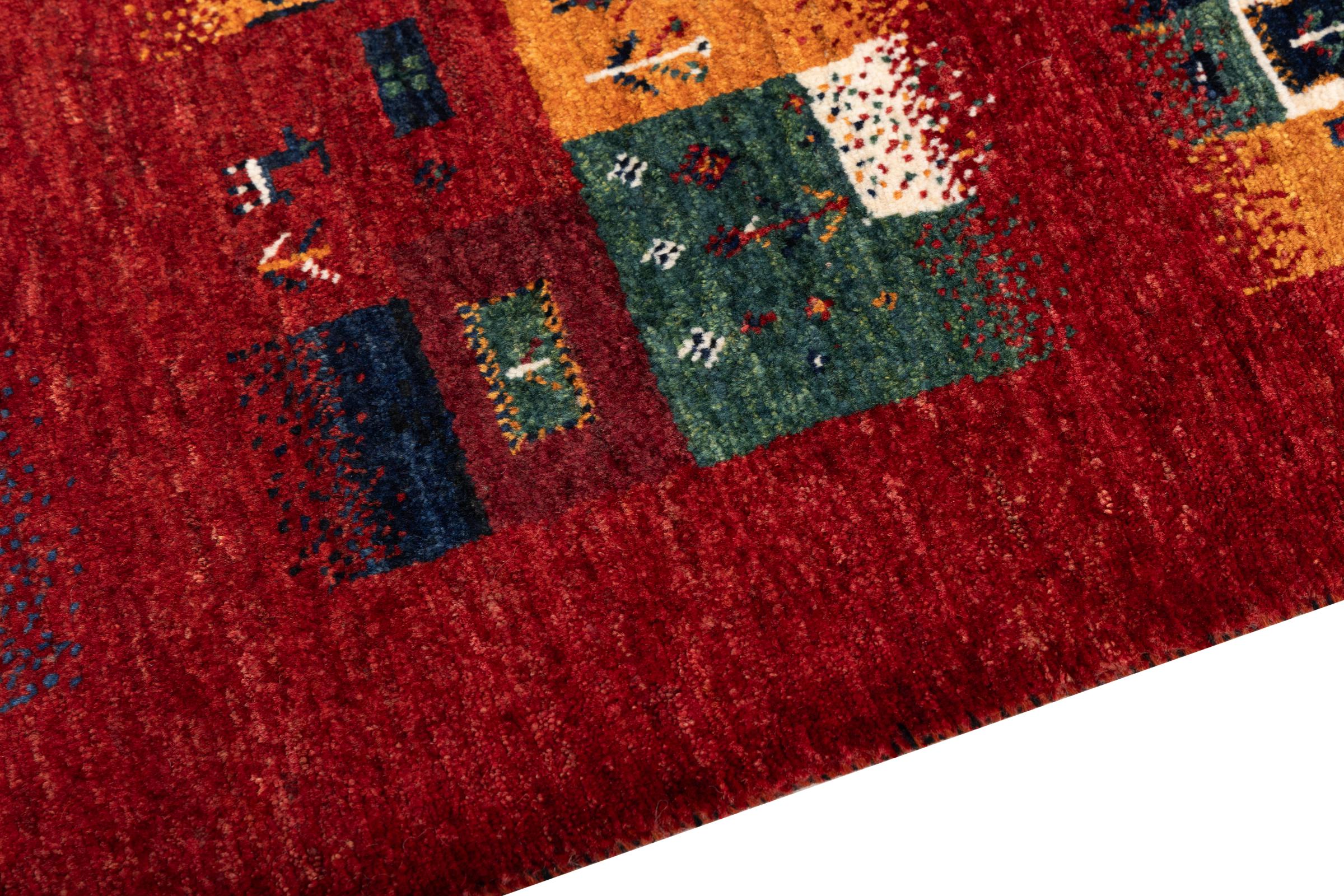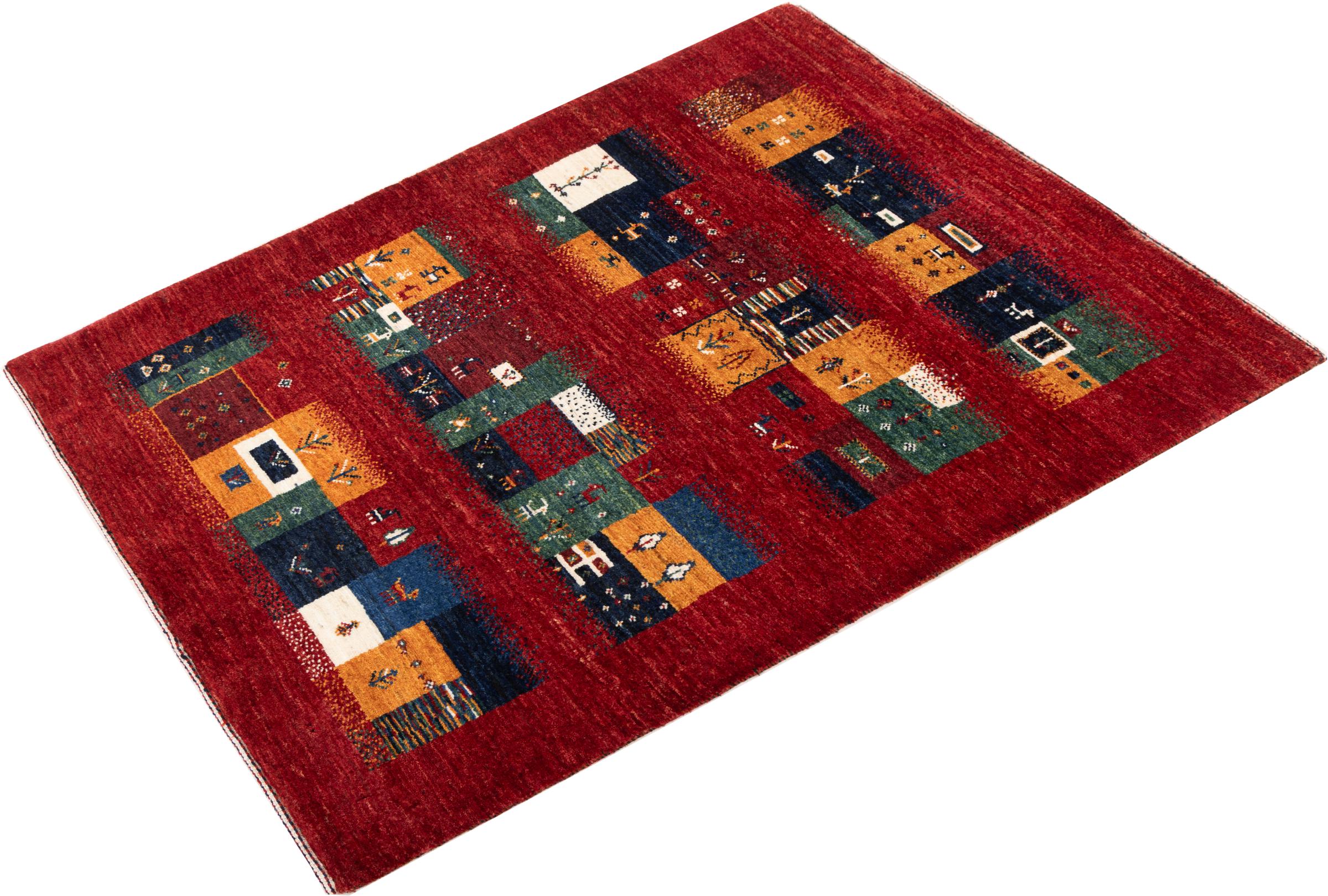Een verfijning van de al bekende Gabbeh-tapijten: Dit is deze Perzische Gabbeh Loribaft. Het weet indruk te maken met zijn fijnere weefsel en prachtige ontwerp. Het werd door Loren in het zuiden van Perzië met de hand geknoopt van de beste handgesponnen schapenwol. Voor het verven van de wol worden uitsluitend pure plantaardige kleurstoffen gebruikt. Met dit vloerkleed haal je de hoogste standaard van een Gabbeh-tapijt in huis.