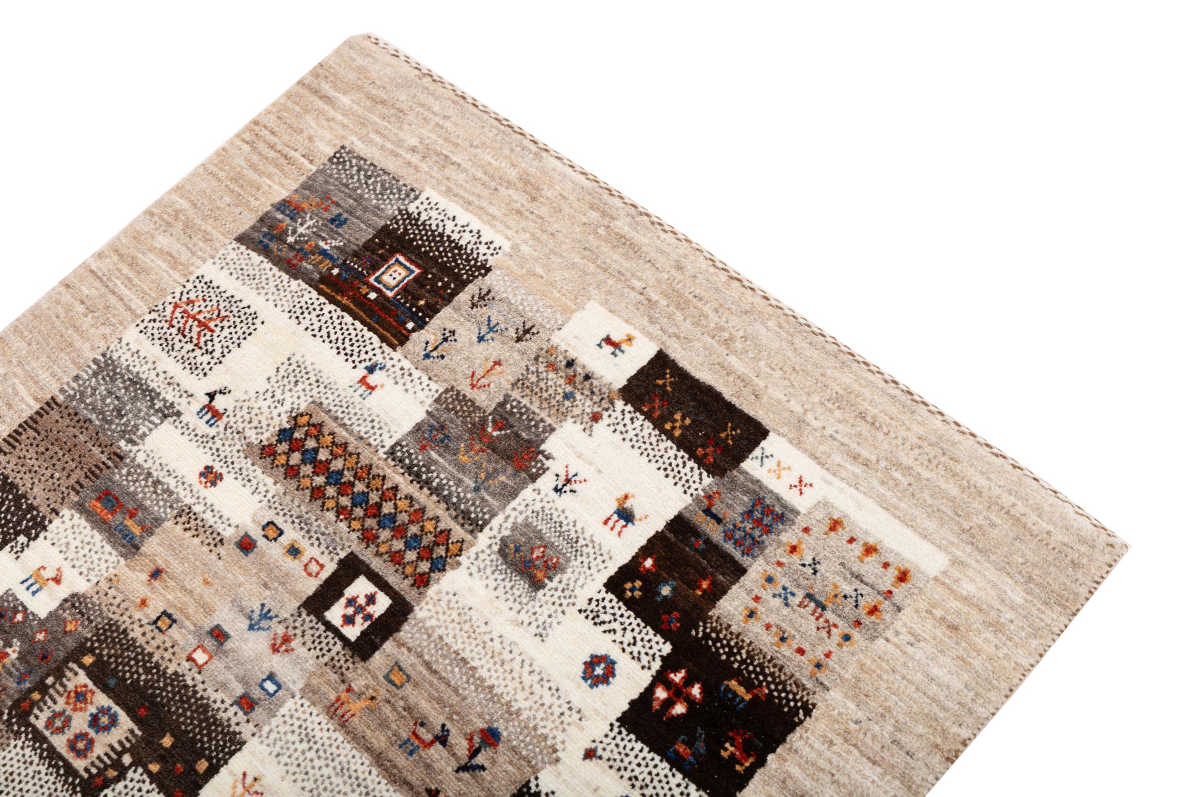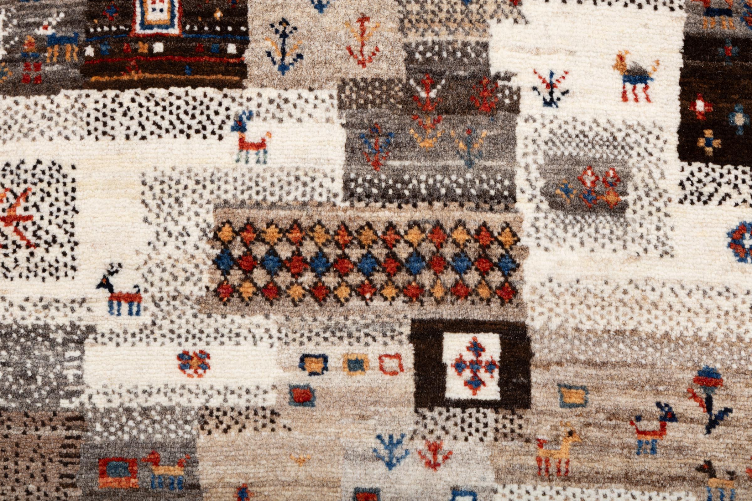 Dit prachtige tapijt is een Perzisch Gabbeh-tapijt en behoort daarom tot de hoogste kwaliteit Gabbeh-tapijten. De tapijten worden geknoopt door nomaden of semi-nomaden in Iran volgens traditioneel vakmanschap. De eenvoudige motieven en patronen zijn vooral geïnspireerd op de directe omgeving van de nomaden. Zo zijn er bijvoorbeeld kamelen, bomen of struiken te vinden op de traditionele tapijten. De Perzische Gabbeh-tapijten zijn gemaakt van wol van lokaal opgefokte kuddes schapen. De wol wordt dus meestal nog met de hand gesponnen. Elk van deze oosterse tapijten belichaamt dus een uniek karakter van de eeuwenoude cultuur.