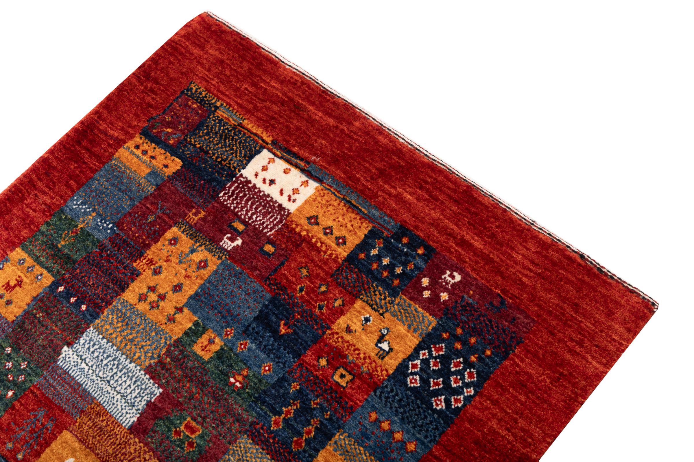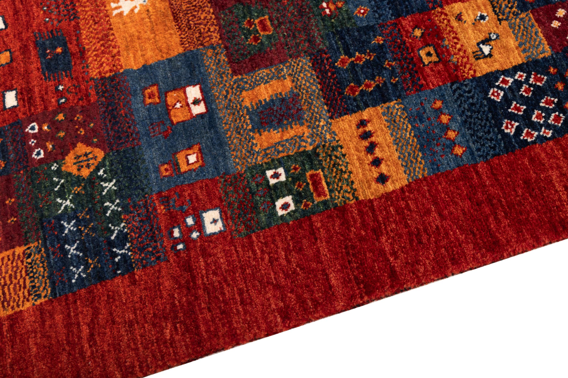 Een verfijning van de al bekende Gabbeh-tapijten: Dit is deze Perzische Gabbeh Loribaft. Het weet indruk te maken met zijn fijnere weefsel en prachtige ontwerp. Het werd door Loren in het zuiden van Perzië met de hand geknoopt van de beste handgesponnen schapenwol. Voor het verven van de wol worden uitsluitend pure plantaardige kleurstoffen gebruikt. Met dit vloerkleed haal je de hoogste standaard van een Gabbeh-tapijt in huis.