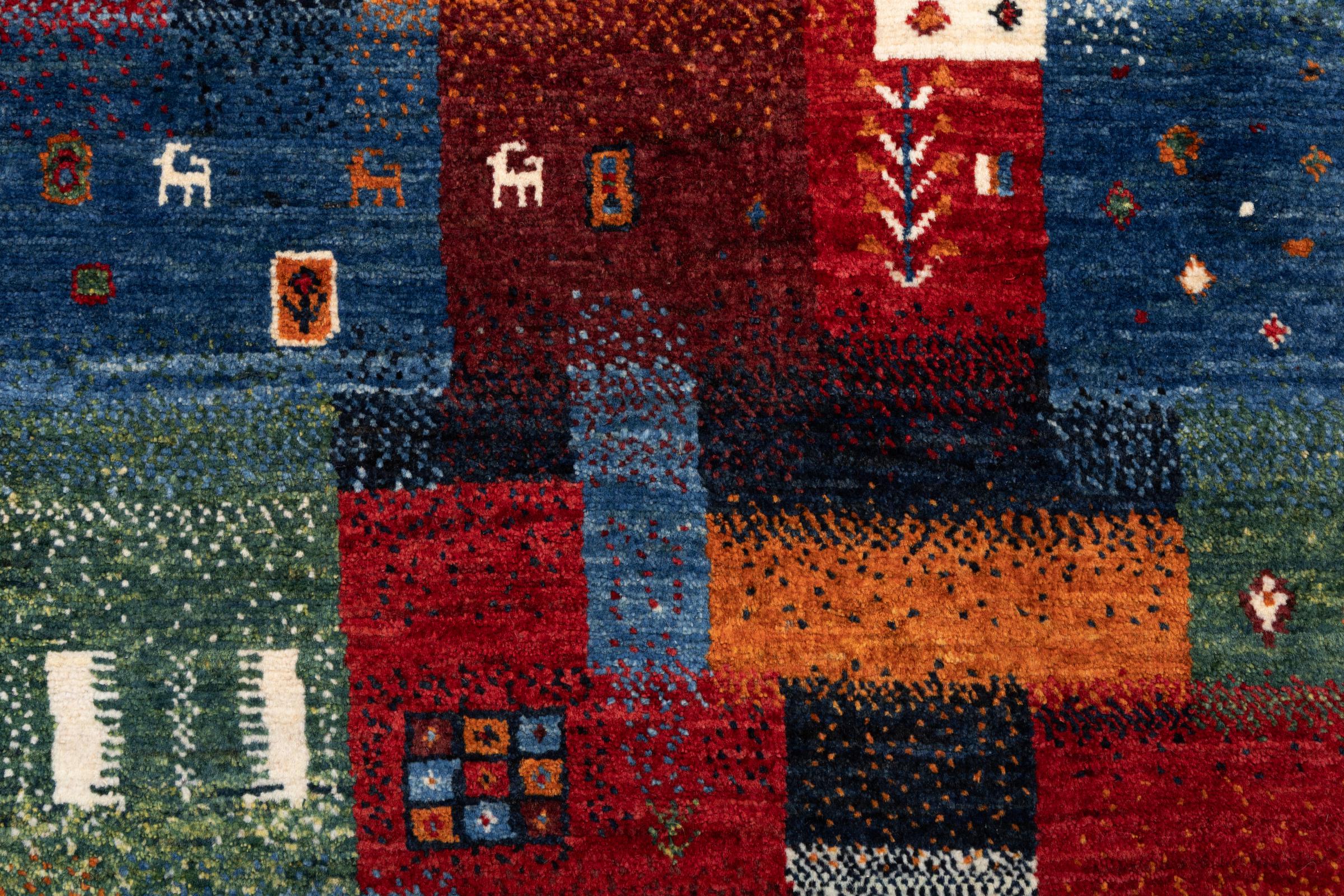 Een verfijning van de al bekende Gabbeh-tapijten: Dit is deze Perzische Gabbeh Loribaft. Het weet indruk te maken met zijn fijnere weefsel en prachtige ontwerp. Het werd door Loren in het zuiden van Perzië met de hand geknoopt van de beste handgesponnen schapenwol. Voor het verven van de wol worden uitsluitend pure plantaardige kleurstoffen gebruikt. Met dit vloerkleed haal je de hoogste standaard van een Gabbeh-tapijt in huis.