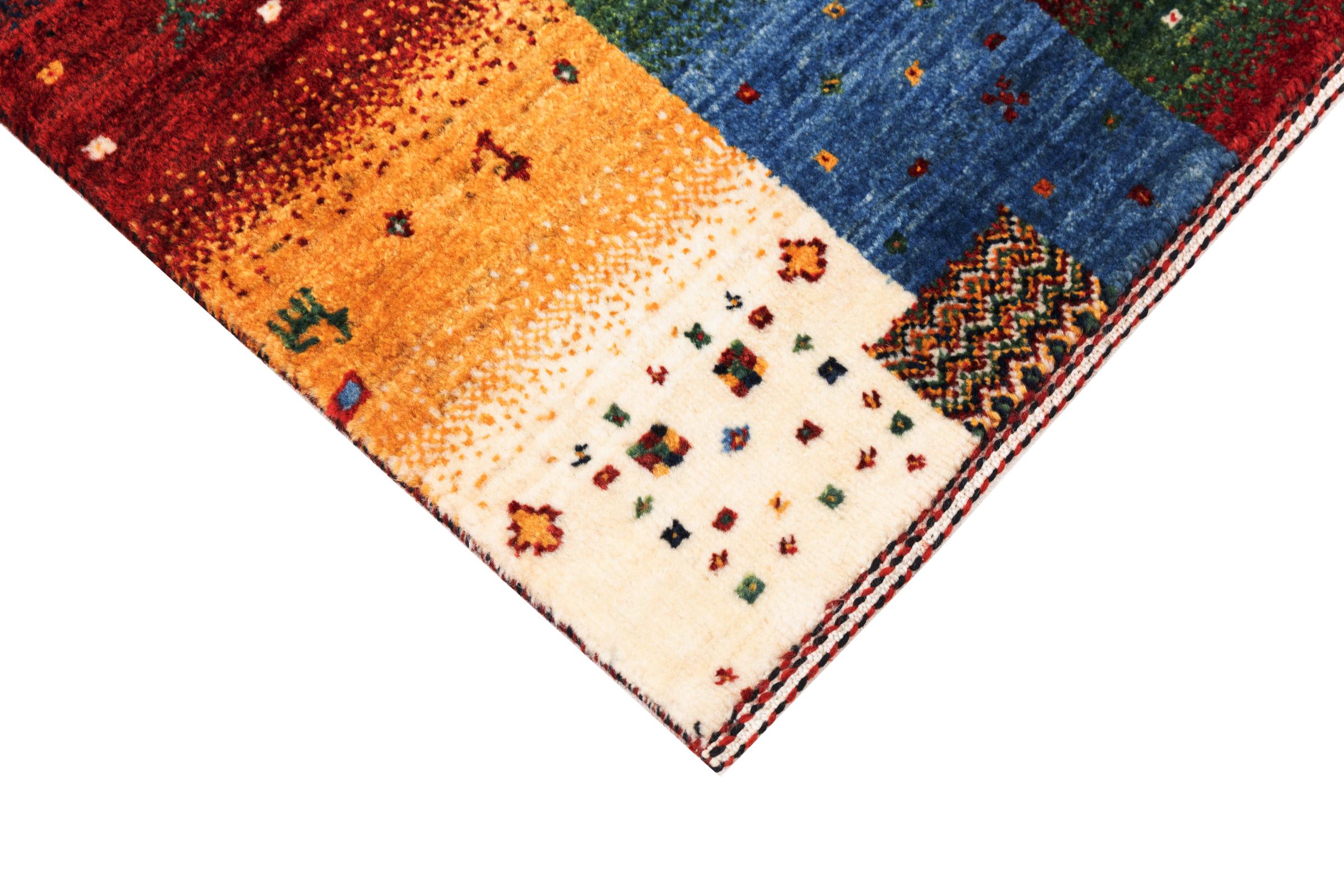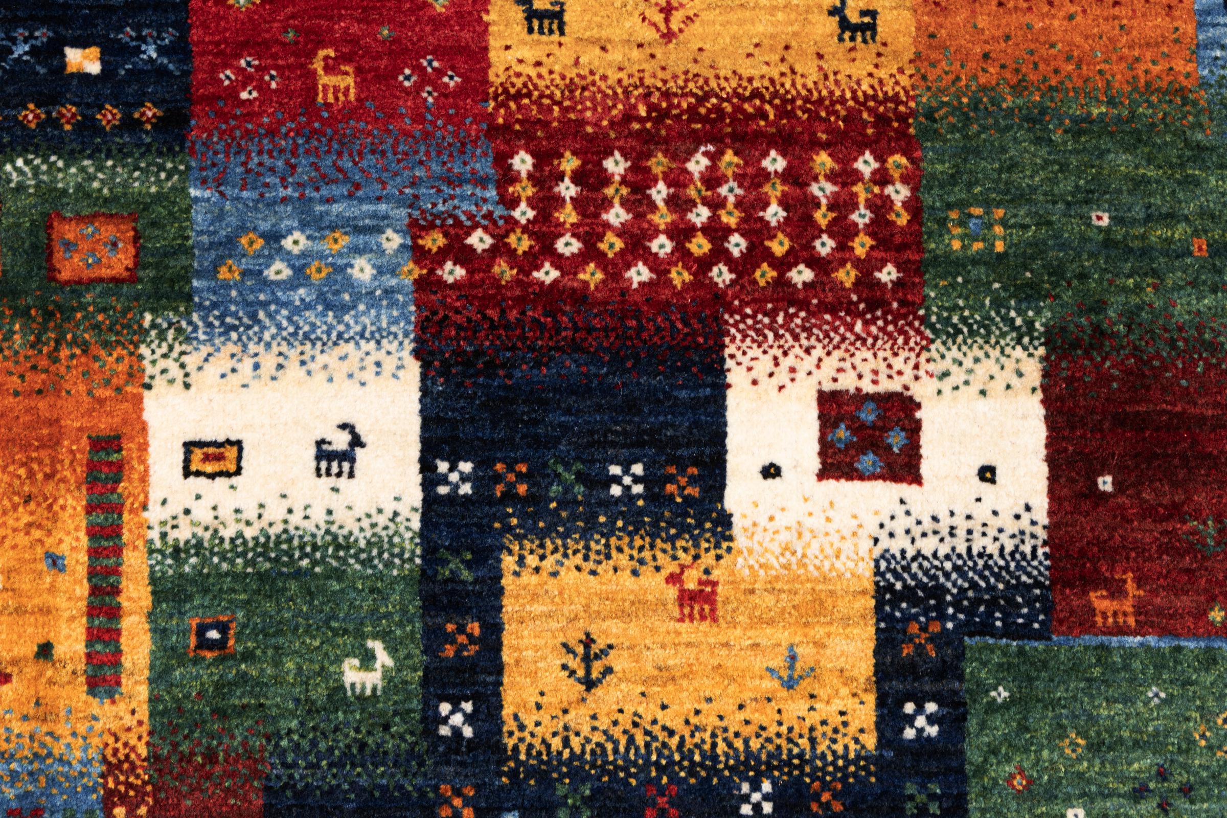 Een verfijning van de al bekende Gabbeh-tapijten: Dit is deze Perzische Gabbeh Loribaft. Het weet indruk te maken met zijn fijnere weefsel en prachtige ontwerp. Het werd door Loren in het zuiden van Perzië met de hand geknoopt van de beste handgesponnen schapenwol. Voor het verven van de wol worden uitsluitend pure plantaardige kleurstoffen gebruikt. Met dit vloerkleed haal je de hoogste standaard van een Gabbeh-tapijt in huis.