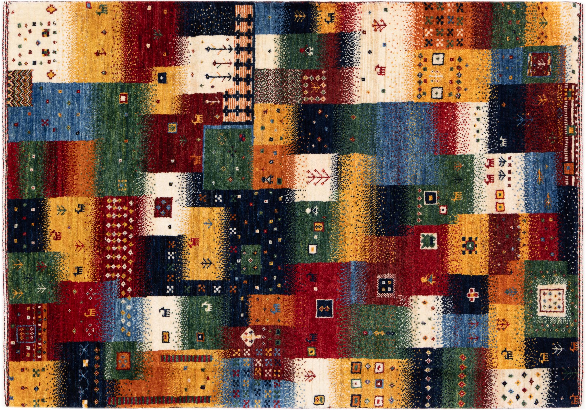 Dit prachtige tapijt is een Perzisch Gabbeh-tapijt en behoort daarom tot de hoogste kwaliteit Gabbeh-tapijten. De tapijten worden geknoopt door nomaden of semi-nomaden in Iran volgens traditioneel vakmanschap. De eenvoudige motieven en patronen zijn vooral geïnspireerd op de directe omgeving van de nomaden. Zo zijn er bijvoorbeeld kamelen, bomen of struiken te vinden op de traditionele tapijten. De Perzische Gabbeh-tapijten zijn gemaakt van wol van lokaal opgefokte kuddes schapen. De wol wordt dus meestal nog met de hand gesponnen. Elk van deze oosterse tapijten belichaamt dus een uniek karakter van de eeuwenoude cultuur.