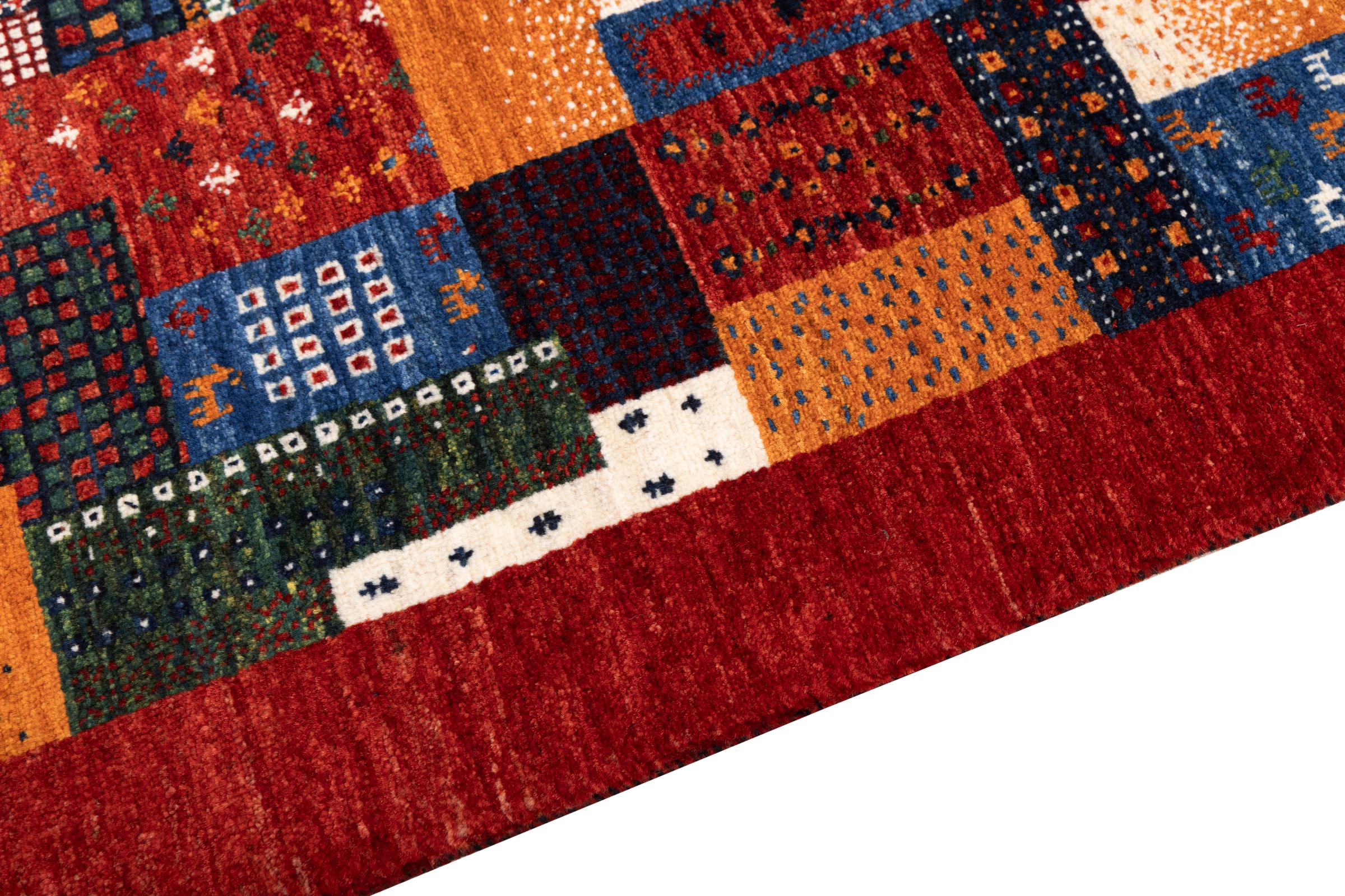Dit prachtige tapijt is een Perzisch Gabbeh-tapijt en behoort daarom tot de hoogste kwaliteit Gabbeh-tapijten. De tapijten worden geknoopt door nomaden of semi-nomaden in Iran volgens traditioneel vakmanschap. De eenvoudige motieven en patronen zijn vooral geïnspireerd op de directe omgeving van de nomaden. Zo zijn er bijvoorbeeld kamelen, bomen of struiken te vinden op de traditionele tapijten. De Perzische Gabbeh-tapijten zijn gemaakt van wol van lokaal opgefokte kuddes schapen. De wol wordt dus meestal nog met de hand gesponnen. Elk van deze oosterse tapijten belichaamt dus een uniek karakter van de eeuwenoude cultuur.