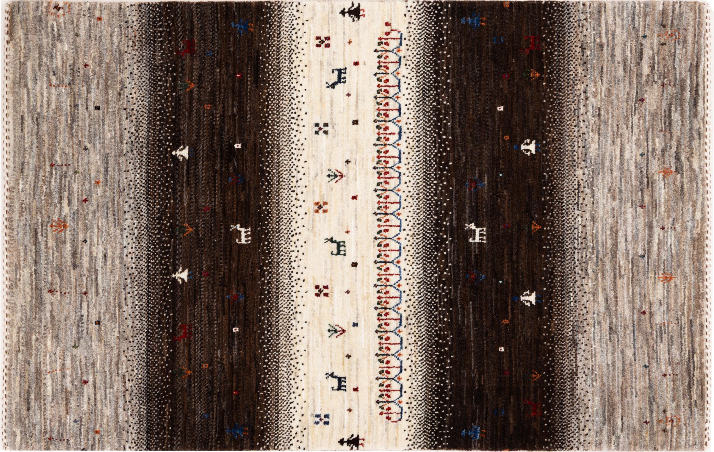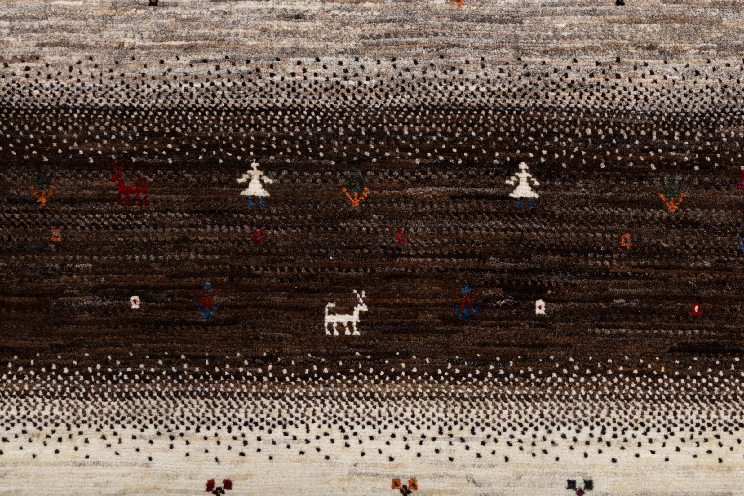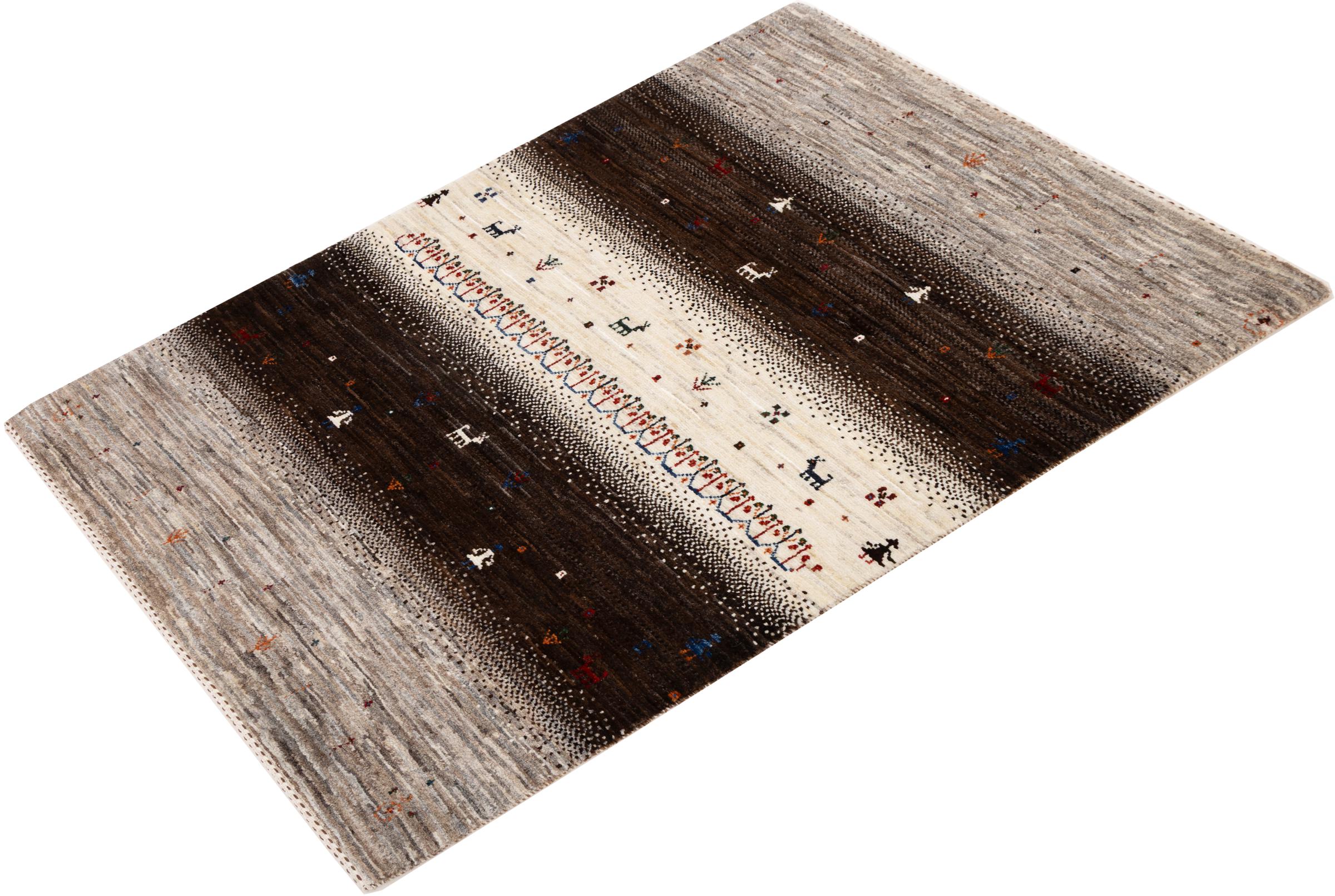 Een verfijning van de al bekende Gabbeh-tapijten: Dit is deze Perzische Gabbeh Loribaft. Het weet indruk te maken met zijn fijnere weefsel en prachtige ontwerp. Het werd door Loren in het zuiden van Perzië met de hand geknoopt van de beste handgesponnen schapenwol. Voor het verven van de wol worden uitsluitend pure plantaardige kleurstoffen gebruikt. Met dit vloerkleed haal je de hoogste standaard van een Gabbeh-tapijt in huis.
