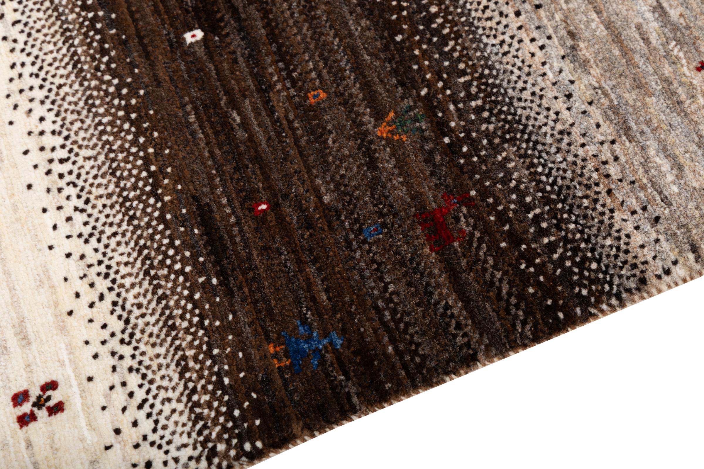 Dit prachtige tapijt is een Perzisch Gabbeh-tapijt en behoort daarom tot de hoogste kwaliteit Gabbeh-tapijten. De tapijten worden geknoopt door nomaden of semi-nomaden in Iran volgens traditioneel vakmanschap. De eenvoudige motieven en patronen zijn vooral geïnspireerd op de directe omgeving van de nomaden. Zo zijn er bijvoorbeeld kamelen, bomen of struiken te vinden op de traditionele tapijten. De Perzische Gabbeh-tapijten zijn gemaakt van wol van lokaal opgefokte kuddes schapen. De wol wordt dus meestal nog met de hand gesponnen. Elk van deze oosterse tapijten belichaamt dus een uniek karakter van de eeuwenoude cultuur.