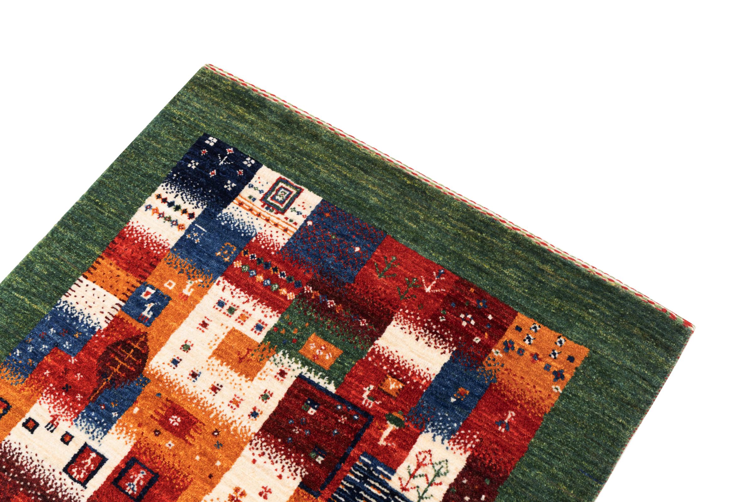Een verfijning van de al bekende Gabbeh-tapijten: Dit is deze Perzische Gabbeh Loribaft. Het weet indruk te maken met zijn fijnere weefsel en prachtige ontwerp. Het werd door Loren in het zuiden van Perzië met de hand geknoopt van de beste handgesponnen schapenwol. Voor het verven van de wol worden uitsluitend pure plantaardige kleurstoffen gebruikt. Met dit vloerkleed haal je de hoogste standaard van een Gabbeh-tapijt in huis.