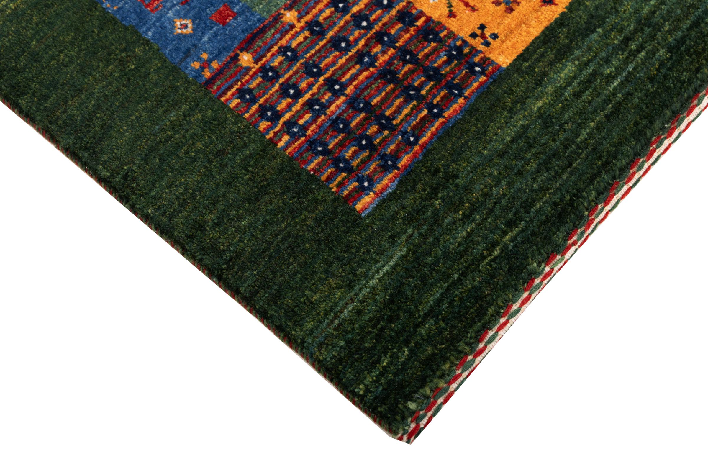 Een verfijning van de al bekende Gabbeh-tapijten: Dit is deze Perzische Gabbeh Loribaft. Het weet indruk te maken met zijn fijnere weefsel en prachtige ontwerp. Het werd door Loren in het zuiden van Perzië met de hand geknoopt van de beste handgesponnen schapenwol. Voor het verven van de wol worden uitsluitend pure plantaardige kleurstoffen gebruikt. Met dit vloerkleed haal je de hoogste standaard van een Gabbeh-tapijt in huis.