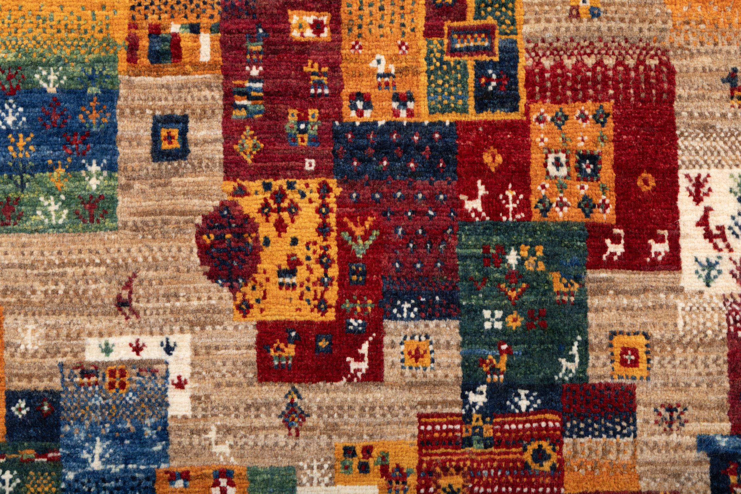 Een verfijning van de al bekende Gabbeh-tapijten: Dit is deze Perzische Gabbeh Loribaft. Het weet indruk te maken met zijn fijnere weefsel en prachtige ontwerp. Het werd door Loren in het zuiden van Perzië met de hand geknoopt van de beste handgesponnen schapenwol. Voor het verven van de wol worden uitsluitend pure plantaardige kleurstoffen gebruikt. Met dit vloerkleed haal je de hoogste standaard van een Gabbeh-tapijt in huis.