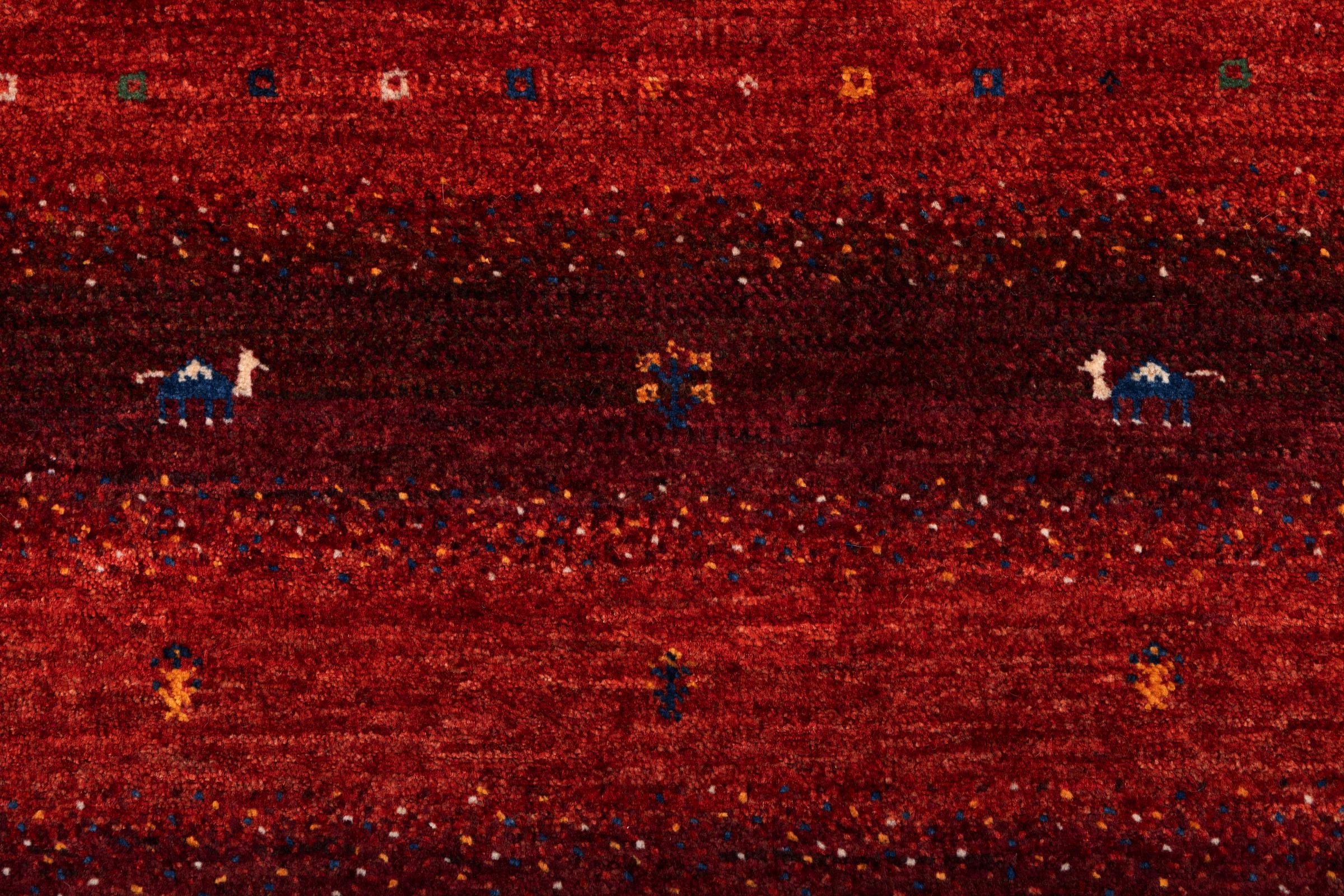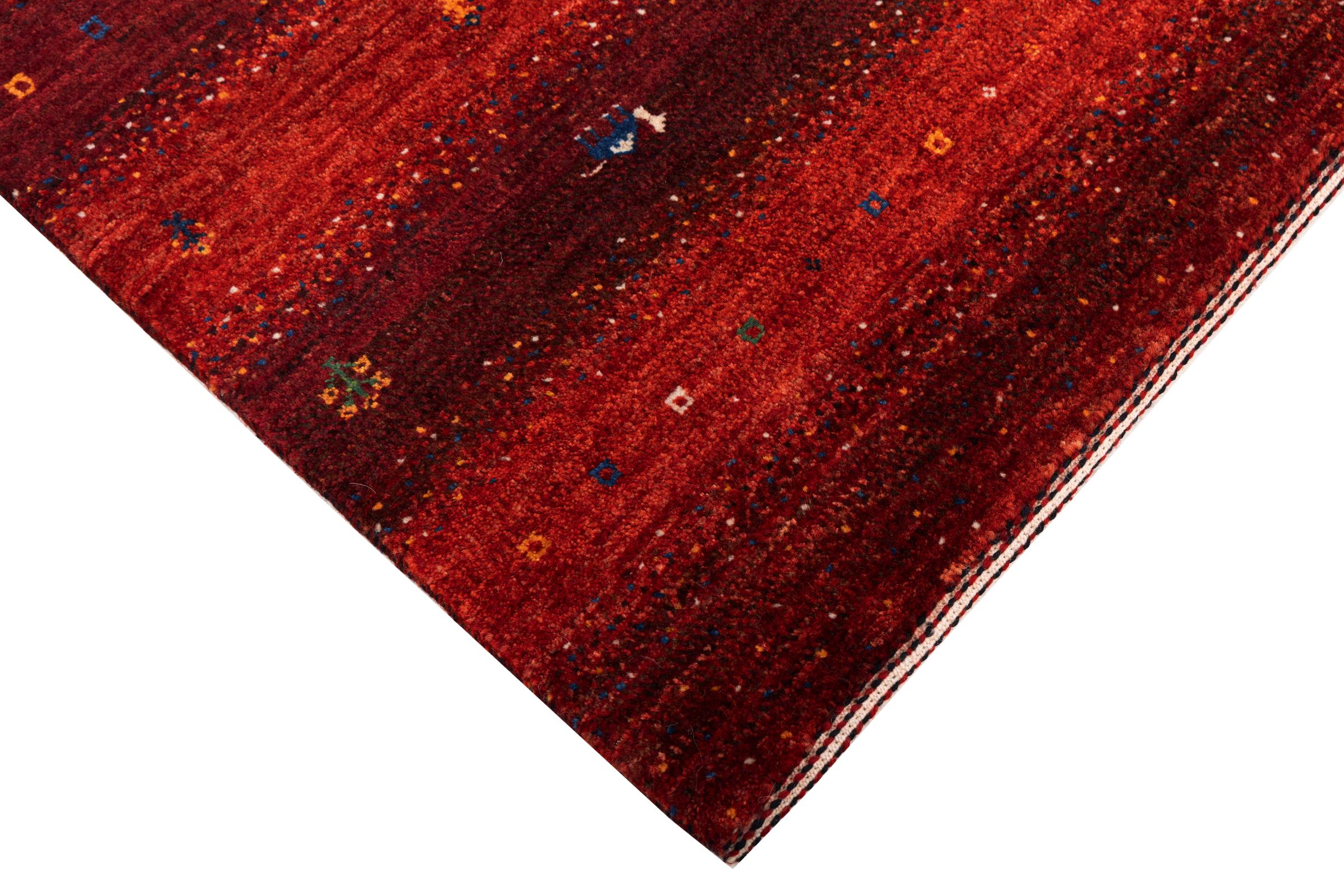 Een verfijning van de al bekende Gabbeh-tapijten: Dit is deze Perzische Gabbeh Loribaft. Het weet indruk te maken met zijn fijnere weefsel en prachtige ontwerp. Het werd door Loren in het zuiden van Perzië met de hand geknoopt van de beste handgesponnen schapenwol. Voor het verven van de wol worden uitsluitend pure plantaardige kleurstoffen gebruikt. Met dit vloerkleed haal je de hoogste standaard van een Gabbeh-tapijt in huis.