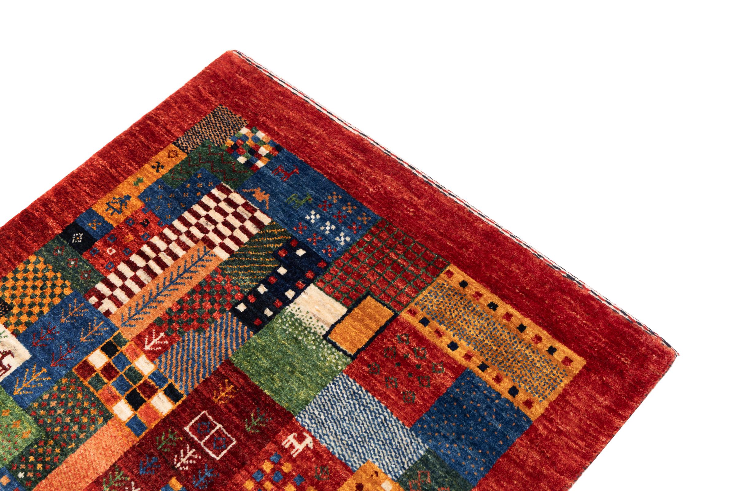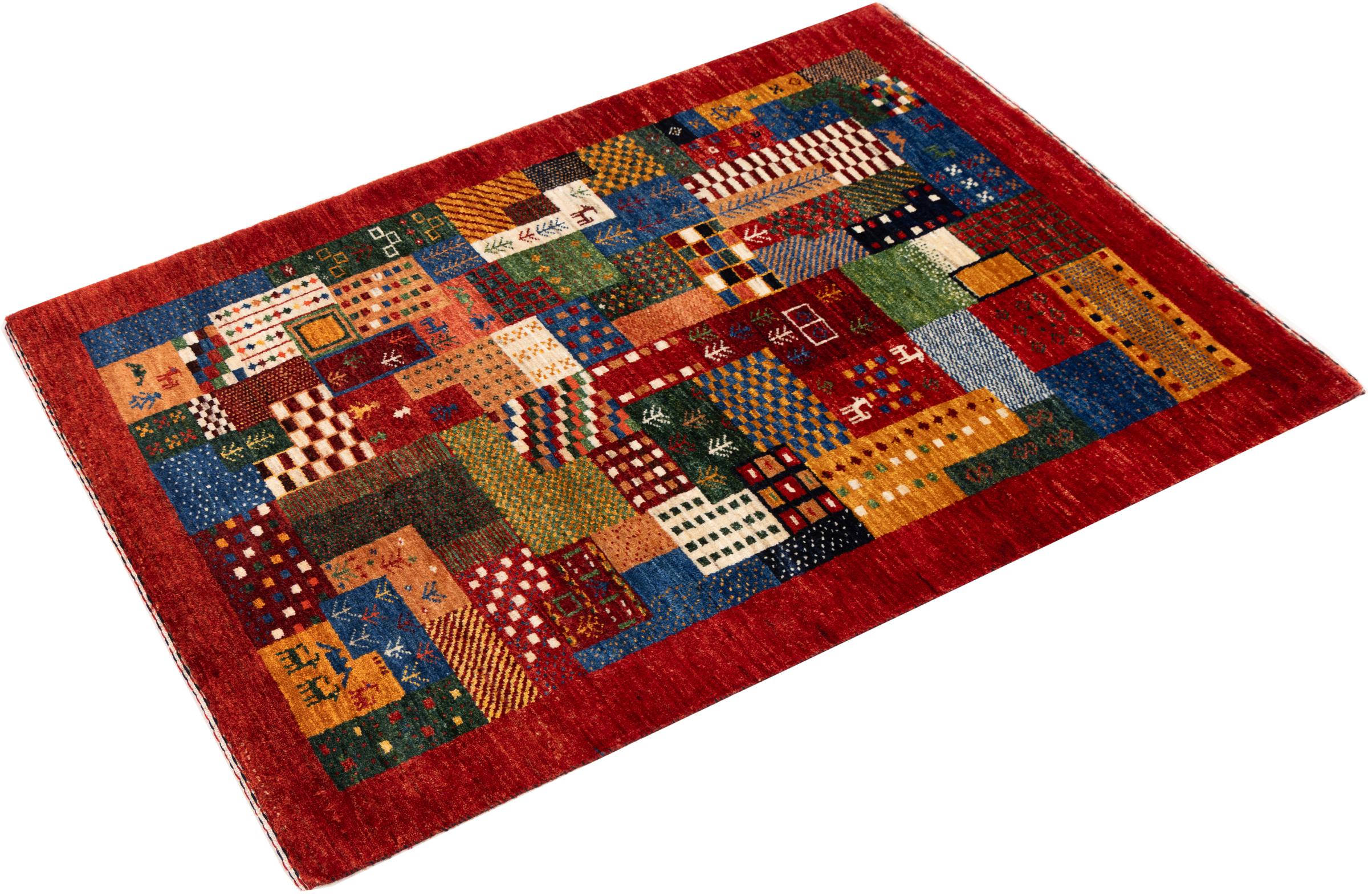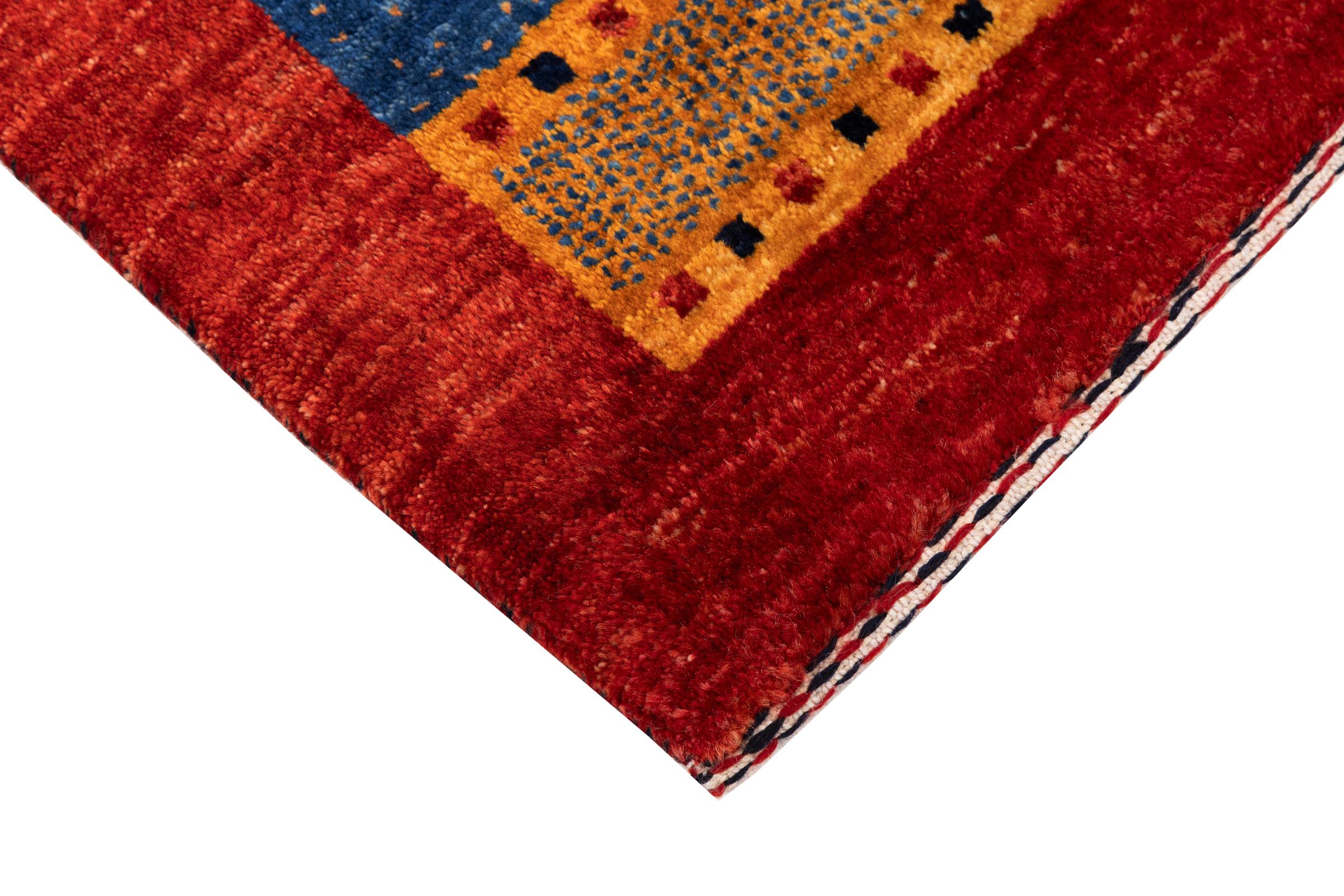 Een verfijning van de al bekende Gabbeh-tapijten: Dit is deze Perzische Gabbeh Loribaft. Het weet indruk te maken met zijn fijnere weefsel en prachtige ontwerp. Het werd door Loren in het zuiden van Perzië met de hand geknoopt van de beste handgesponnen schapenwol. Voor het verven van de wol worden uitsluitend pure plantaardige kleurstoffen gebruikt. Met dit vloerkleed haal je de hoogste standaard van een Gabbeh-tapijt in huis.