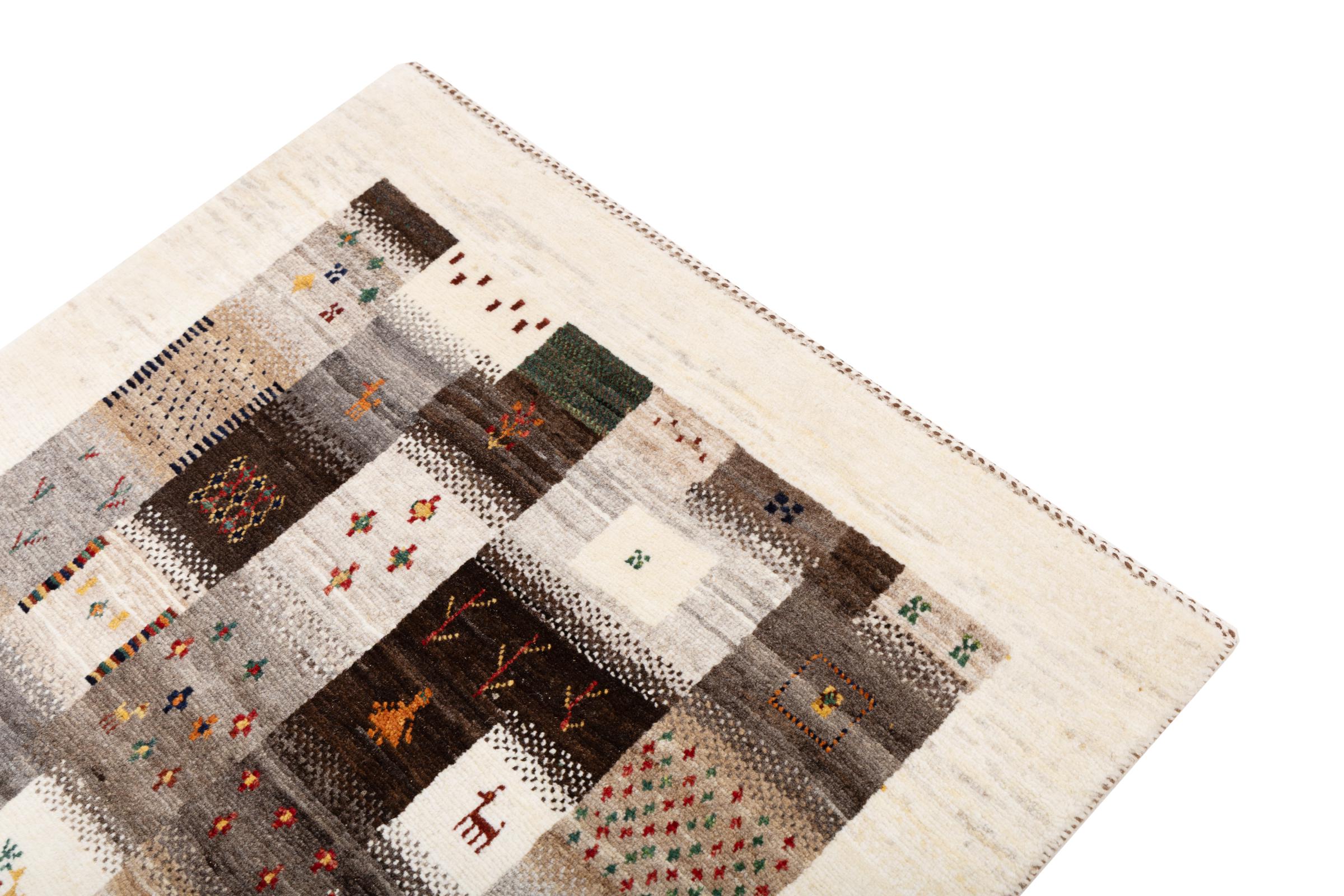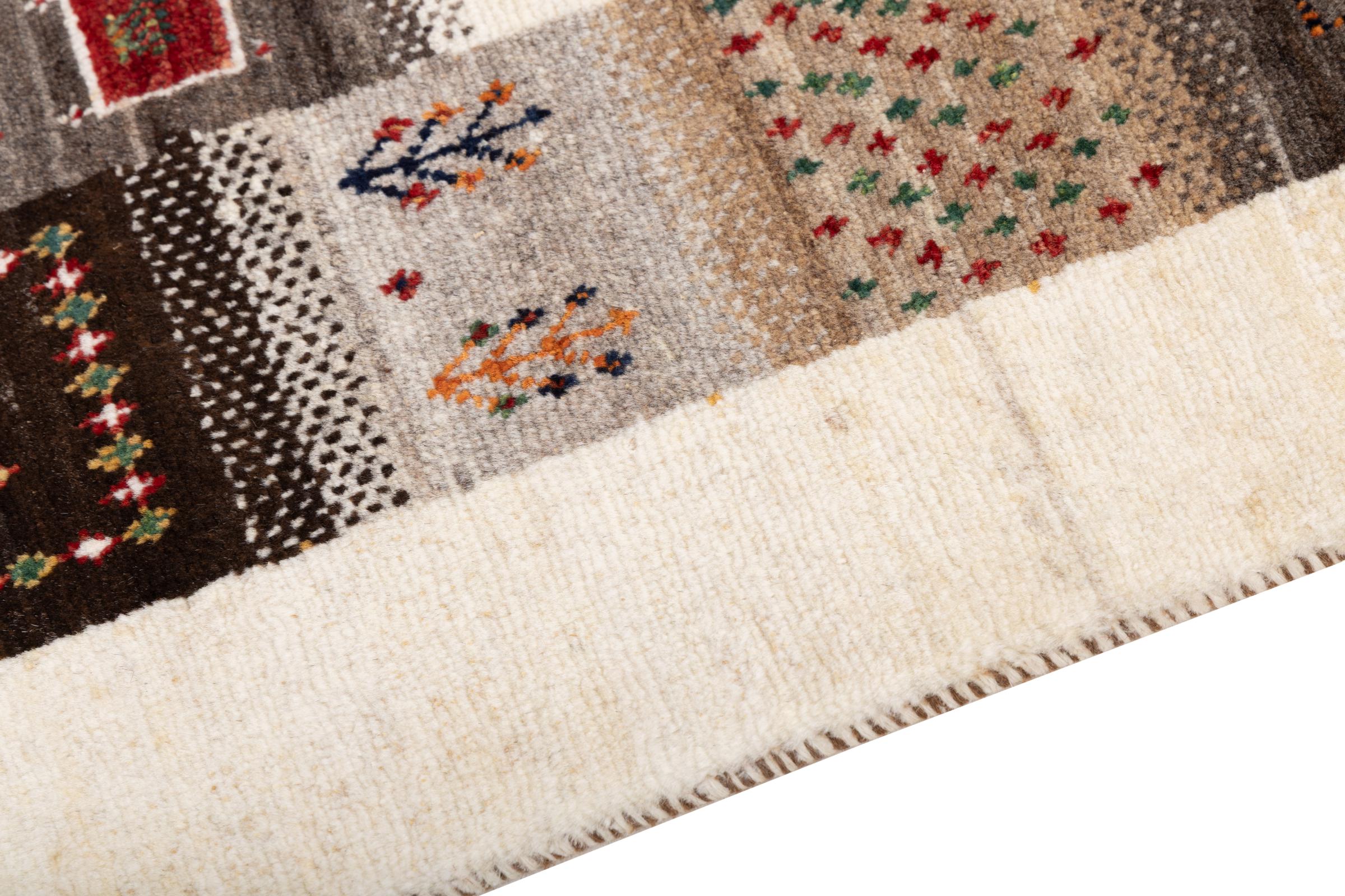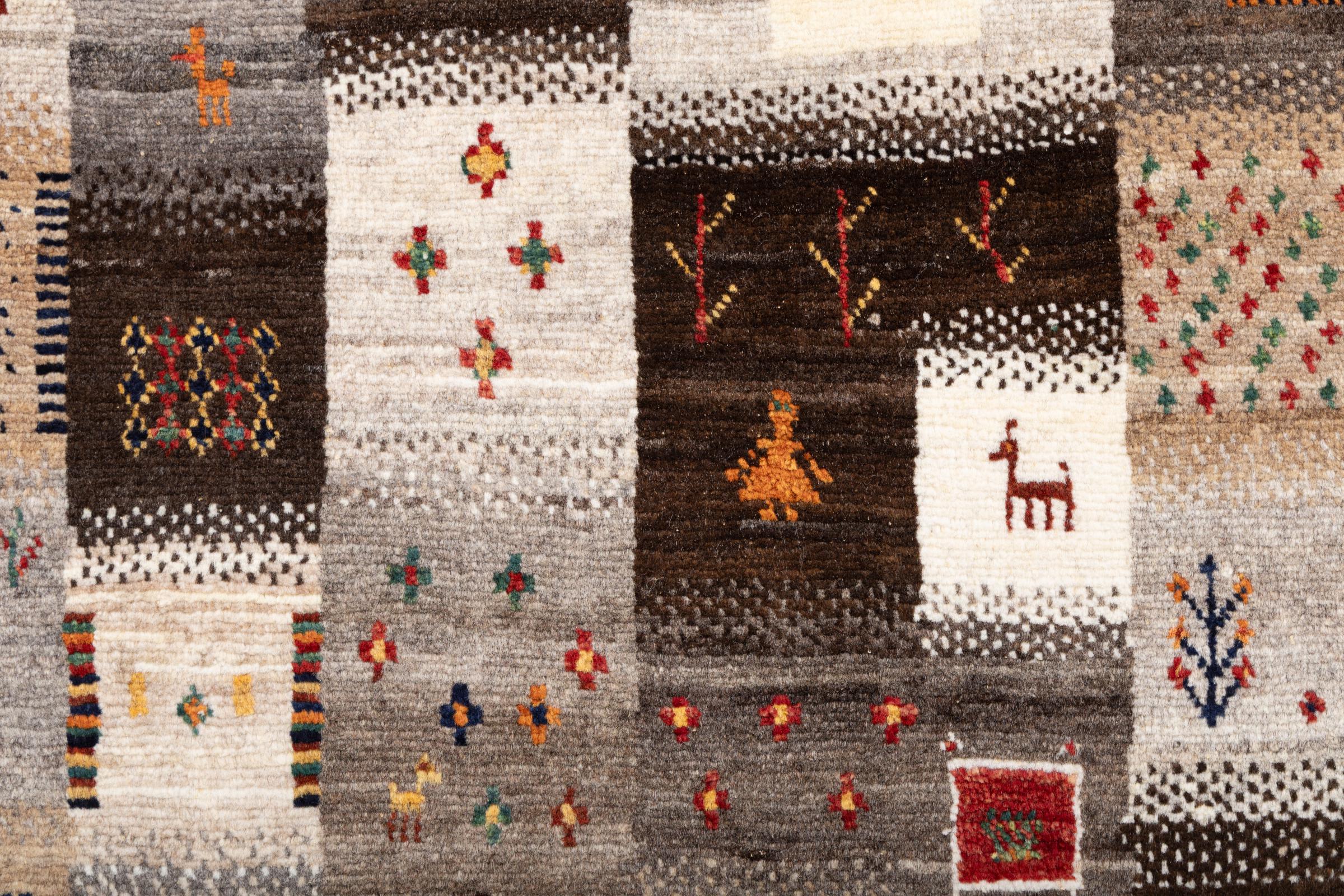 Een verfijning van de al bekende Gabbeh-tapijten: Dit is deze Perzische Gabbeh Loribaft. Het weet indruk te maken met zijn fijnere weefsel en prachtige ontwerp. Het werd door Loren in het zuiden van Perzië met de hand geknoopt van de beste handgesponnen schapenwol. Voor het verven van de wol worden uitsluitend pure plantaardige kleurstoffen gebruikt. Met dit vloerkleed haal je de hoogste standaard van een Gabbeh-tapijt in huis.