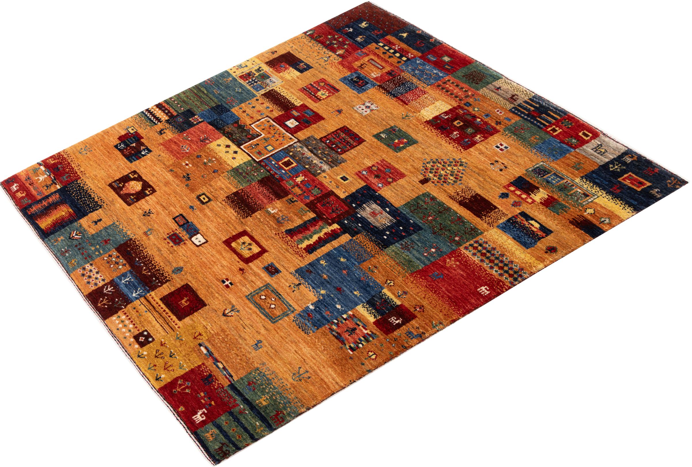 Dit prachtige tapijt is een Perzisch Gabbeh-tapijt en behoort daarom tot de hoogste kwaliteit Gabbeh-tapijten. De tapijten worden geknoopt door nomaden of semi-nomaden in Iran volgens traditioneel vakmanschap. De eenvoudige motieven en patronen zijn vooral geïnspireerd op de directe omgeving van de nomaden. Zo zijn er bijvoorbeeld kamelen, bomen of struiken te vinden op de traditionele tapijten. De Perzische Gabbeh-tapijten zijn gemaakt van wol van lokaal opgefokte kuddes schapen. De wol wordt dus meestal nog met de hand gesponnen. Elk van deze oosterse tapijten belichaamt dus een uniek karakter van de eeuwenoude cultuur.