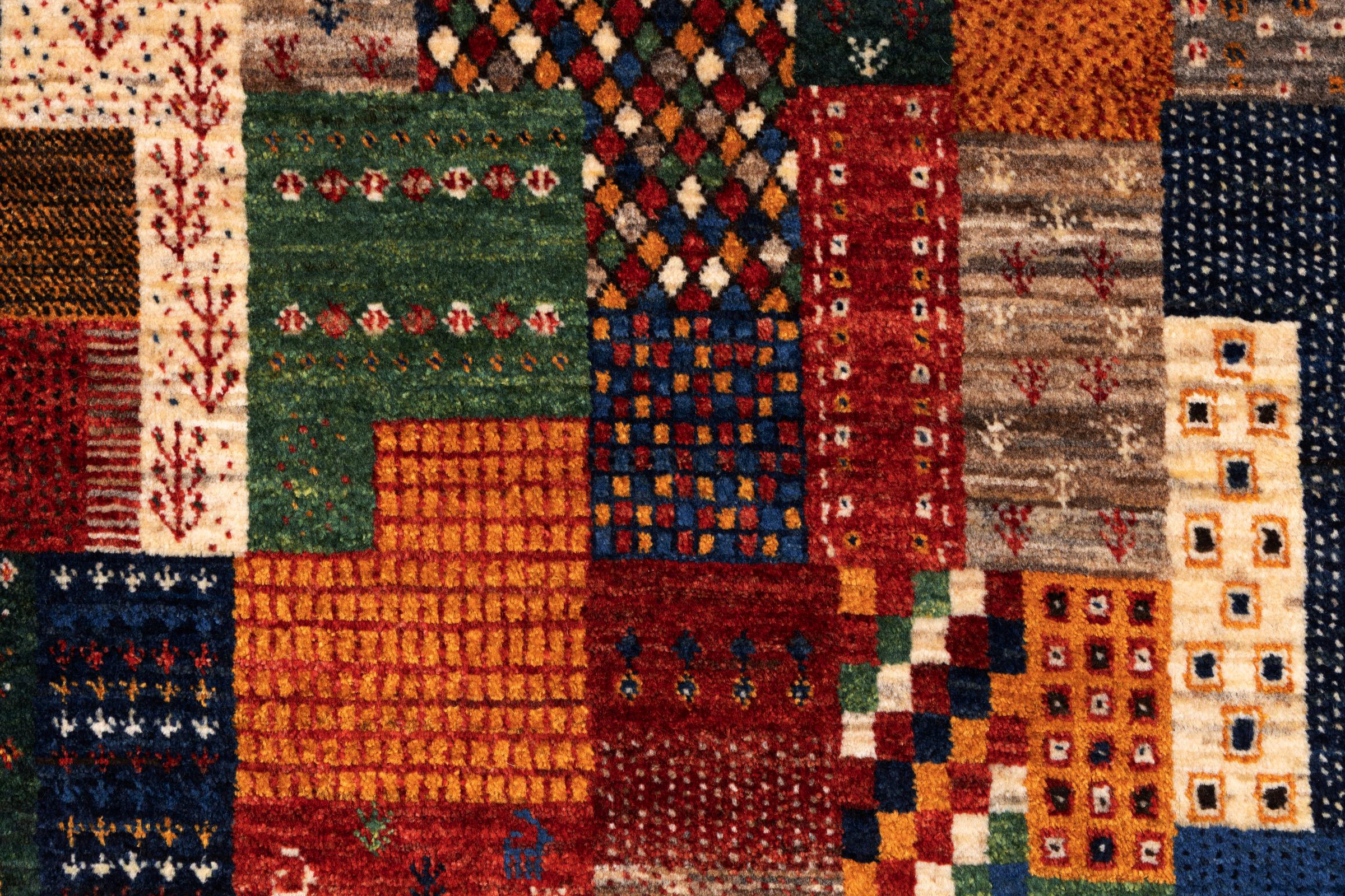 Dit prachtige tapijt is een Perzisch Gabbeh-tapijt en behoort daarom tot de hoogste kwaliteit Gabbeh-tapijten. De tapijten worden geknoopt door nomaden of semi-nomaden in Iran volgens traditioneel vakmanschap. De eenvoudige motieven en patronen zijn vooral geïnspireerd op de directe omgeving van de nomaden. Zo zijn er bijvoorbeeld kamelen, bomen of struiken te vinden op de traditionele tapijten. De Perzische Gabbeh-tapijten zijn gemaakt van wol van lokaal opgefokte kuddes schapen. De wol wordt dus meestal nog met de hand gesponnen. Elk van deze oosterse tapijten belichaamt dus een uniek karakter van de eeuwenoude cultuur.