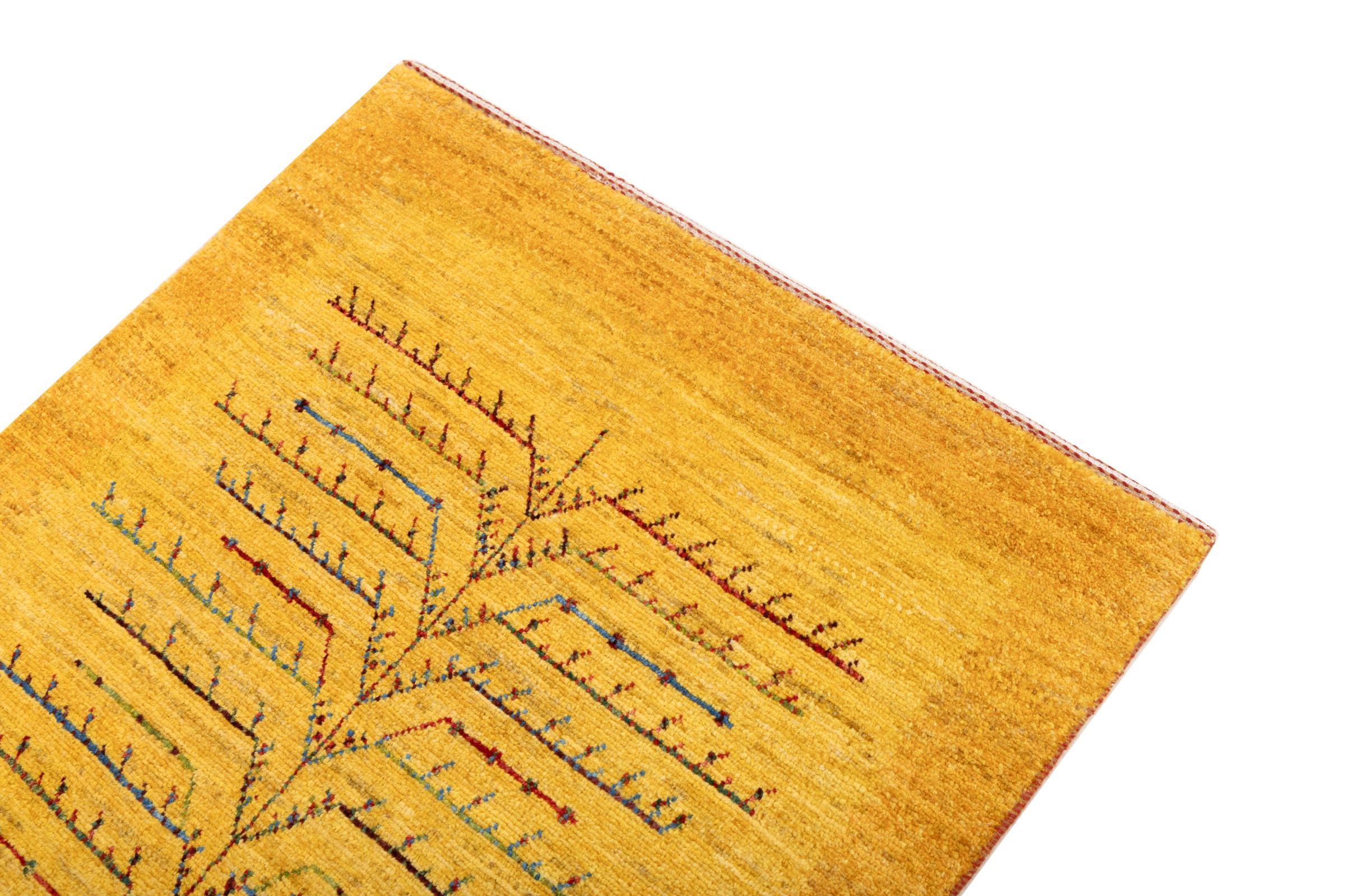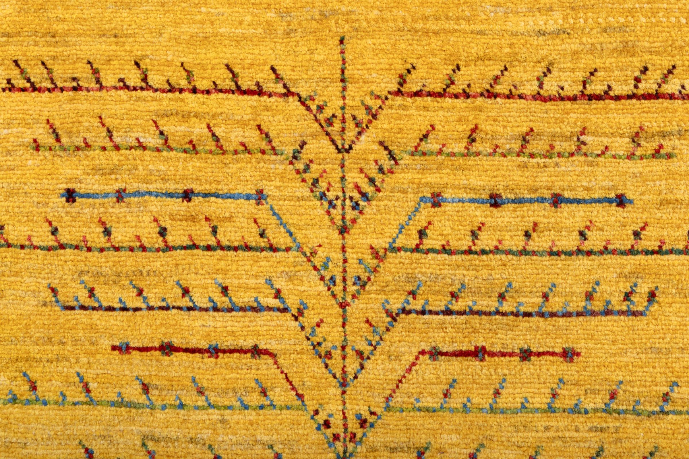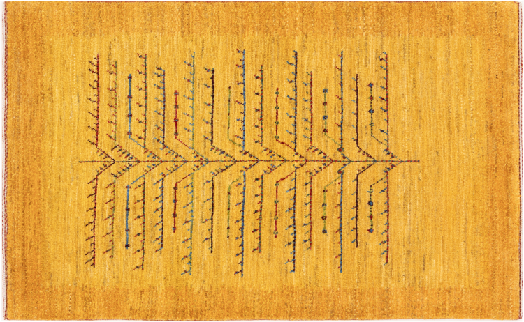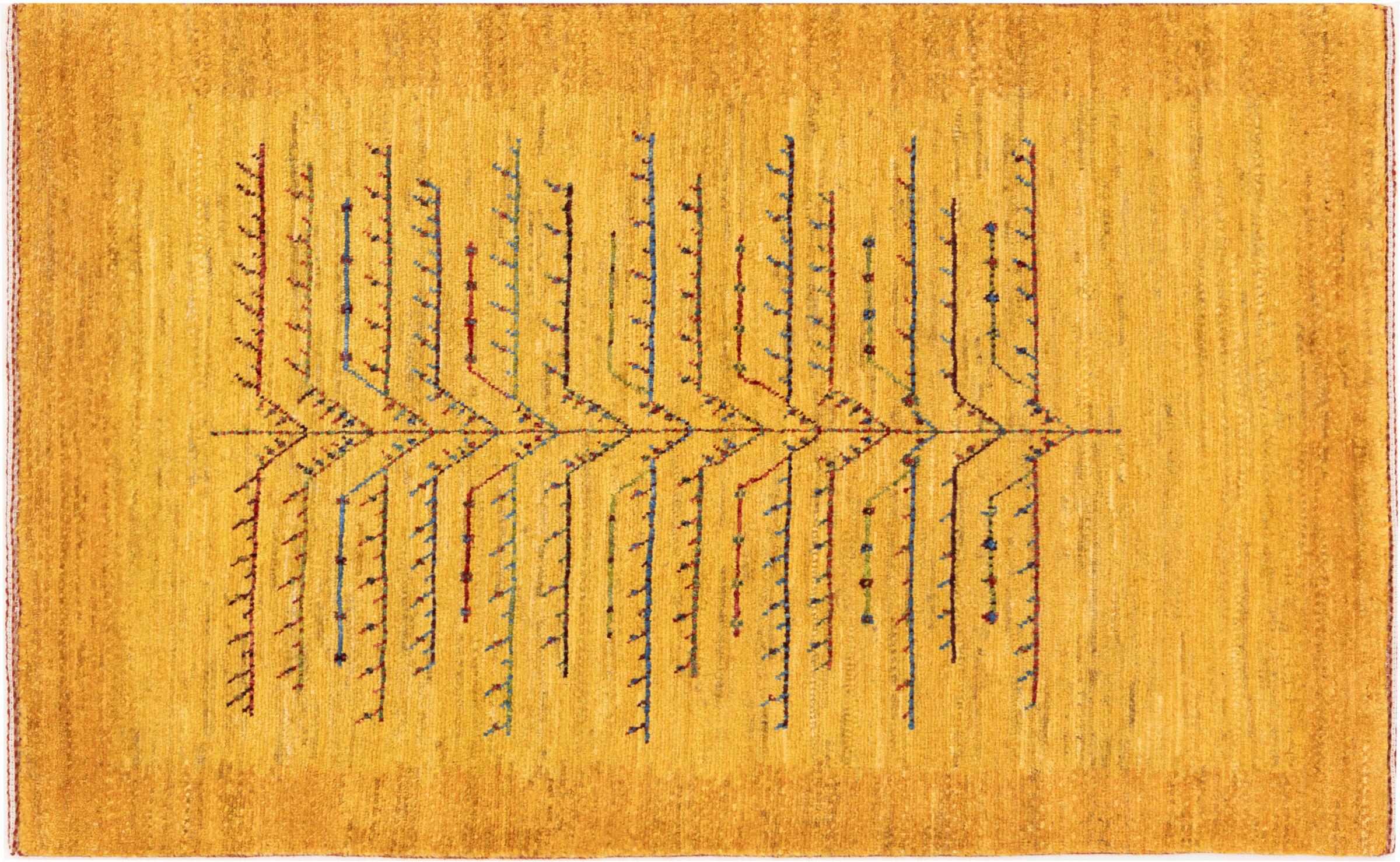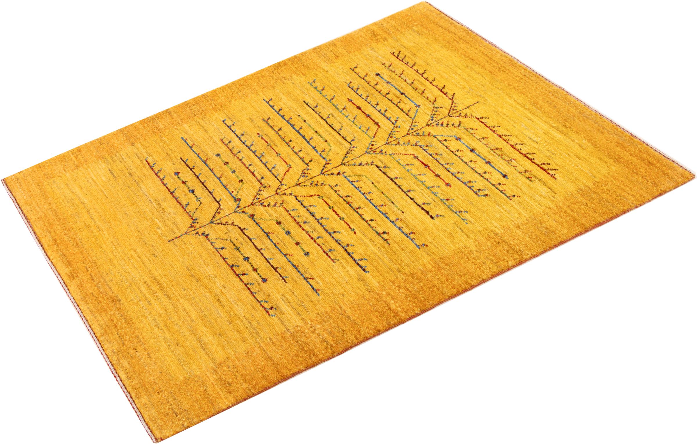 Dit prachtige tapijt is een Perzisch Gabbeh-tapijt en behoort daarom tot de hoogste kwaliteit Gabbeh-tapijten. De tapijten worden geknoopt door nomaden of semi-nomaden in Iran volgens traditioneel vakmanschap. De eenvoudige motieven en patronen zijn vooral geïnspireerd op de directe omgeving van de nomaden. Zo zijn er bijvoorbeeld kamelen, bomen of struiken te vinden op de traditionele tapijten. De Perzische Gabbeh-tapijten zijn gemaakt van wol van lokaal opgefokte kuddes schapen. De wol wordt dus meestal nog met de hand gesponnen. Elk van deze oosterse tapijten belichaamt dus een uniek karakter van de eeuwenoude cultuur.