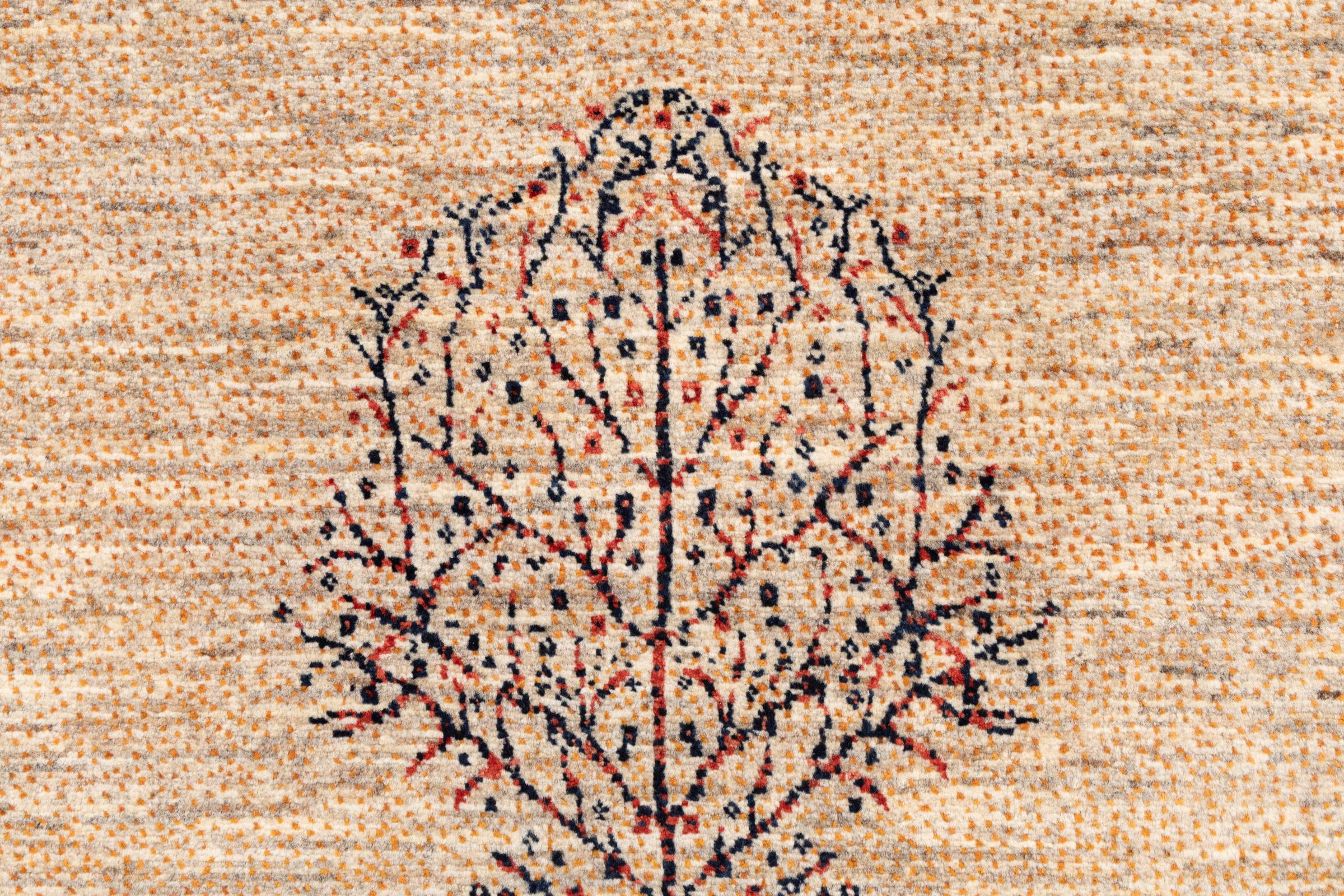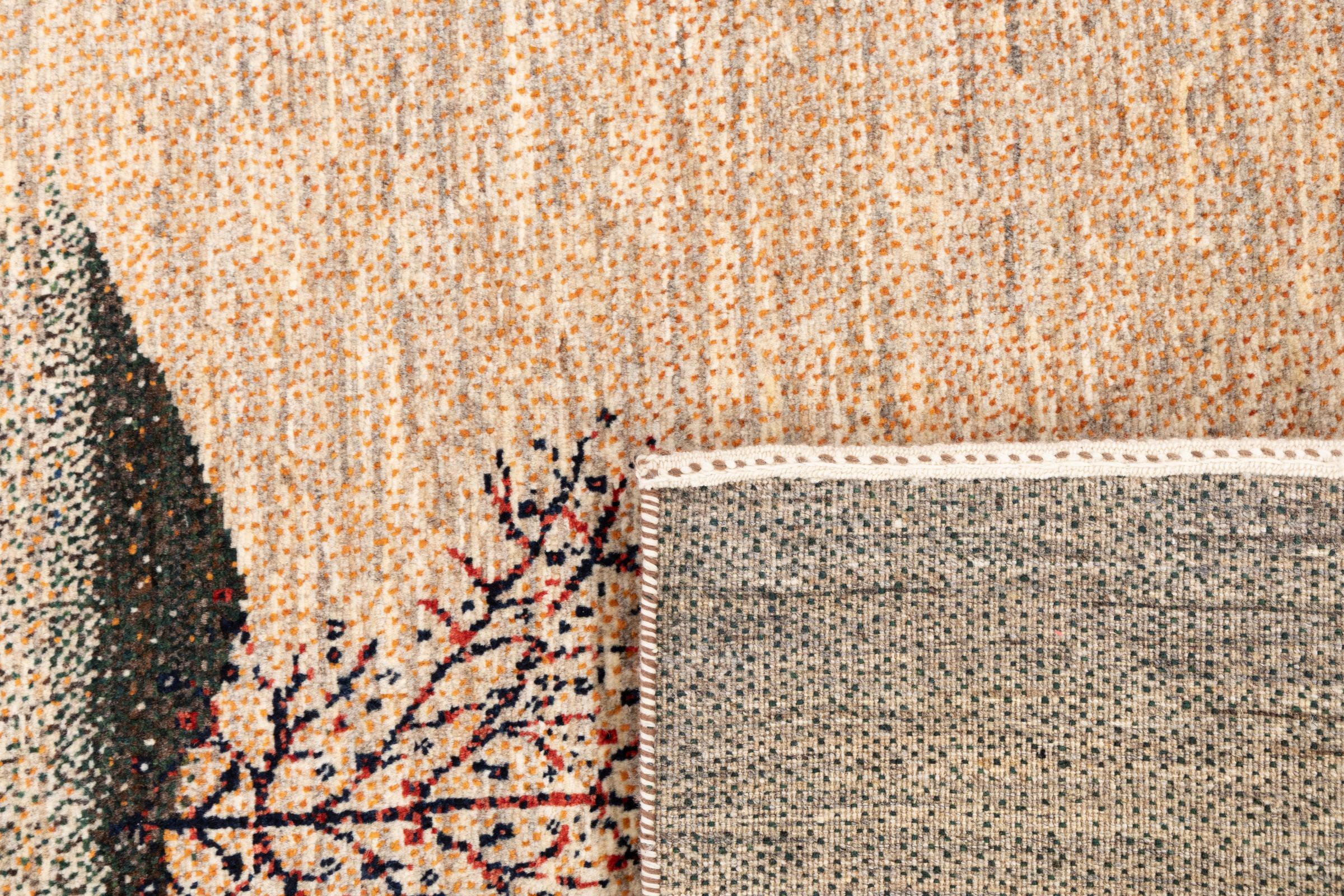 Dit prachtige tapijt is een Perzisch Gabbeh-tapijt en behoort daarom tot de hoogste kwaliteit Gabbeh-tapijten. De tapijten worden geknoopt door nomaden of semi-nomaden in Iran volgens traditioneel vakmanschap. De eenvoudige motieven en patronen zijn vooral geïnspireerd op de directe omgeving van de nomaden. Zo zijn er bijvoorbeeld kamelen, bomen of struiken te vinden op de traditionele tapijten. De Perzische Gabbeh-tapijten zijn gemaakt van wol van lokaal opgefokte kuddes schapen. De wol wordt dus meestal nog met de hand gesponnen. Elk van deze oosterse tapijten belichaamt dus een uniek karakter van de eeuwenoude cultuur.