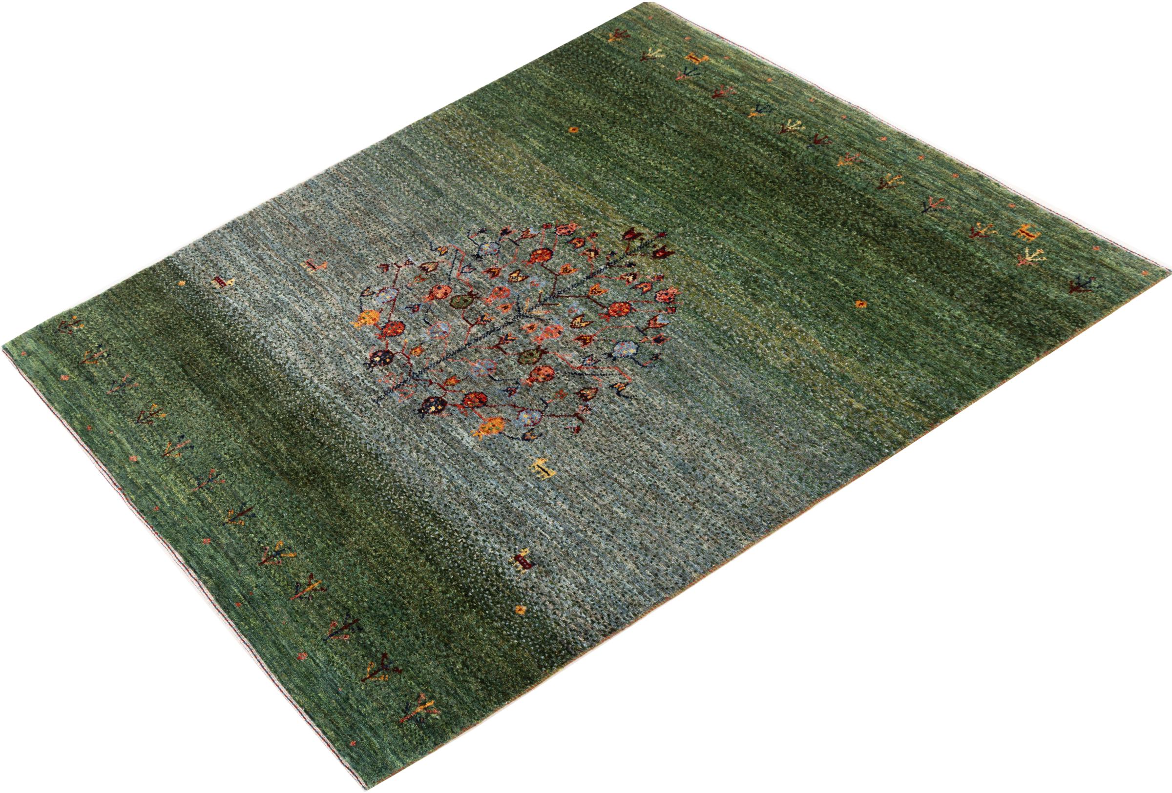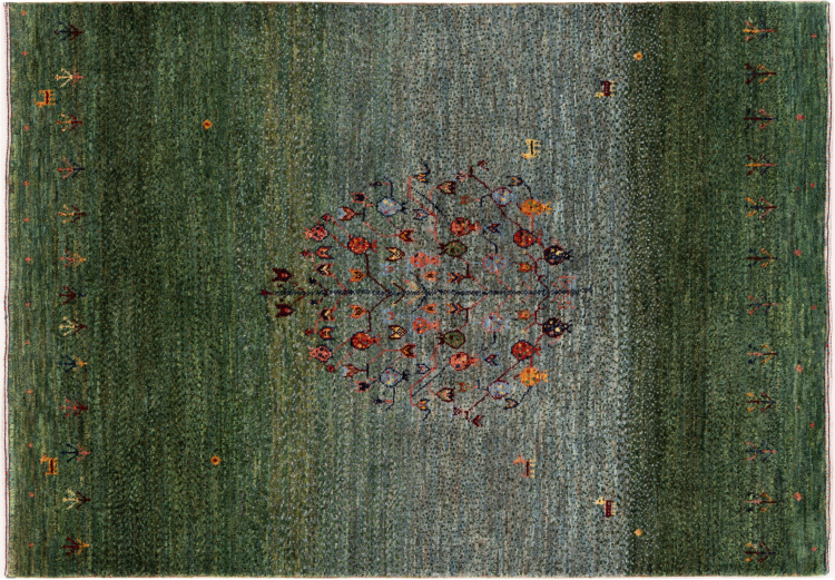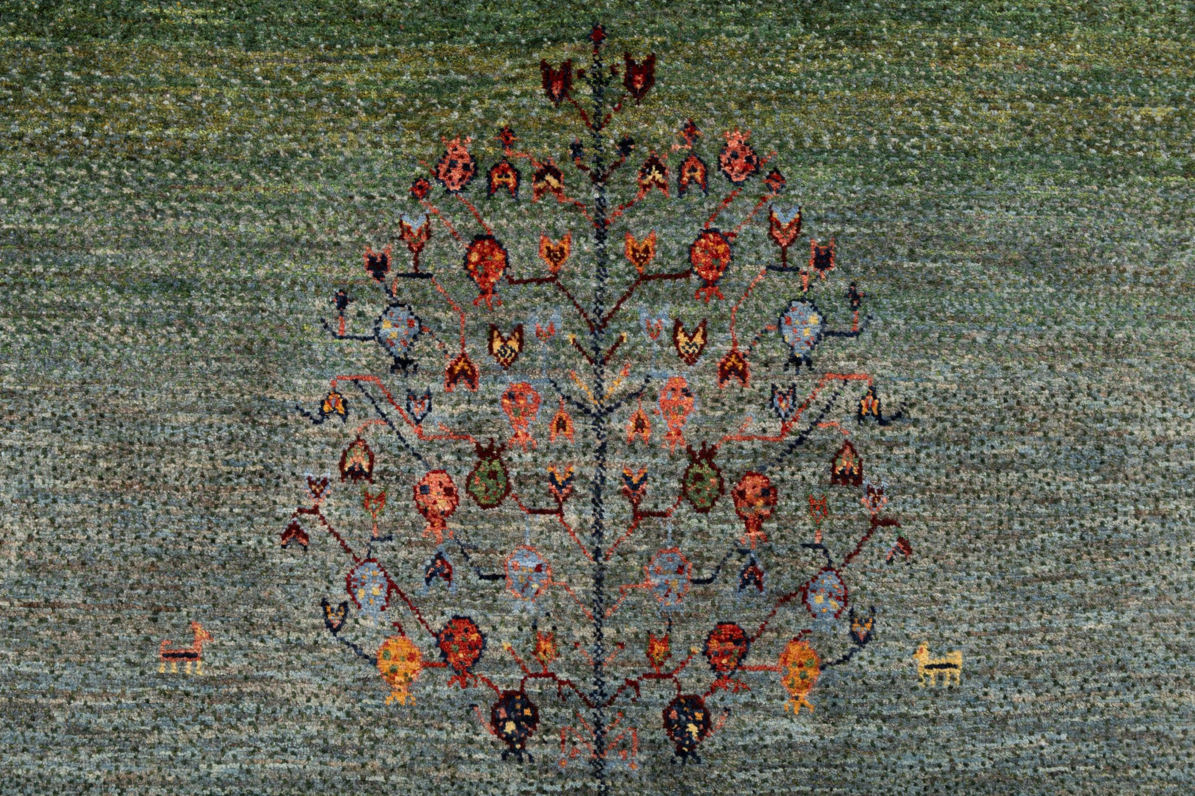 Dit prachtige tapijt is een Perzisch Gabbeh-tapijt en behoort daarom tot de hoogste kwaliteit Gabbeh-tapijten. De tapijten worden geknoopt door nomaden of semi-nomaden in Iran volgens traditioneel vakmanschap. De eenvoudige motieven en patronen zijn vooral geïnspireerd op de directe omgeving van de nomaden. Zo zijn er bijvoorbeeld kamelen, bomen of struiken te vinden op de traditionele tapijten. De Perzische Gabbeh-tapijten zijn gemaakt van wol van lokaal opgefokte kuddes schapen. De wol wordt dus meestal nog met de hand gesponnen. Elk van deze oosterse tapijten belichaamt dus een uniek karakter van de eeuwenoude cultuur.