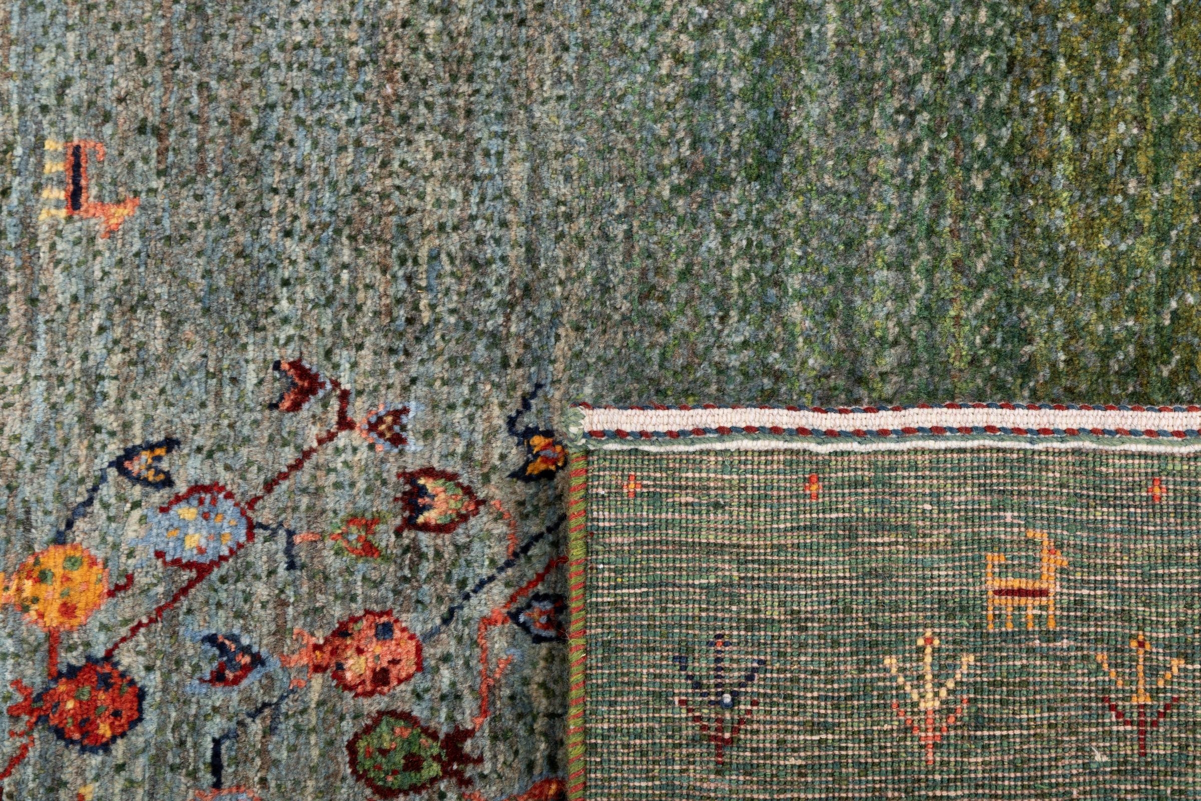 Een verfijning van de al bekende Gabbeh-tapijten: Dit is deze Perzische Gabbeh Loribaft. Het weet indruk te maken met zijn fijnere weefsel en prachtige ontwerp. Het werd door Loren in het zuiden van Perzië met de hand geknoopt van de beste handgesponnen schapenwol. Voor het verven van de wol worden uitsluitend pure plantaardige kleurstoffen gebruikt. Met dit vloerkleed haal je de hoogste standaard van een Gabbeh-tapijt in huis.