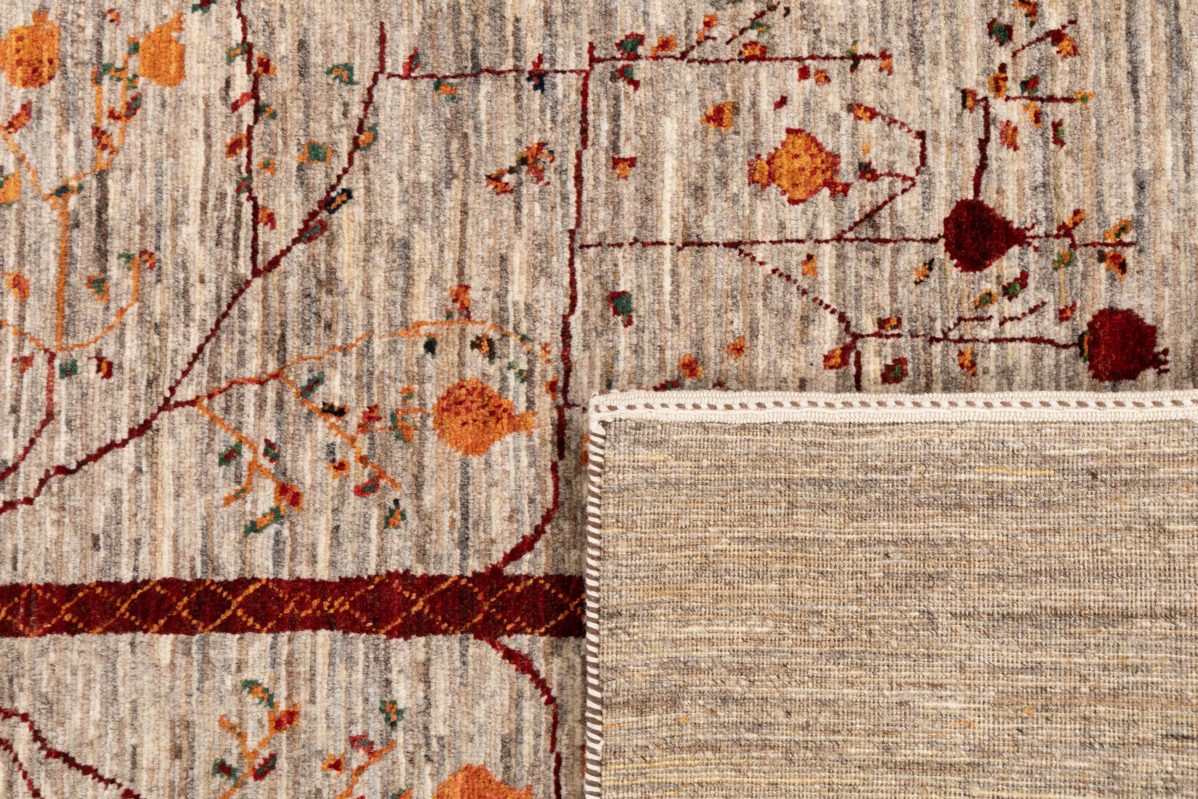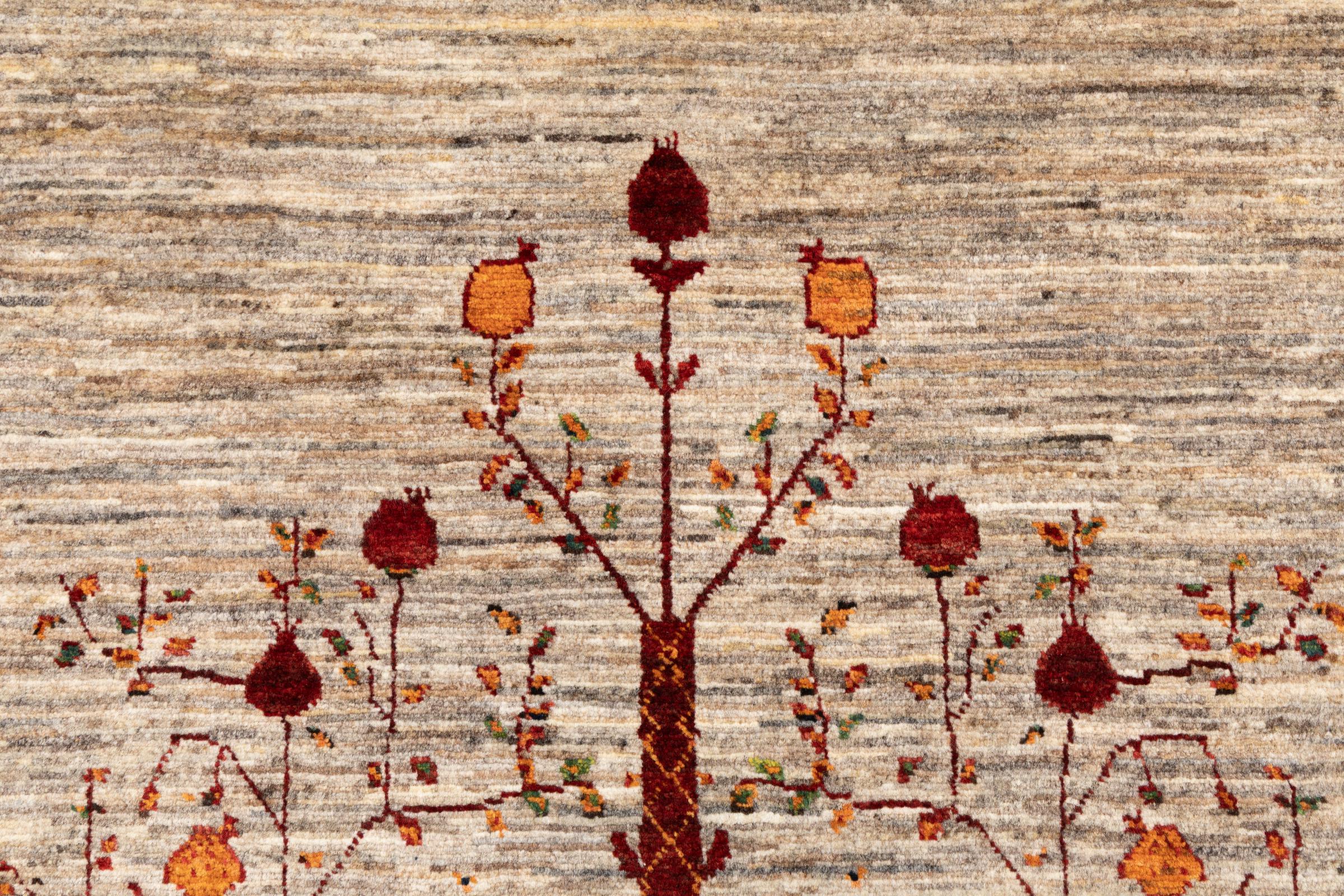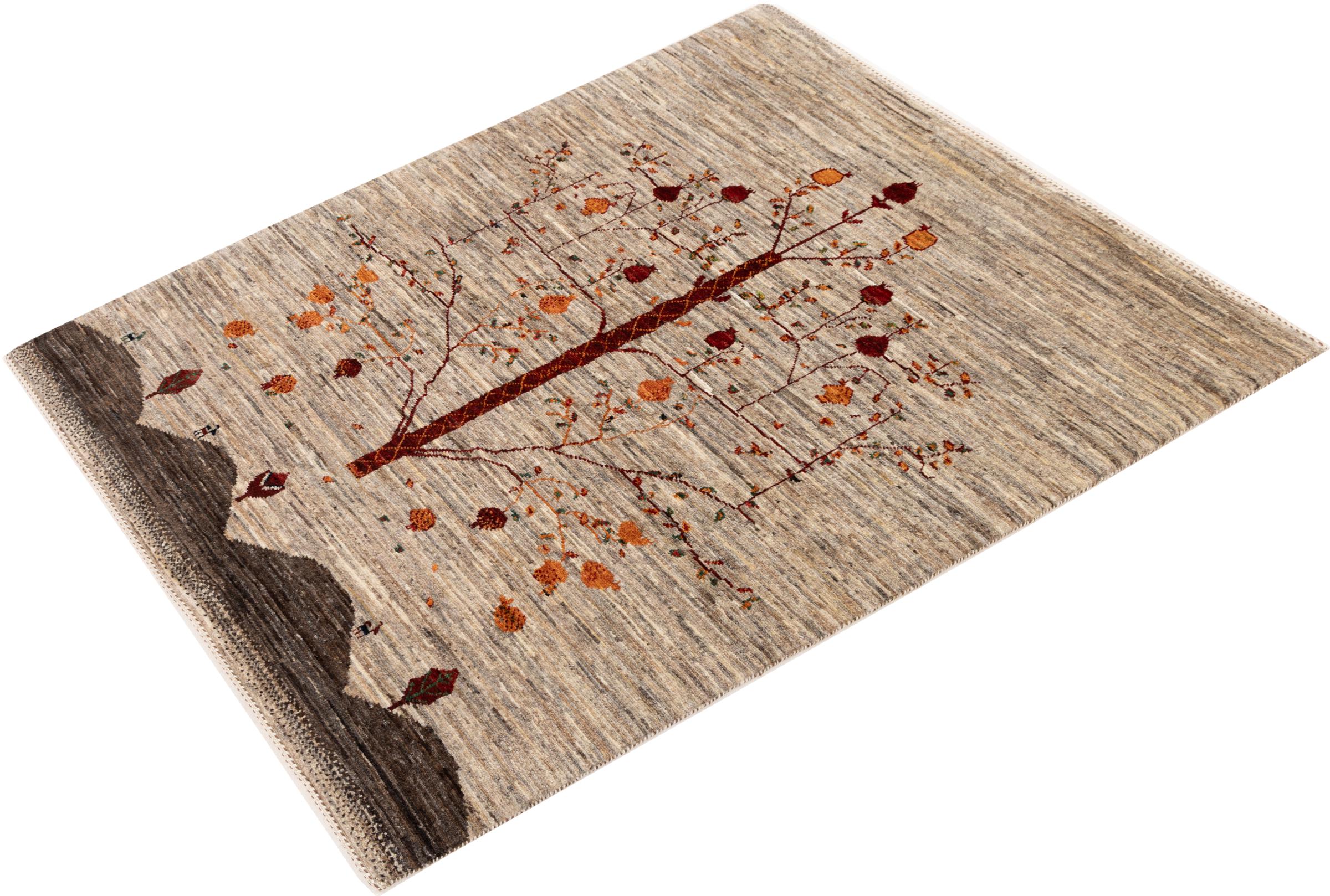 Dit prachtige tapijt is een Perzisch Gabbeh-tapijt en behoort daarom tot de hoogste kwaliteit Gabbeh-tapijten. De tapijten worden geknoopt door nomaden of semi-nomaden in Iran volgens traditioneel vakmanschap. De eenvoudige motieven en patronen zijn vooral geïnspireerd op de directe omgeving van de nomaden. Zo zijn er bijvoorbeeld kamelen, bomen of struiken te vinden op de traditionele tapijten. De Perzische Gabbeh-tapijten zijn gemaakt van wol van lokaal opgefokte kuddes schapen. De wol wordt dus meestal nog met de hand gesponnen. Elk van deze oosterse tapijten belichaamt dus een uniek karakter van de eeuwenoude cultuur.