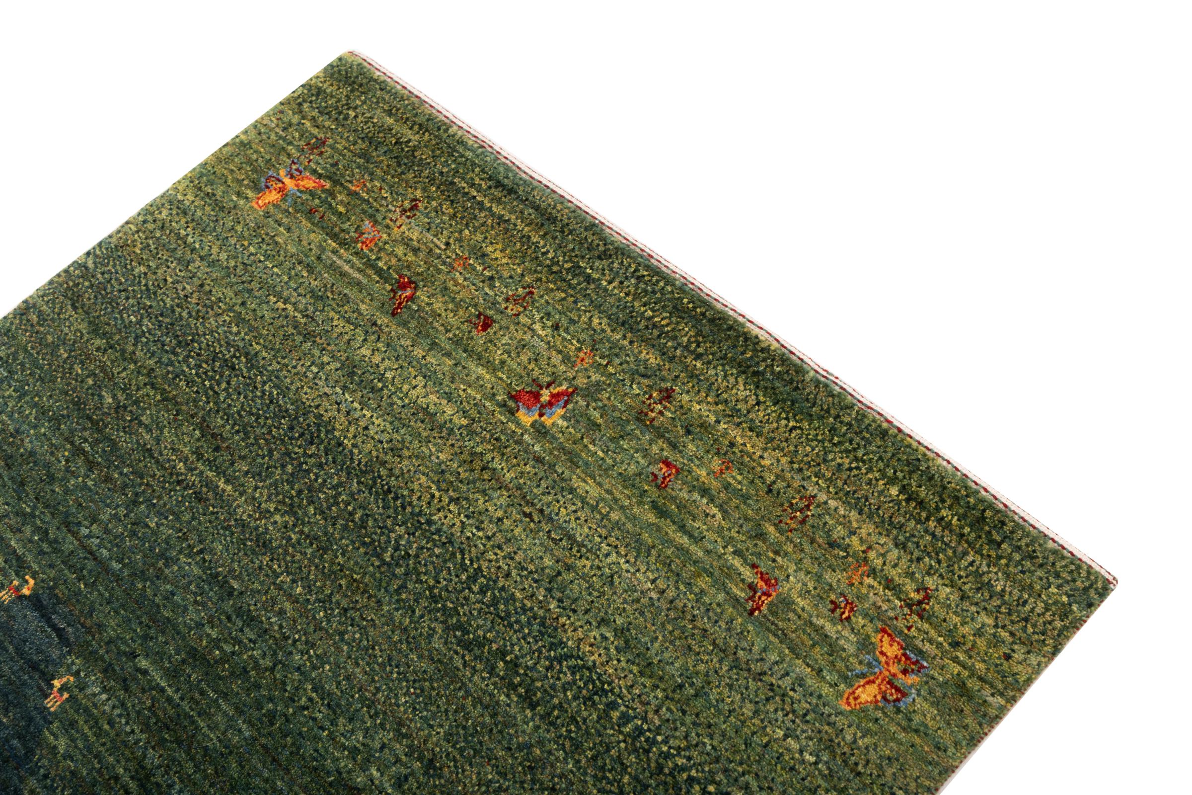 Dit prachtige tapijt is een Perzisch Gabbeh-tapijt en behoort daarom tot de hoogste kwaliteit Gabbeh-tapijten. De tapijten worden geknoopt door nomaden of semi-nomaden in Iran volgens traditioneel vakmanschap. De eenvoudige motieven en patronen zijn vooral geïnspireerd op de directe omgeving van de nomaden. Zo zijn er bijvoorbeeld kamelen, bomen of struiken te vinden op de traditionele tapijten. De Perzische Gabbeh-tapijten zijn gemaakt van wol van lokaal opgefokte kuddes schapen. De wol wordt dus meestal nog met de hand gesponnen. Elk van deze oosterse tapijten belichaamt dus een uniek karakter van de eeuwenoude cultuur.