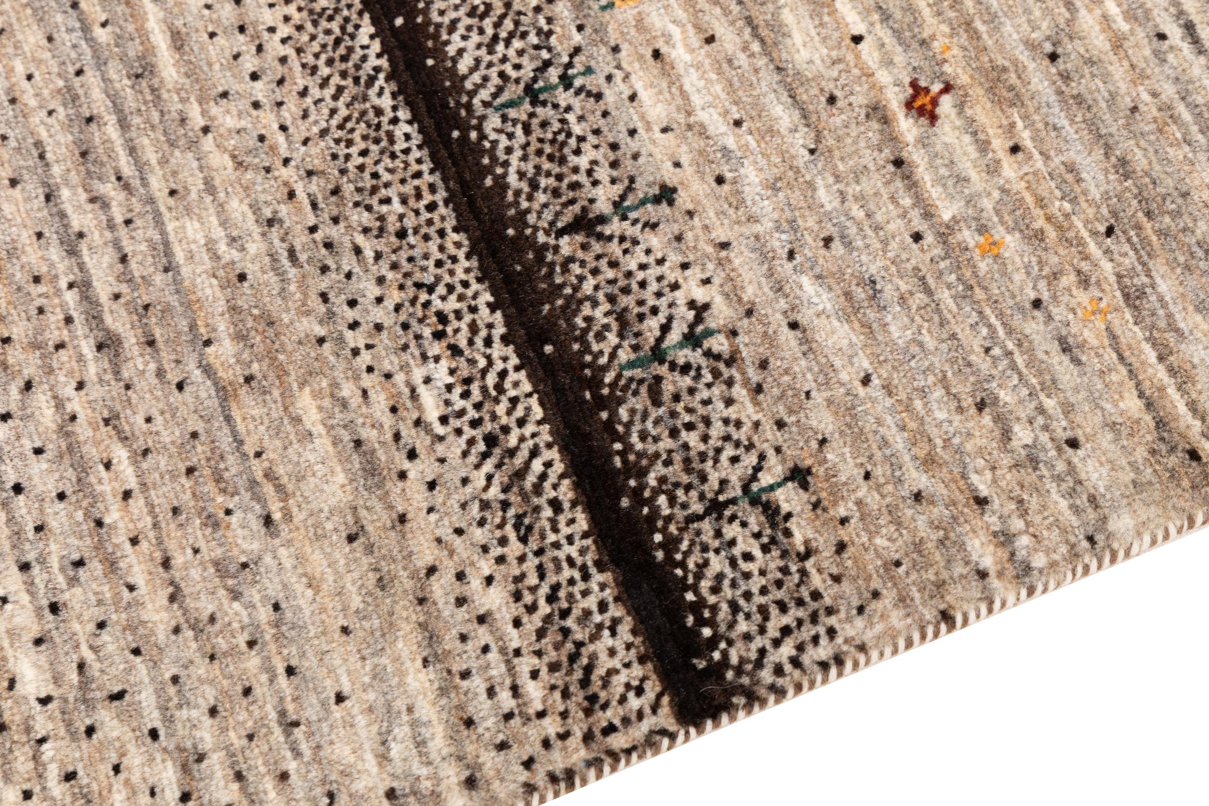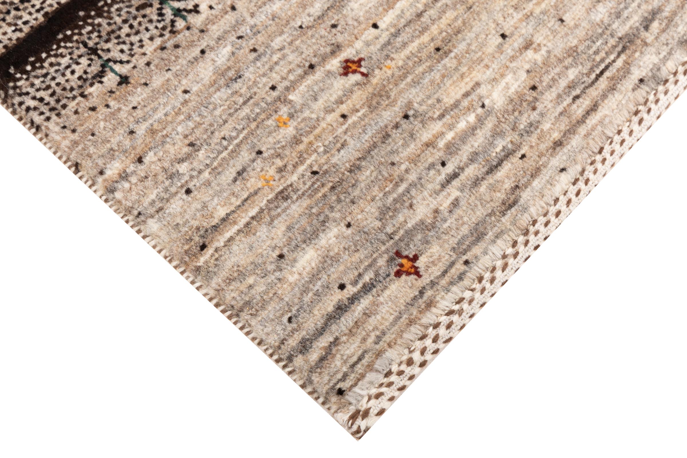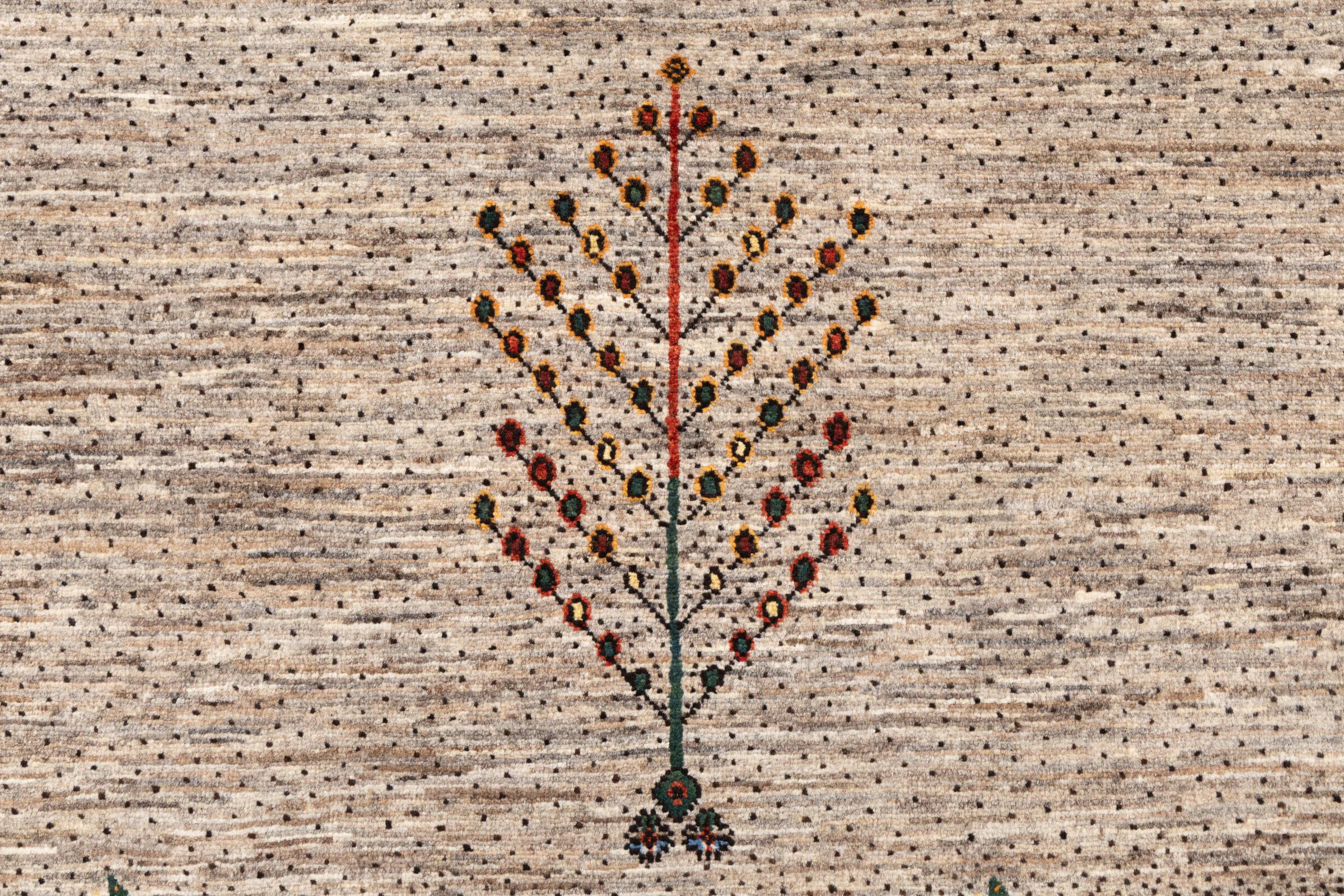 Dit prachtige tapijt is een Perzisch Gabbeh-tapijt en behoort daarom tot de hoogste kwaliteit Gabbeh-tapijten. De tapijten worden geknoopt door nomaden of semi-nomaden in Iran volgens traditioneel vakmanschap. De eenvoudige motieven en patronen zijn vooral geïnspireerd op de directe omgeving van de nomaden. Zo zijn er bijvoorbeeld kamelen, bomen of struiken te vinden op de traditionele tapijten. De Perzische Gabbeh-tapijten zijn gemaakt van wol van lokaal opgefokte kuddes schapen. De wol wordt dus meestal nog met de hand gesponnen. Elk van deze oosterse tapijten belichaamt dus een uniek karakter van de eeuwenoude cultuur.