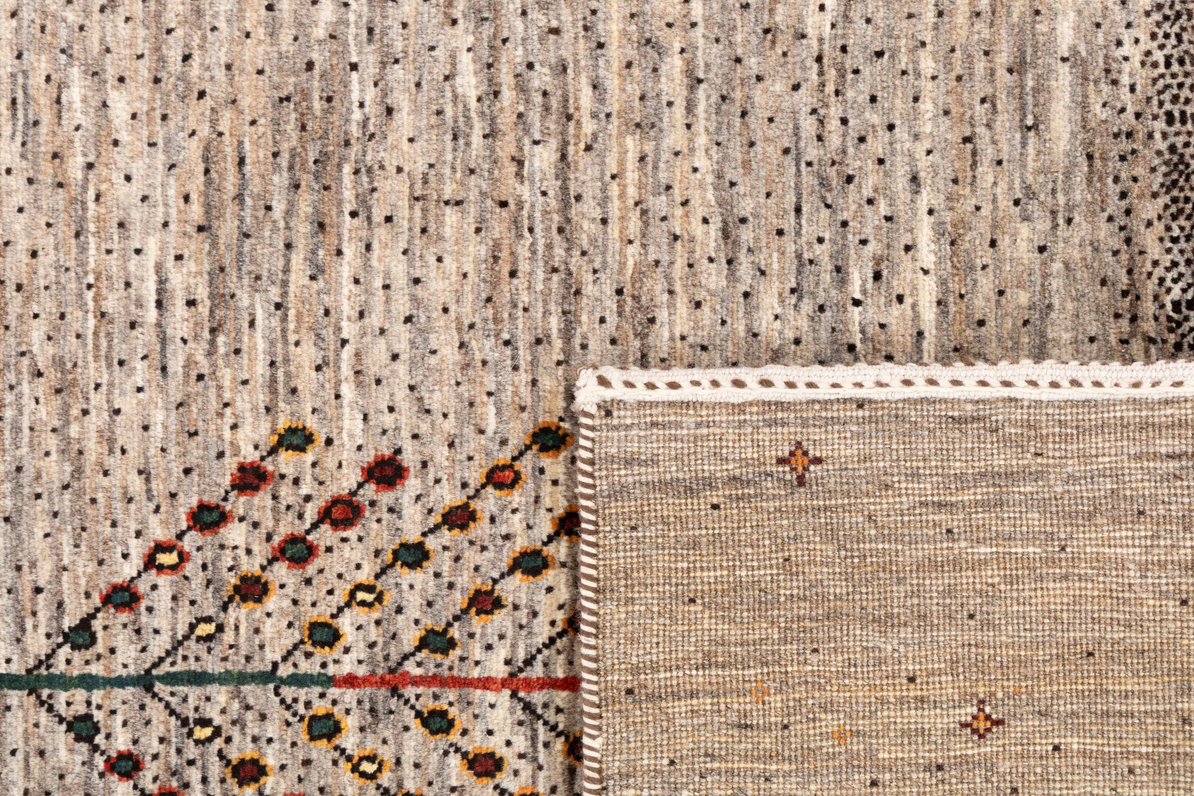 Een verfijning van de al bekende Gabbeh-tapijten: Dit is deze Perzische Gabbeh Loribaft. Het weet indruk te maken met zijn fijnere weefsel en prachtige ontwerp. Het werd door Loren in het zuiden van Perzië met de hand geknoopt van de beste handgesponnen schapenwol. Voor het verven van de wol worden uitsluitend pure plantaardige kleurstoffen gebruikt. Met dit vloerkleed haal je de hoogste standaard van een Gabbeh-tapijt in huis.