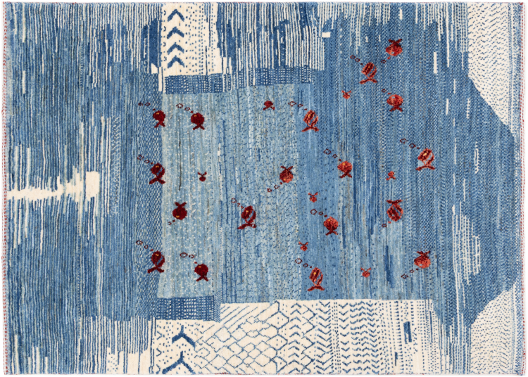 Dit prachtige tapijt is een Perzisch Gabbeh-tapijt en behoort daarom tot de hoogste kwaliteit Gabbeh-tapijten. De tapijten worden geknoopt door nomaden of semi-nomaden in Iran volgens traditioneel vakmanschap. De eenvoudige motieven en patronen zijn vooral geïnspireerd op de directe omgeving van de nomaden. Zo zijn er bijvoorbeeld kamelen, bomen of struiken te vinden op de traditionele tapijten. De Perzische Gabbeh-tapijten zijn gemaakt van wol van lokaal opgefokte kuddes schapen. De wol wordt dus meestal nog met de hand gesponnen. Elk van deze oosterse tapijten belichaamt dus een uniek karakter van de eeuwenoude cultuur.