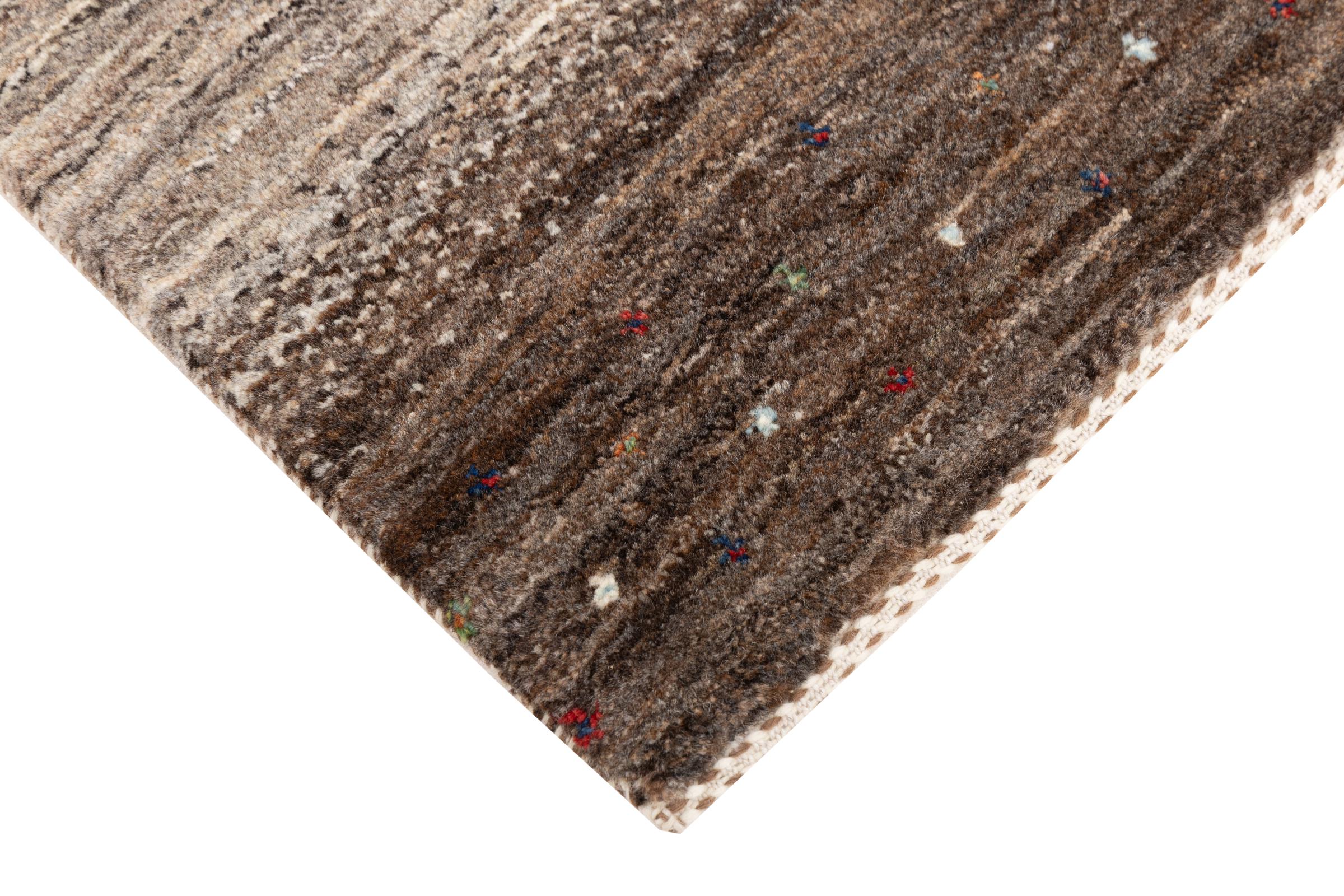 Dit prachtige tapijt is een Perzisch Gabbeh-tapijt en behoort daarom tot de hoogste kwaliteit Gabbeh-tapijten. De tapijten worden geknoopt door nomaden of semi-nomaden in Iran volgens traditioneel vakmanschap. De eenvoudige motieven en patronen zijn vooral geïnspireerd op de directe omgeving van de nomaden. Zo zijn er bijvoorbeeld kamelen, bomen of struiken te vinden op de traditionele tapijten. De Perzische Gabbeh-tapijten zijn gemaakt van wol van lokaal opgefokte kuddes schapen. De wol wordt dus meestal nog met de hand gesponnen. Elk van deze oosterse tapijten belichaamt dus een uniek karakter van de eeuwenoude cultuur.