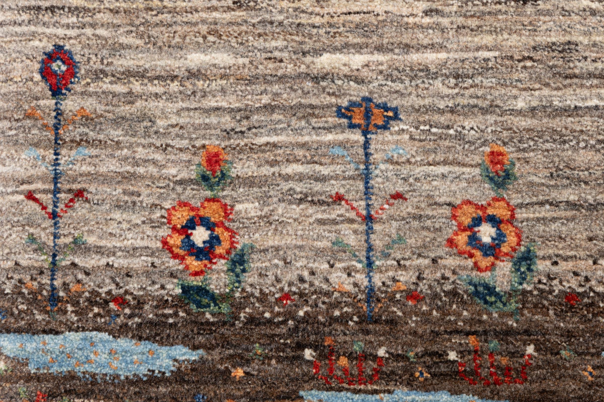 Een verfijning van de al bekende Gabbeh-tapijten: Dit is deze Perzische Gabbeh Loribaft. Het weet indruk te maken met zijn fijnere weefsel en prachtige ontwerp. Het werd door Loren in het zuiden van Perzië met de hand geknoopt van de beste handgesponnen schapenwol. Voor het verven van de wol worden uitsluitend pure plantaardige kleurstoffen gebruikt. Met dit vloerkleed haal je de hoogste standaard van een Gabbeh-tapijt in huis.
