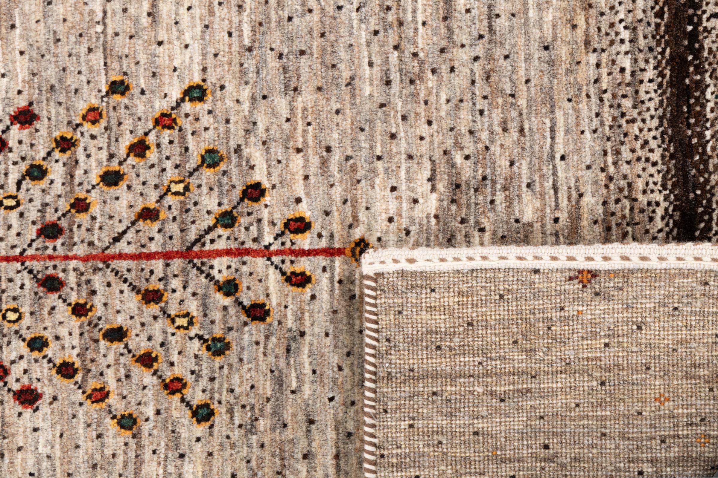 Een verfijning van de al bekende Gabbeh-tapijten: Dit is deze Perzische Gabbeh Loribaft. Het weet indruk te maken met zijn fijnere weefsel en prachtige ontwerp. Het werd door Loren in het zuiden van Perzië met de hand geknoopt van de beste handgesponnen schapenwol. Voor het verven van de wol worden uitsluitend pure plantaardige kleurstoffen gebruikt. Met dit vloerkleed haal je de hoogste standaard van een Gabbeh-tapijt in huis.