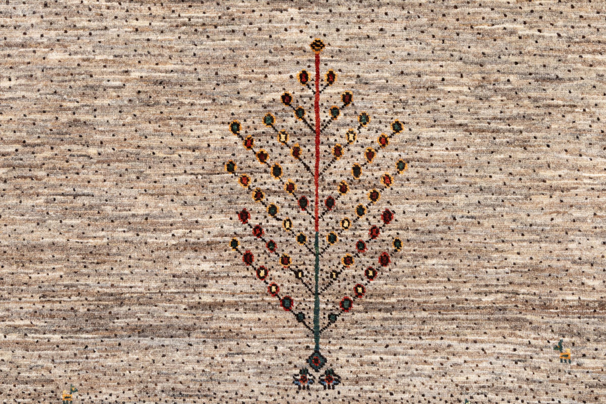 Dit prachtige tapijt is een Perzisch Gabbeh-tapijt en behoort daarom tot de hoogste kwaliteit Gabbeh-tapijten. De tapijten worden geknoopt door nomaden of semi-nomaden in Iran volgens traditioneel vakmanschap. De eenvoudige motieven en patronen zijn vooral geïnspireerd op de directe omgeving van de nomaden. Zo zijn er bijvoorbeeld kamelen, bomen of struiken te vinden op de traditionele tapijten. De Perzische Gabbeh-tapijten zijn gemaakt van wol van lokaal opgefokte kuddes schapen. De wol wordt dus meestal nog met de hand gesponnen. Elk van deze oosterse tapijten belichaamt dus een uniek karakter van de eeuwenoude cultuur.